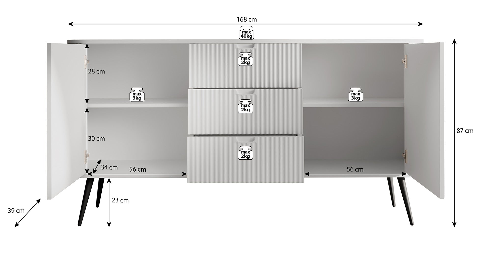 | Maat | H 87 x B 168 x D 39 cm |