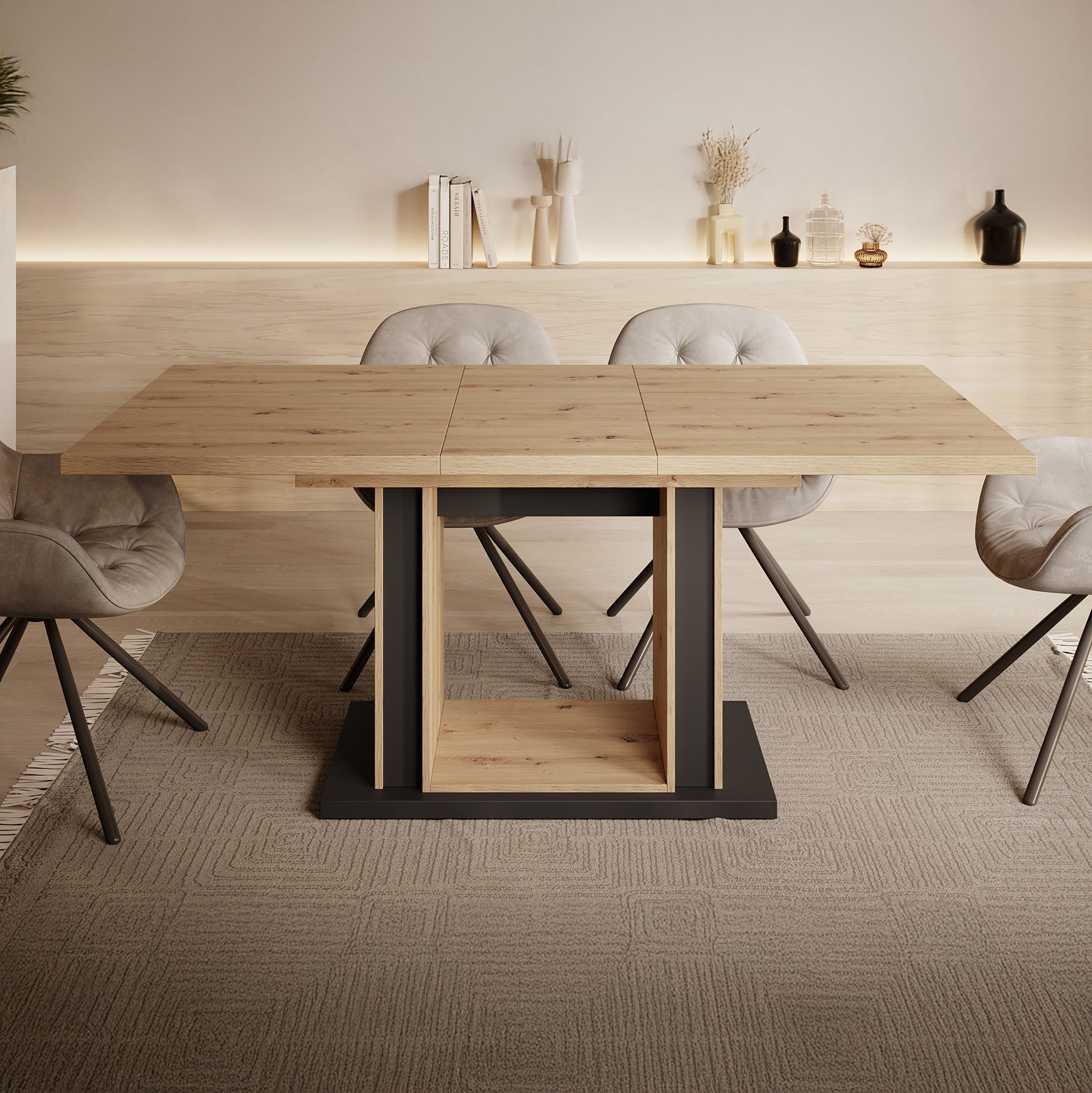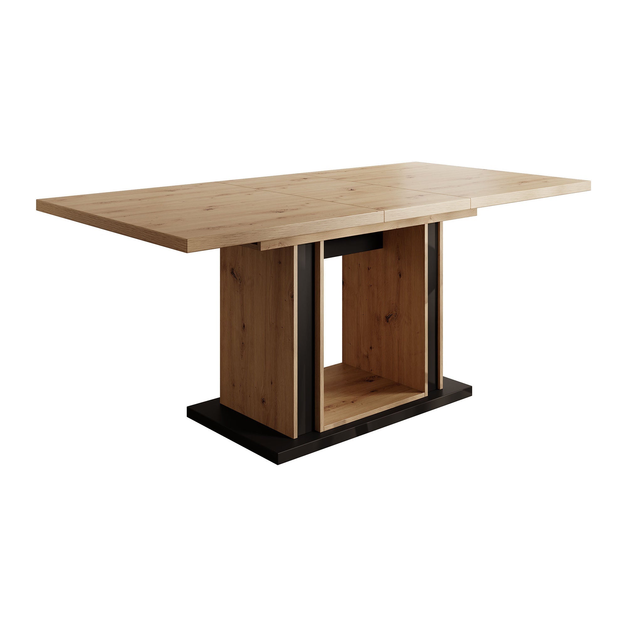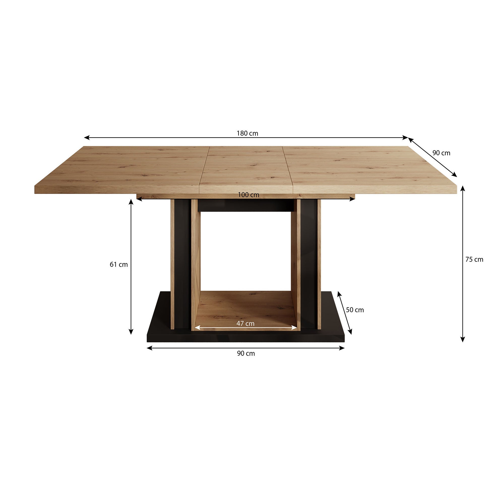 Meubella - Eetkamertafel Finch - Eiken - Zwart - 180 cm - Uitschuifbaar