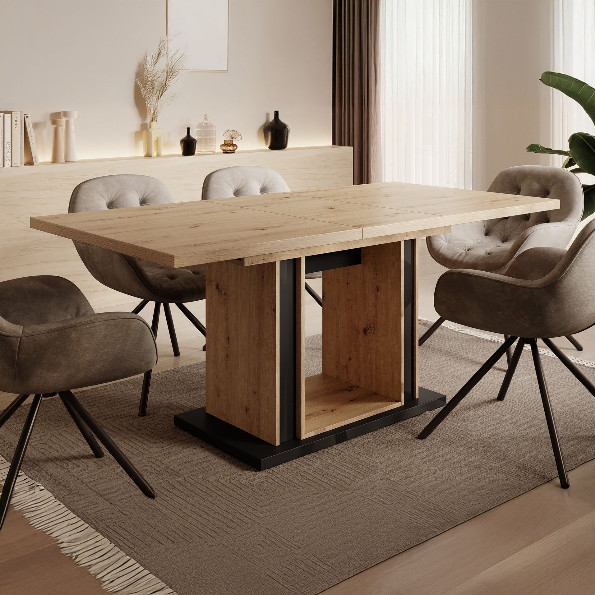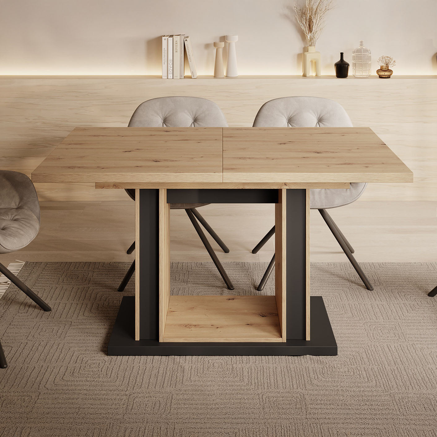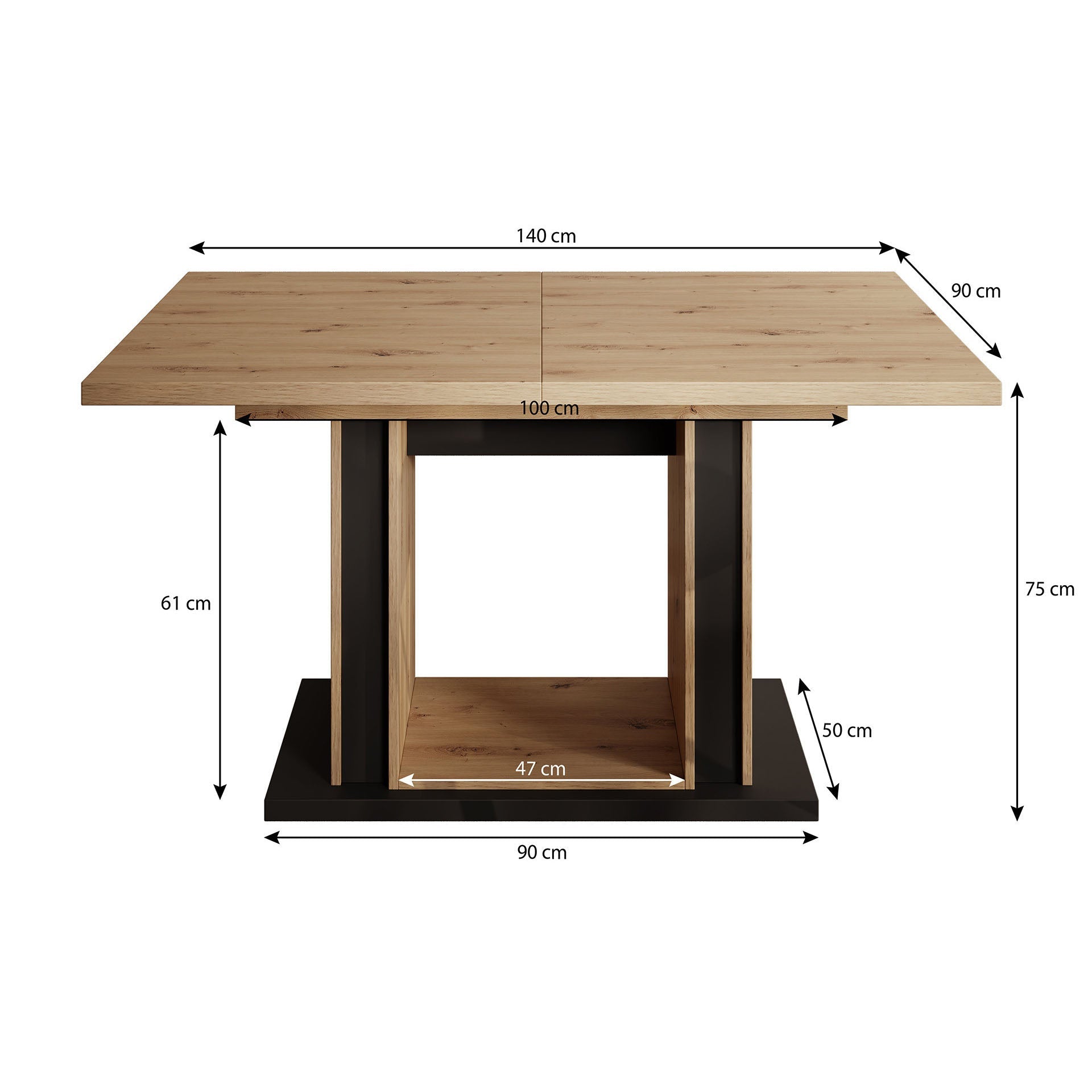 Meubella - Eetkamertafel Finch - Eiken - Zwart - 180 cm - Uitschuifbaar