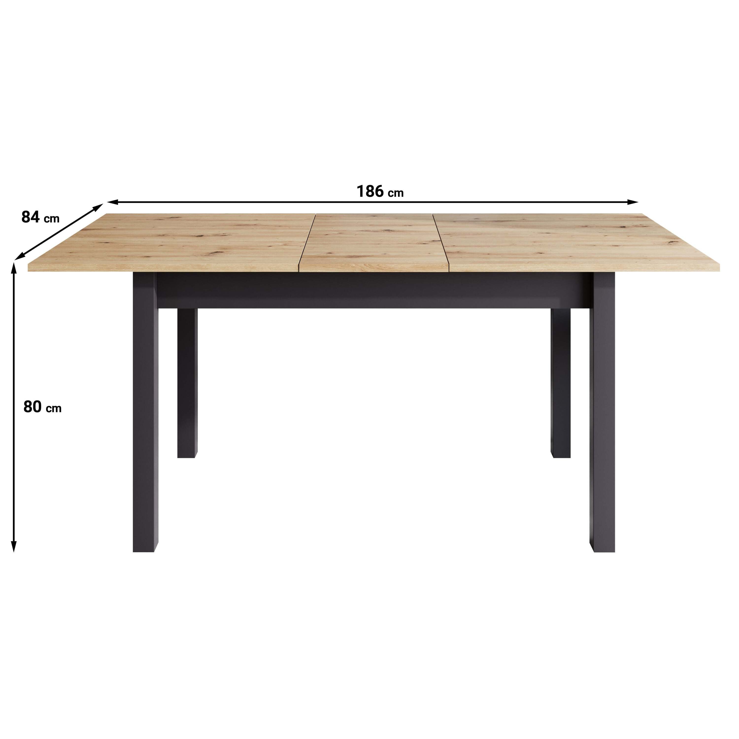 Meubella - Eetkamertafel Quincy - Eiken - 186 cm - Uitschuifbaar