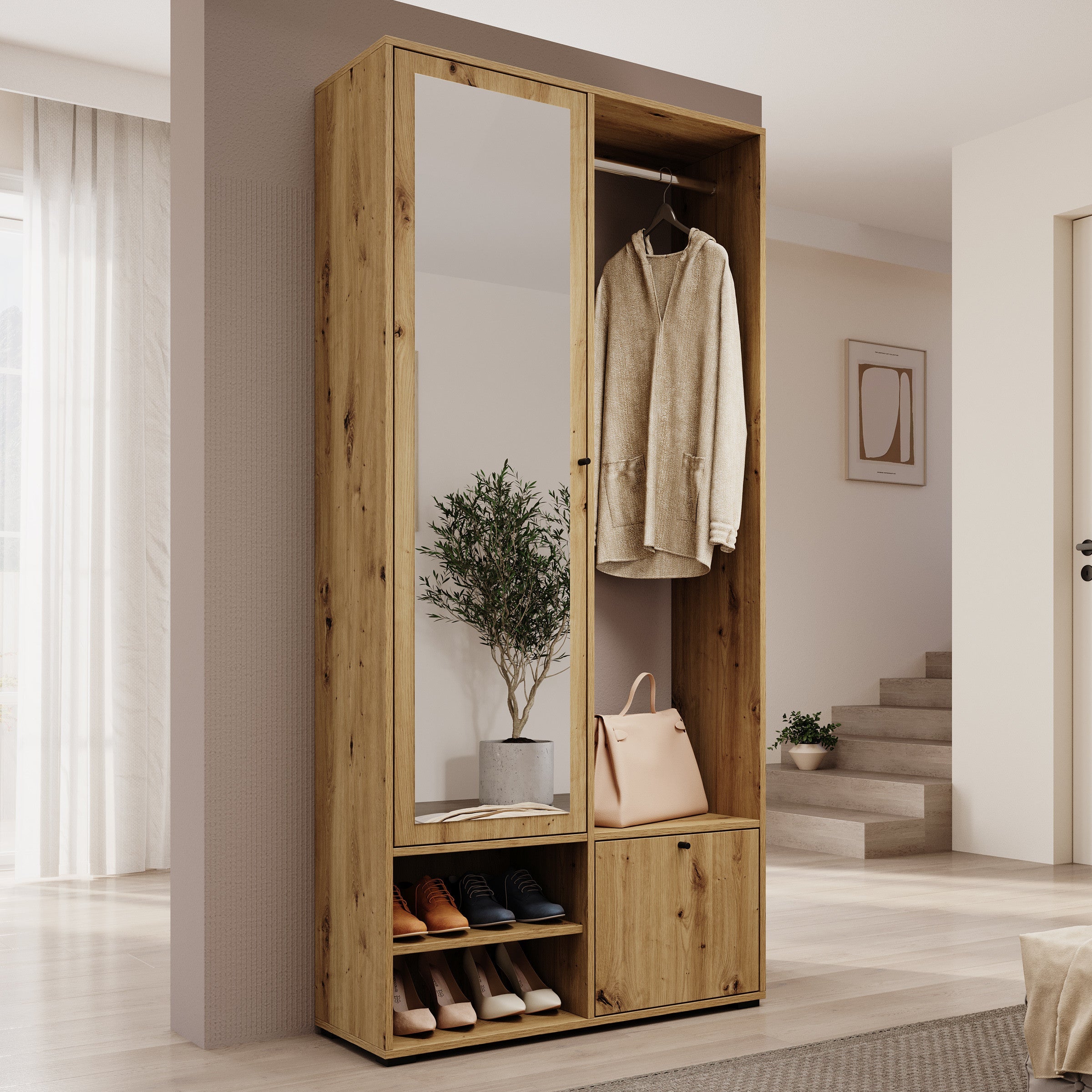 Meubella - Halkast Deacon - Eiken - 90 cm - Met spiegel