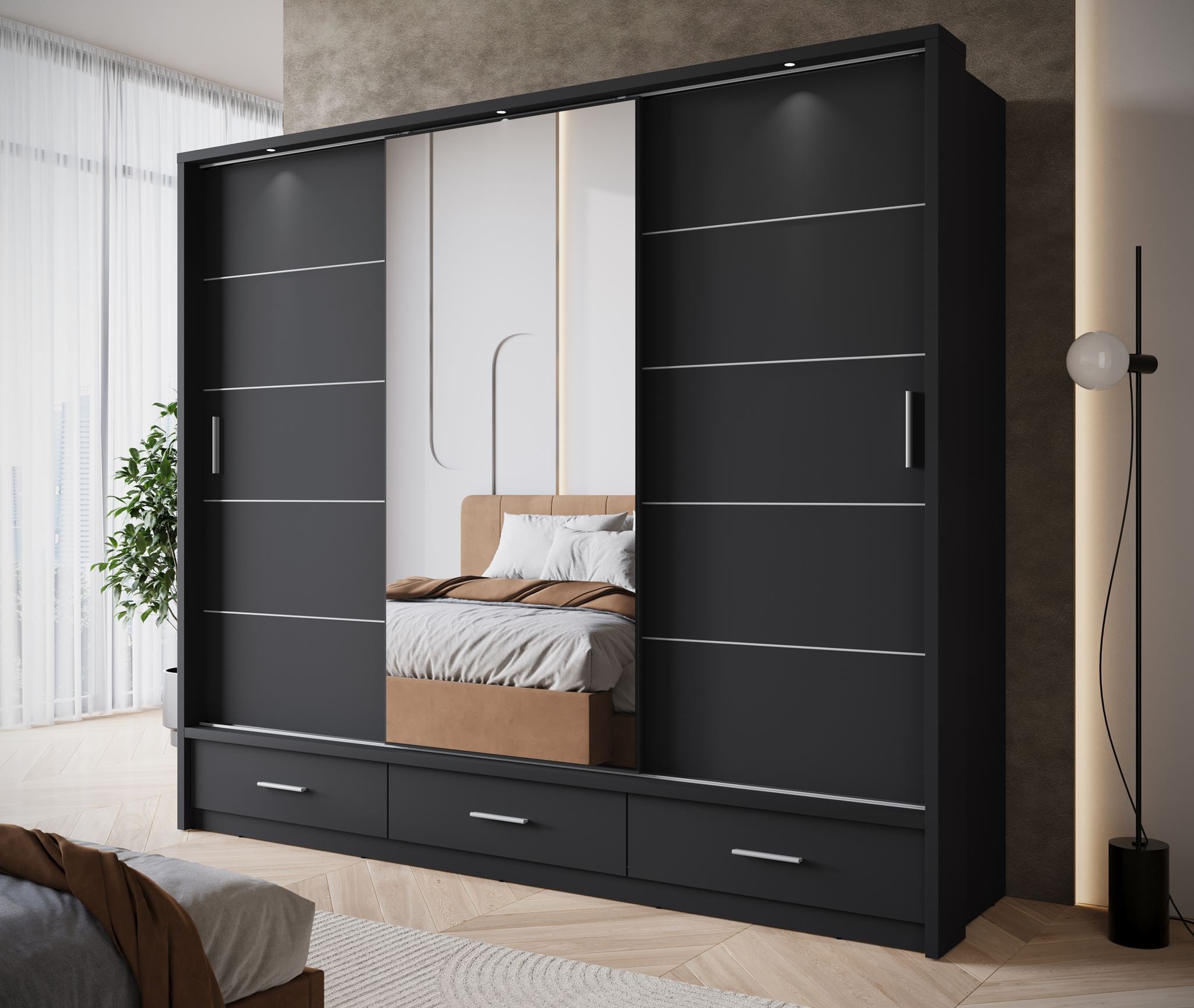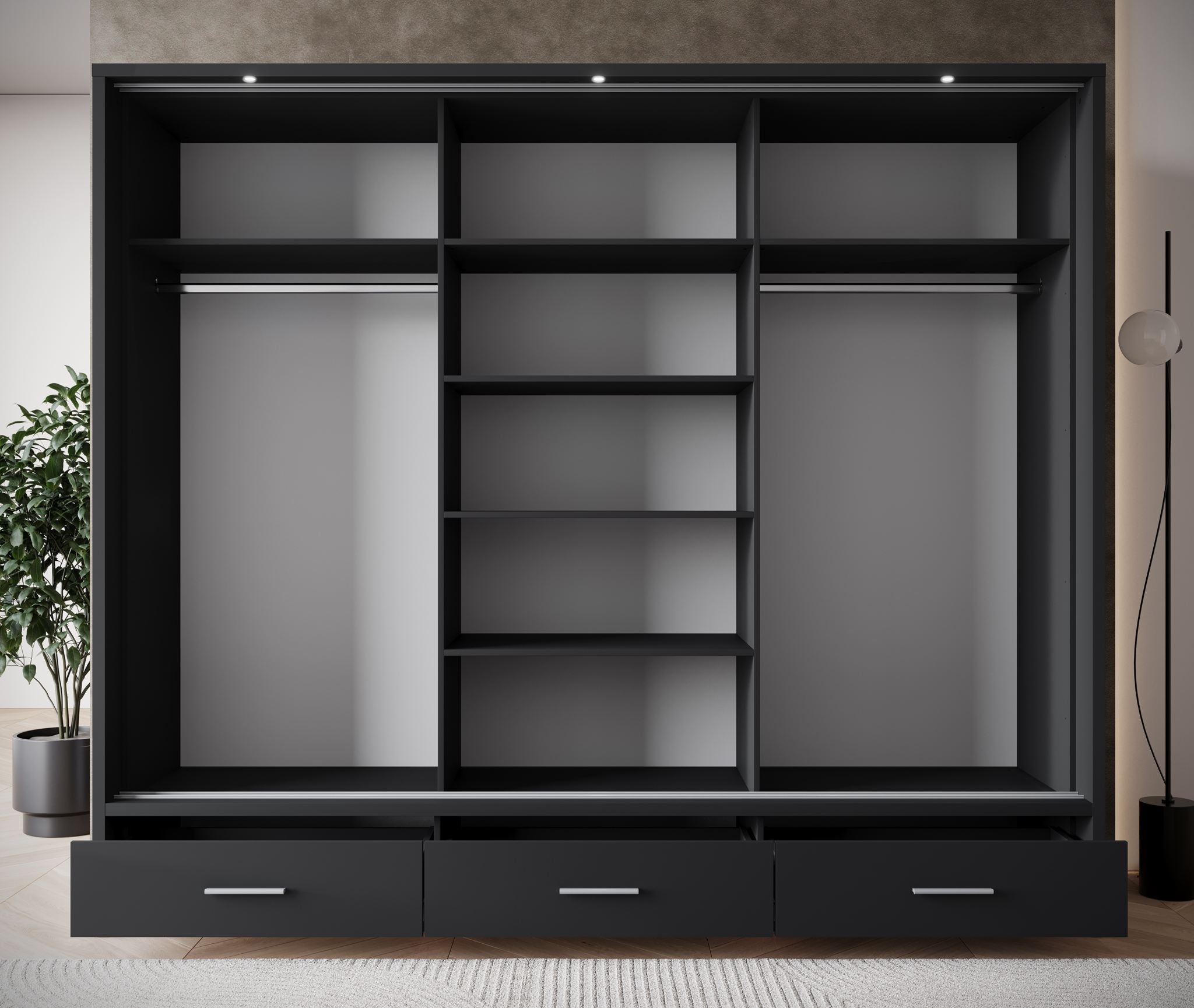 Meubella - Kledingkast Autumn - Zwart - 250 cm - Met spiegel