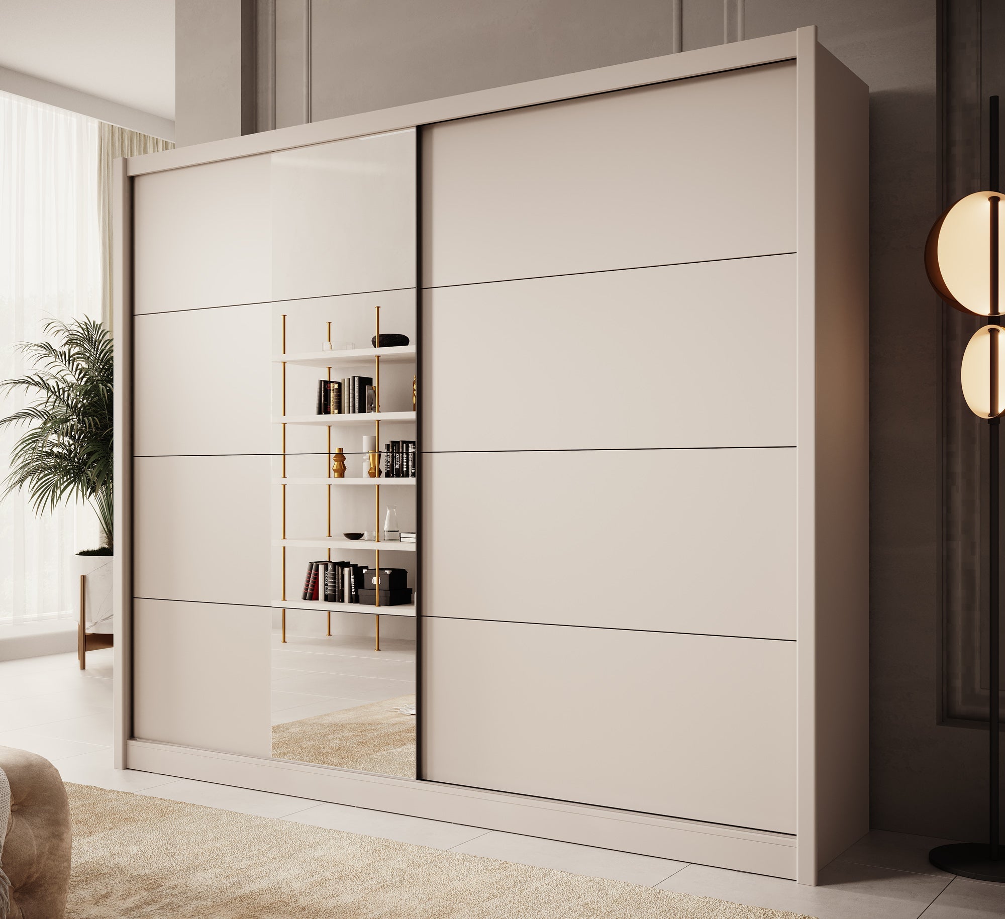 Meubella - Kledingkast Azul - Beige - 251 cm - Met spiegel