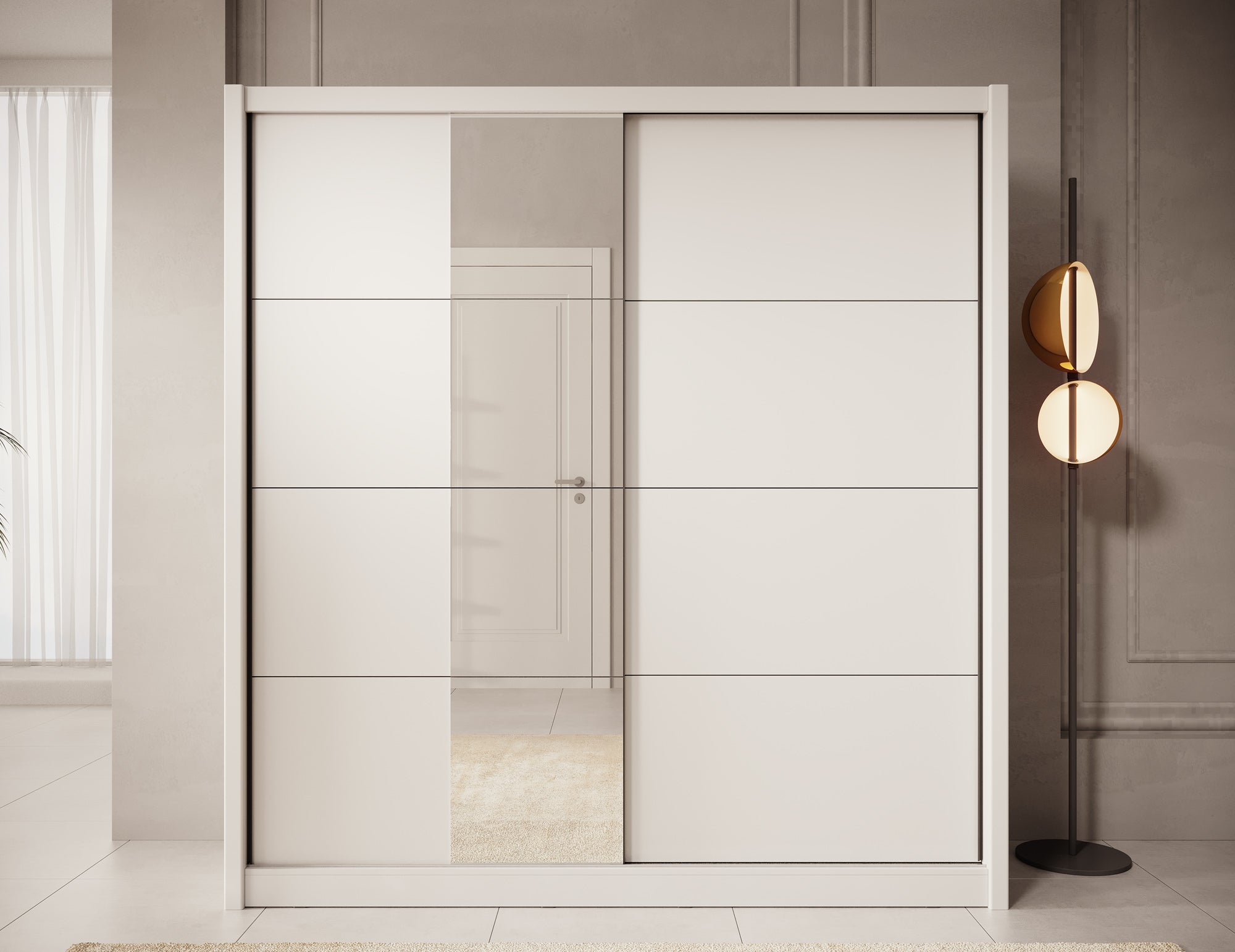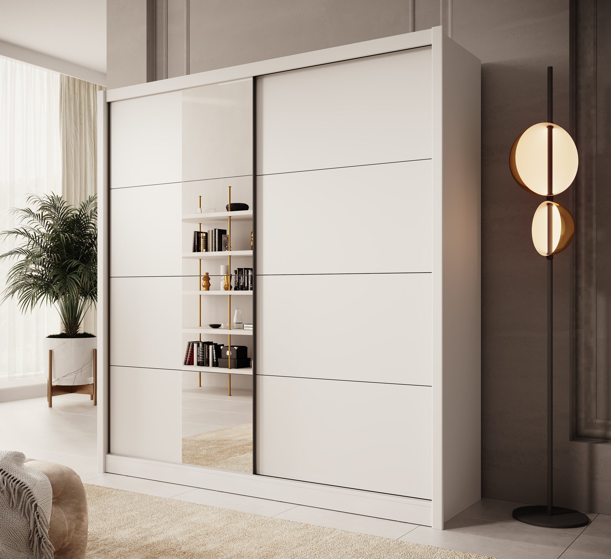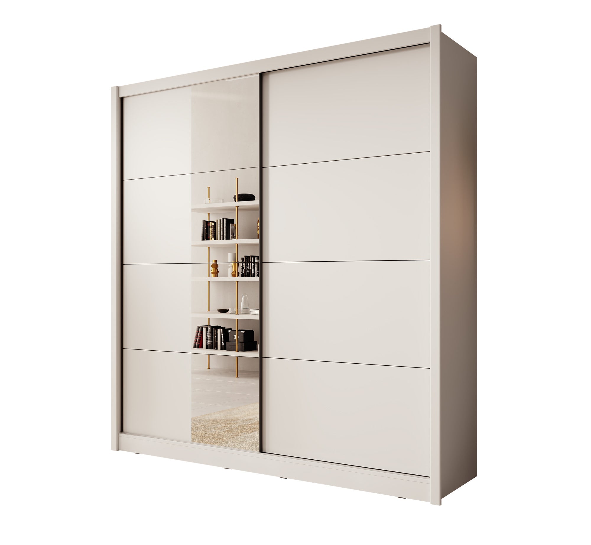 Meubella - Kledingkast Azul - Wit - 205 cm - Met spiegel