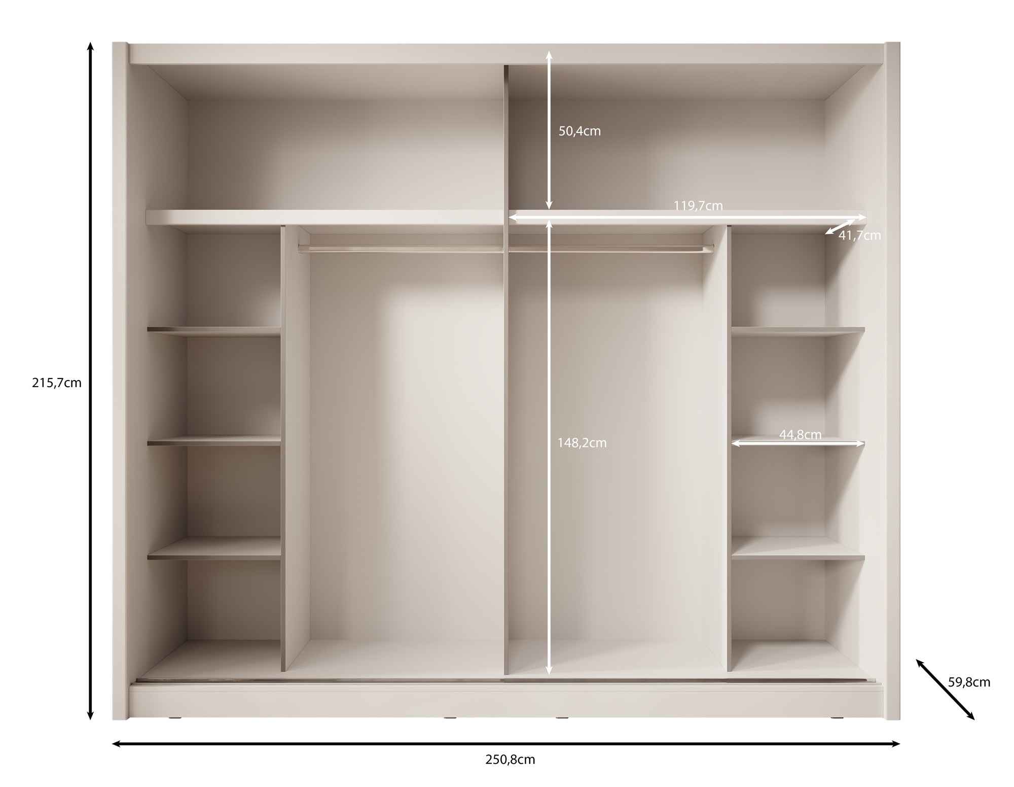 Meubella - Kledingkast Azul - Wit - 251 cm - Met spiegel