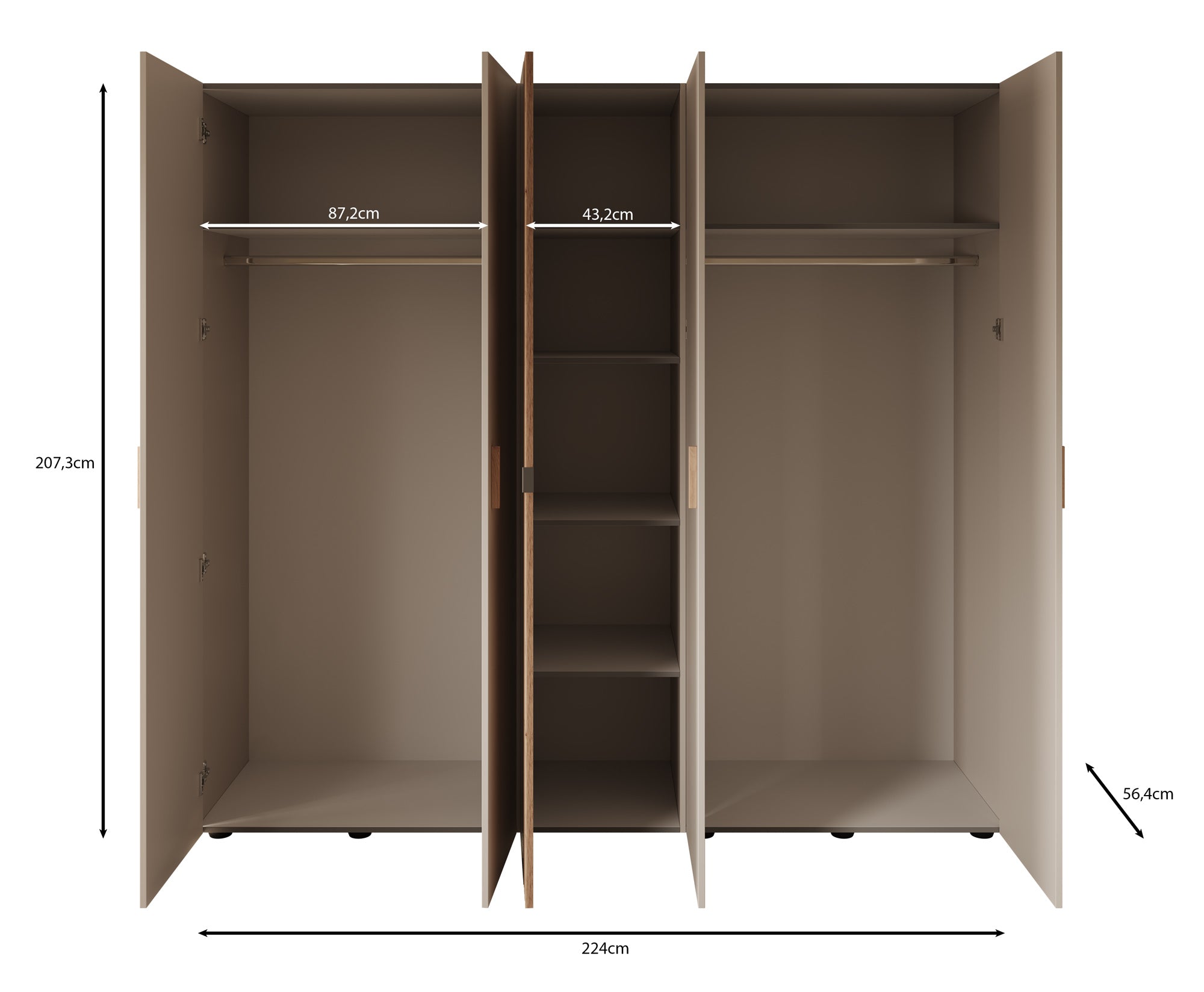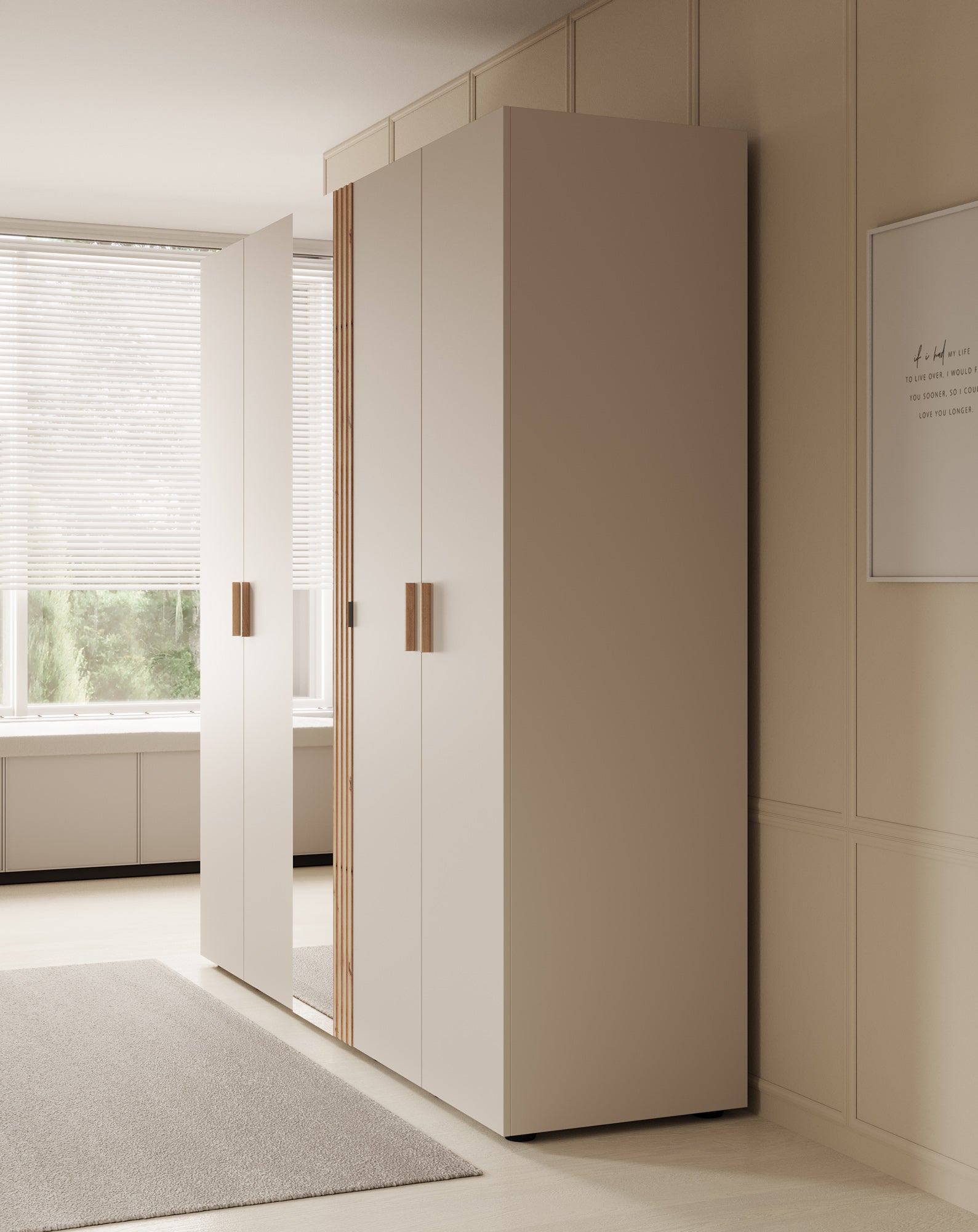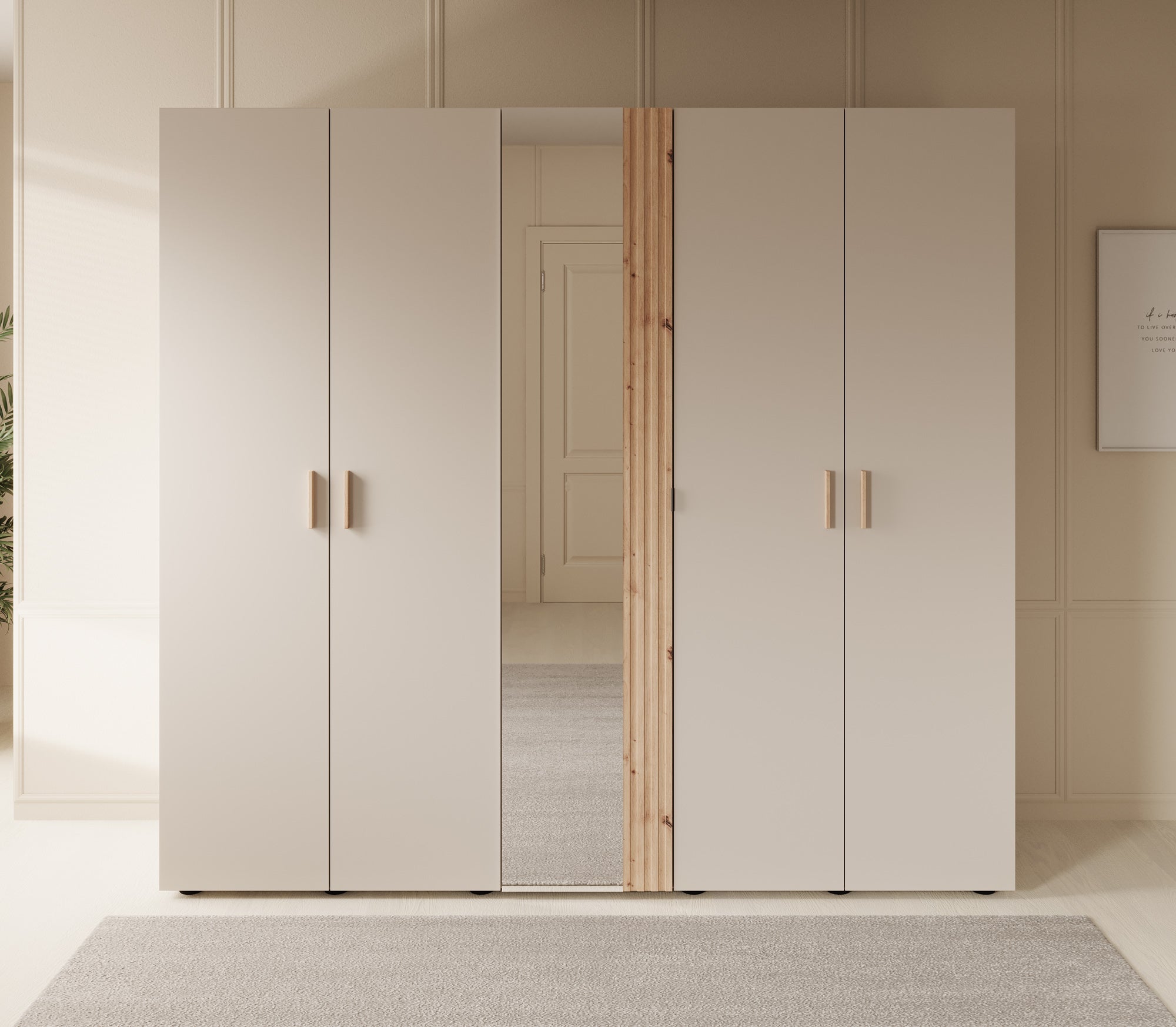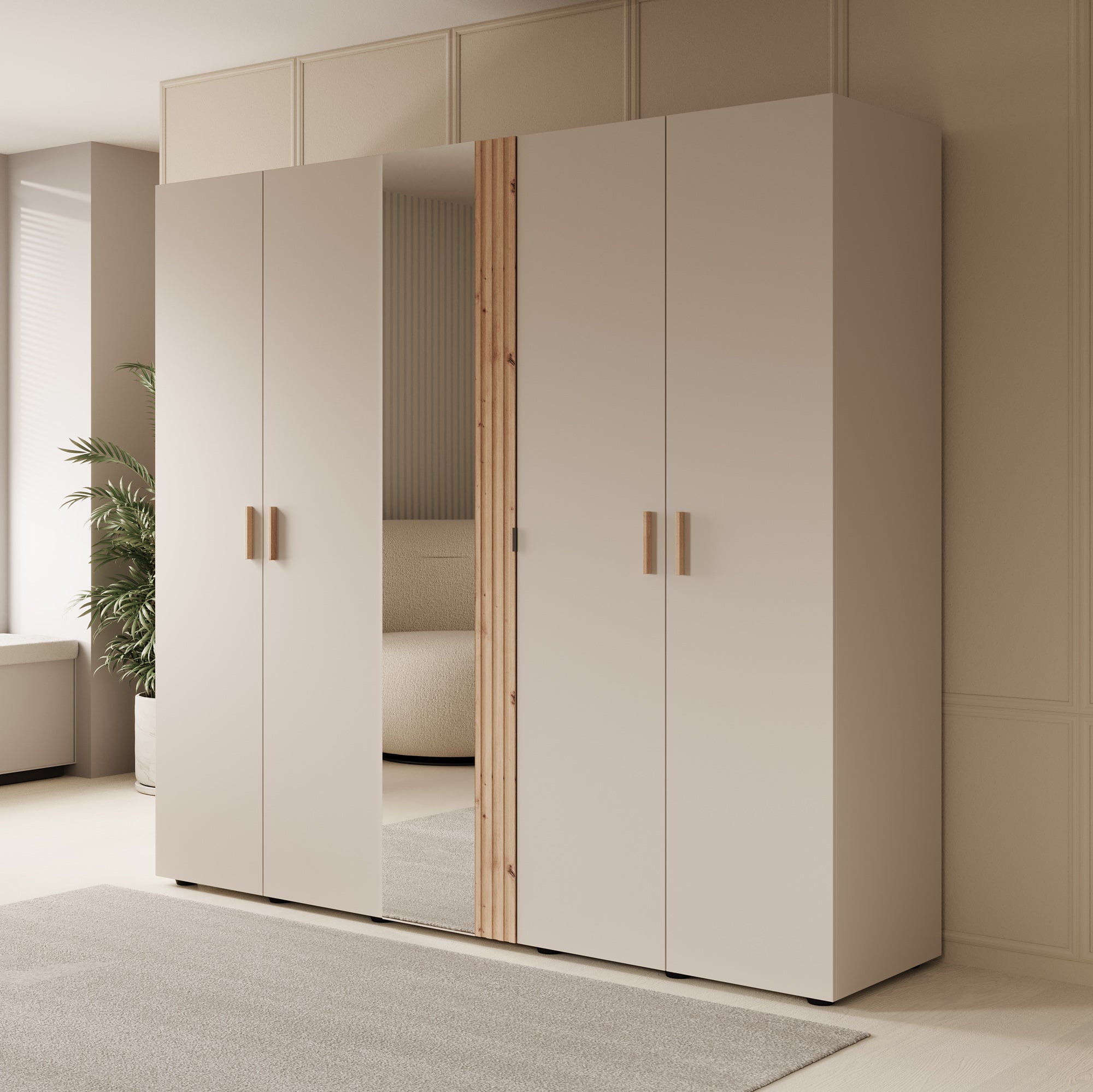 Meubella - Kledingkast Bahia - Beige - 224 cm - Met spiegel