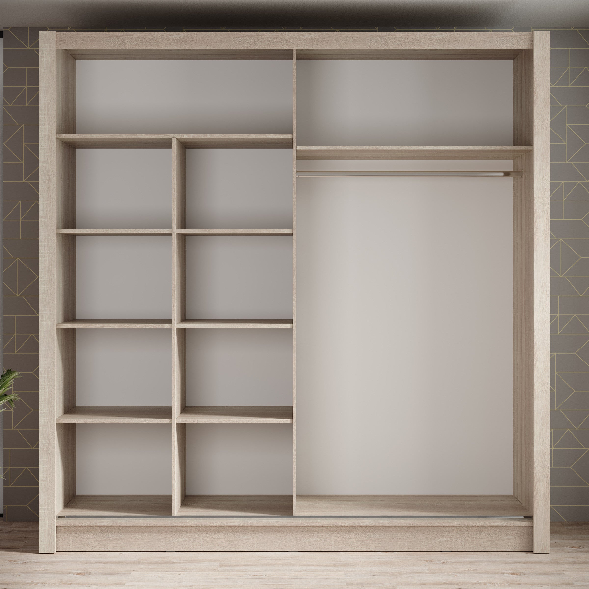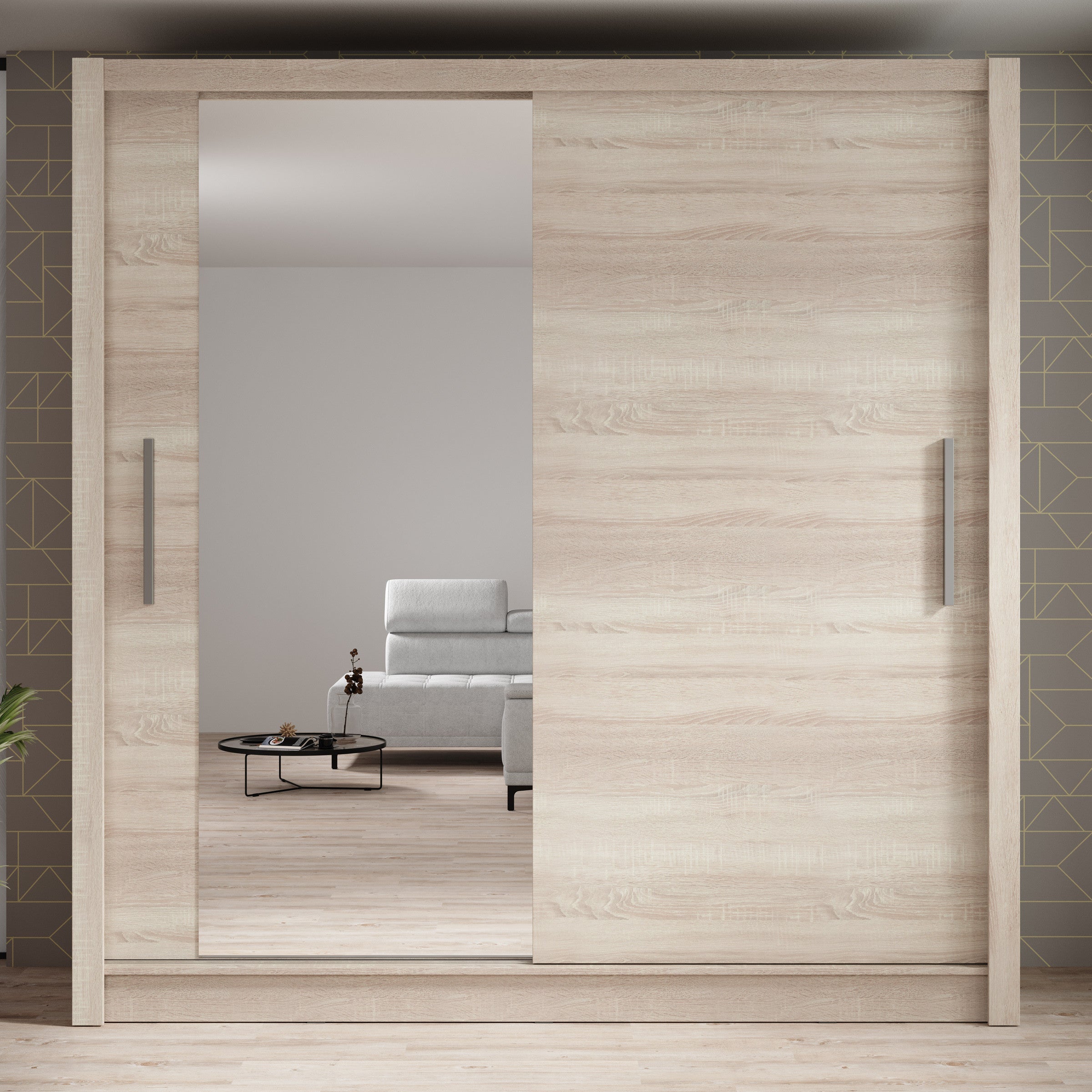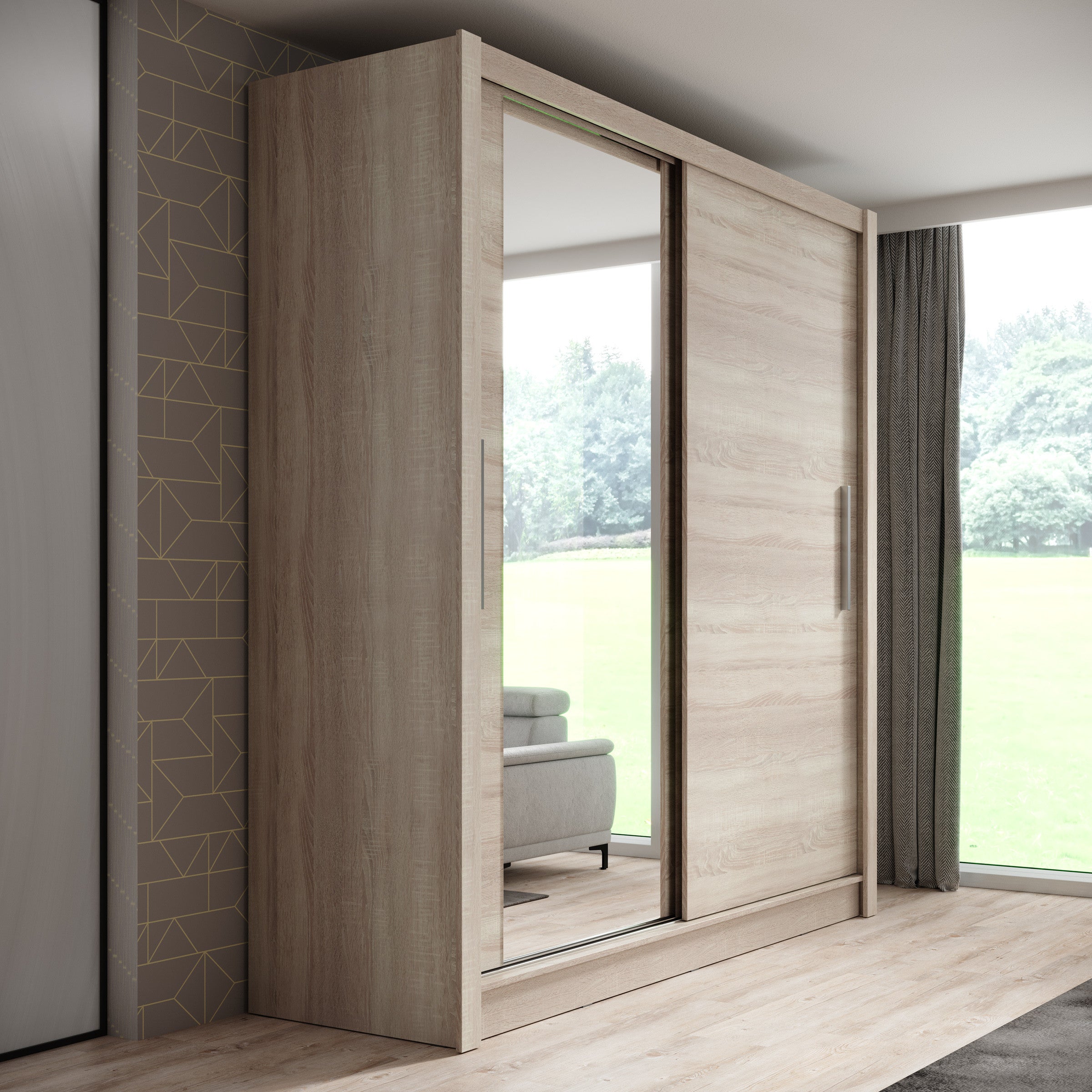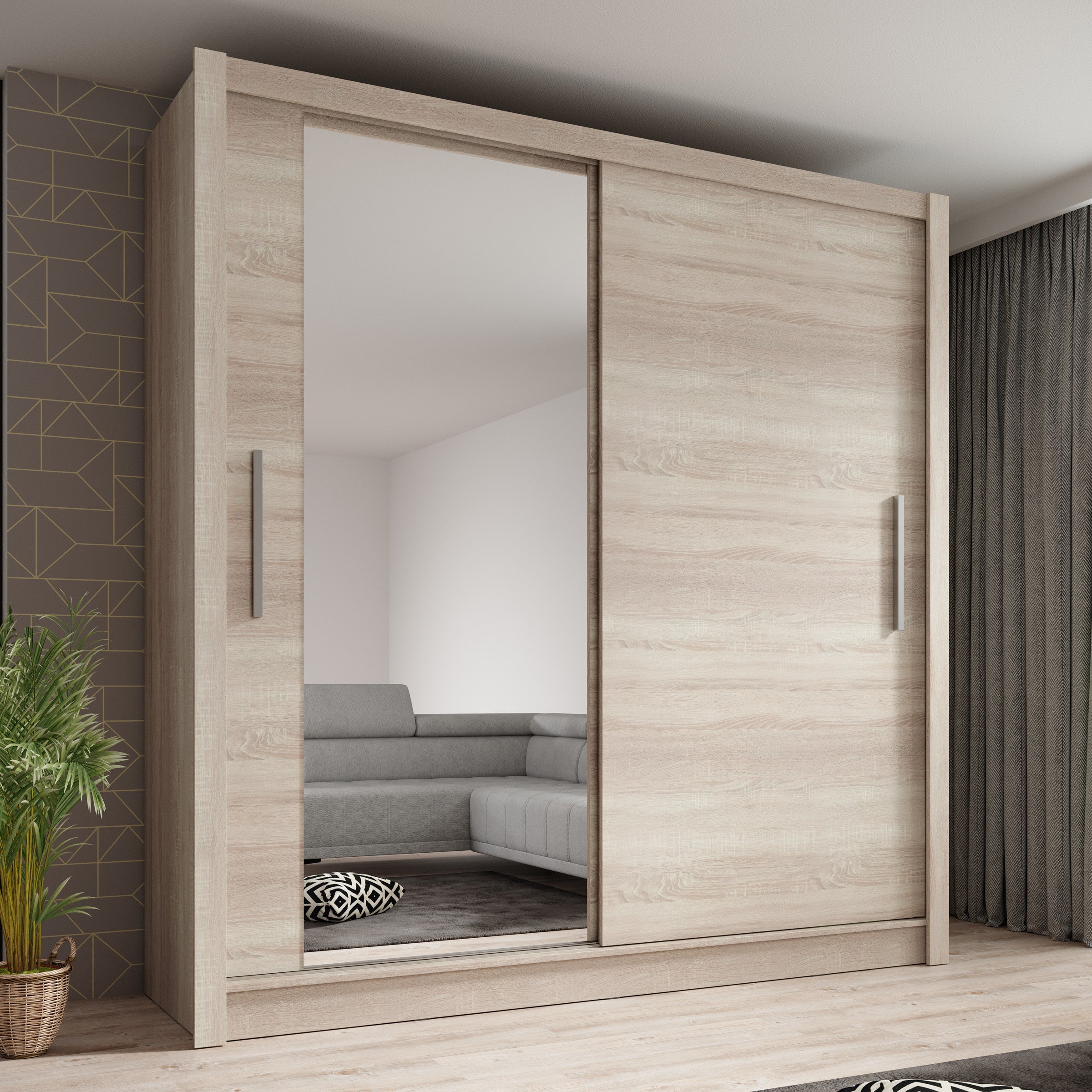 Meubella - Kledingkast Bazarre - Eiken - 205 cm - Met spiegel