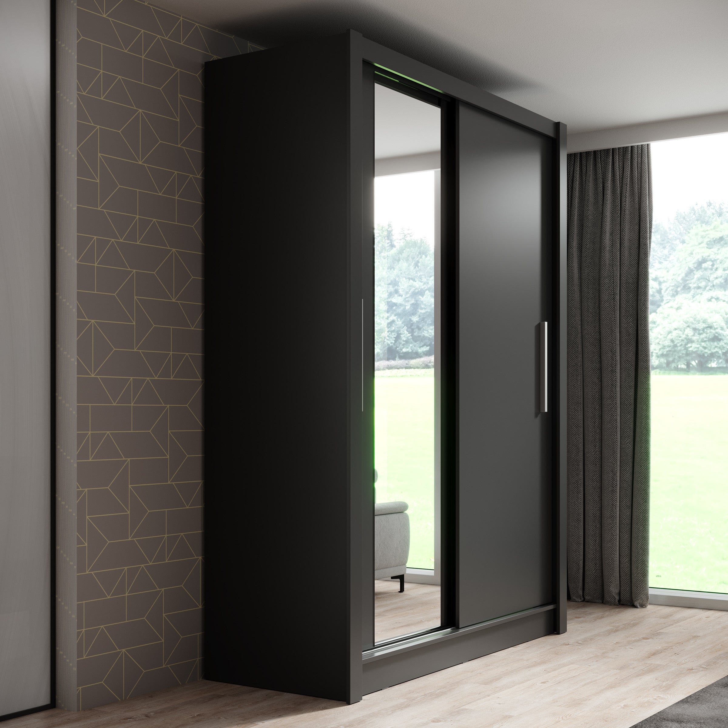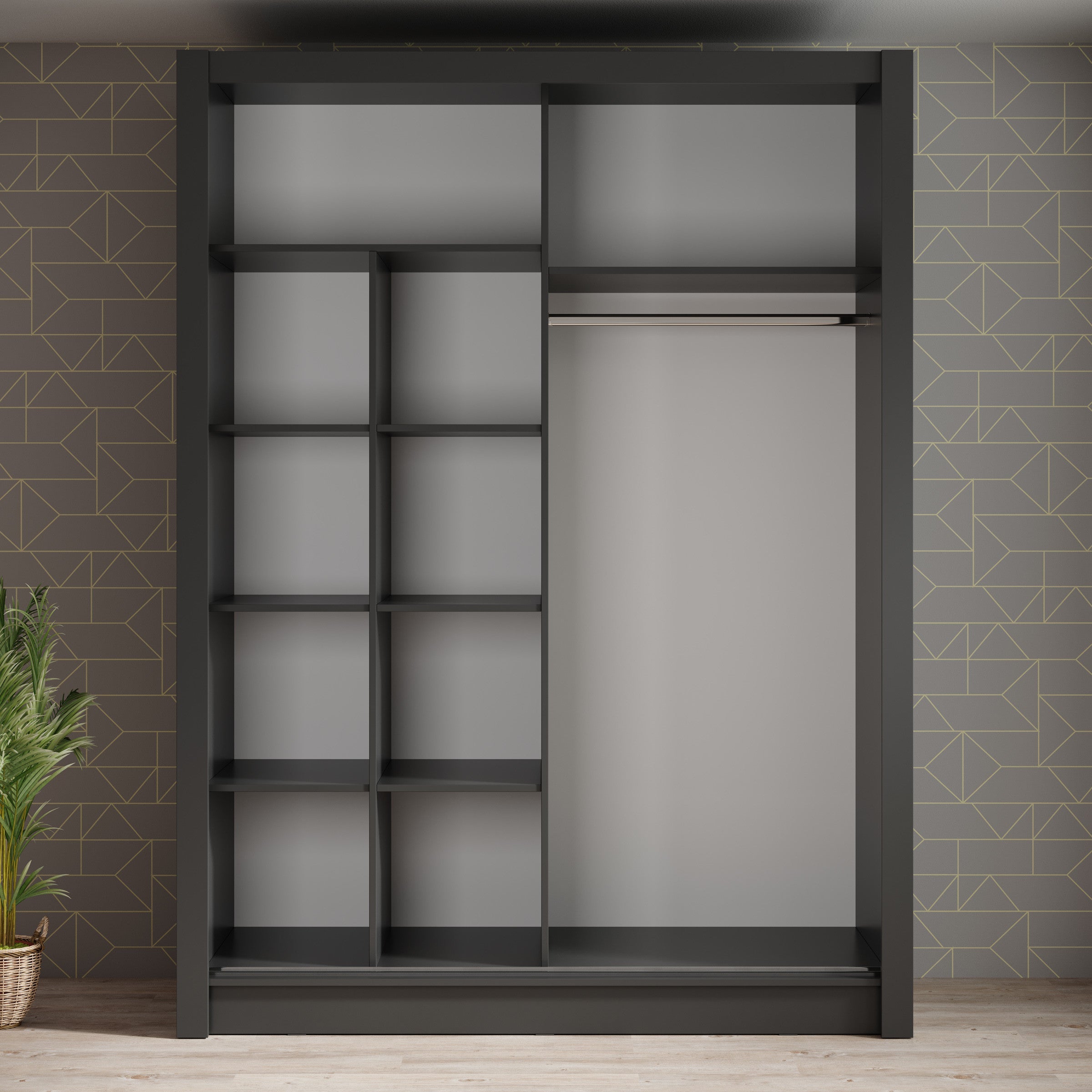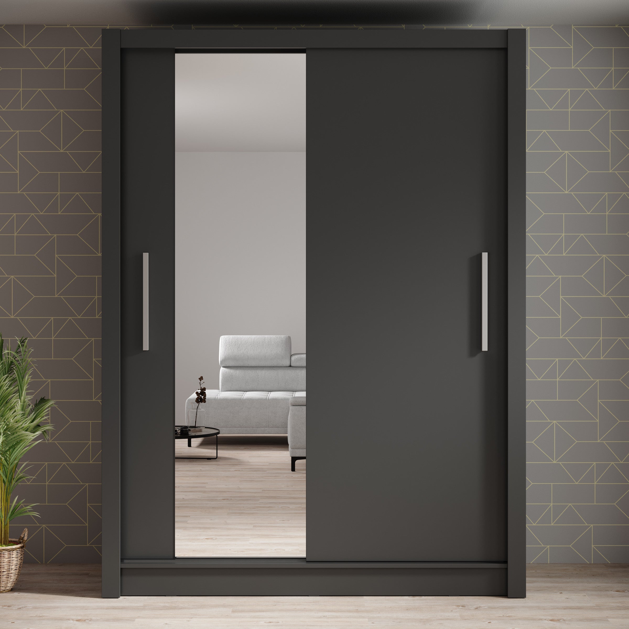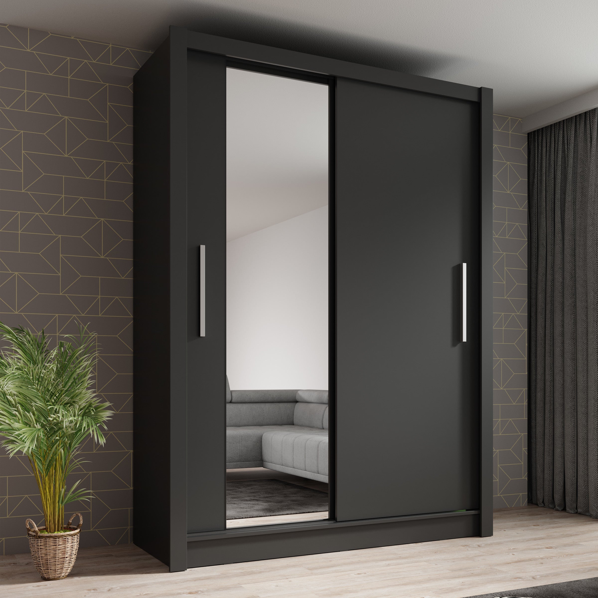 Meubella - Kledingkast Bazarre - Grijs - 155 cm - Met spiegel