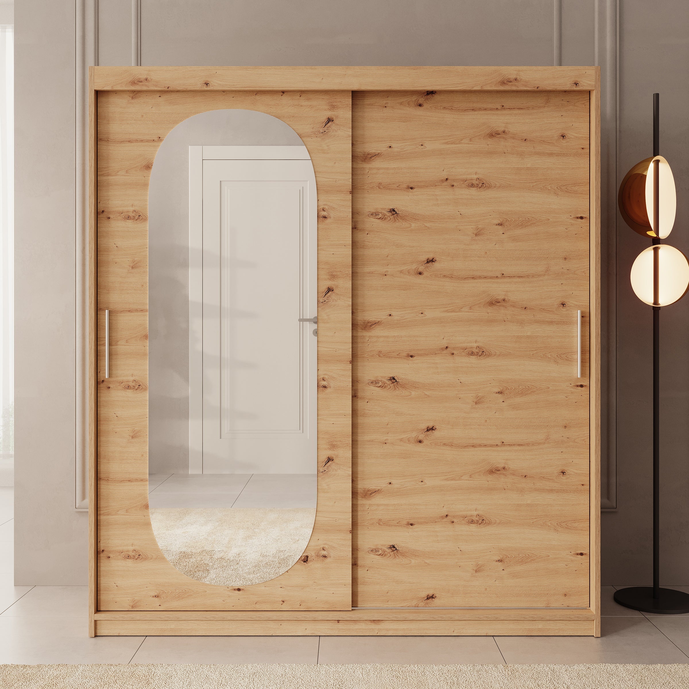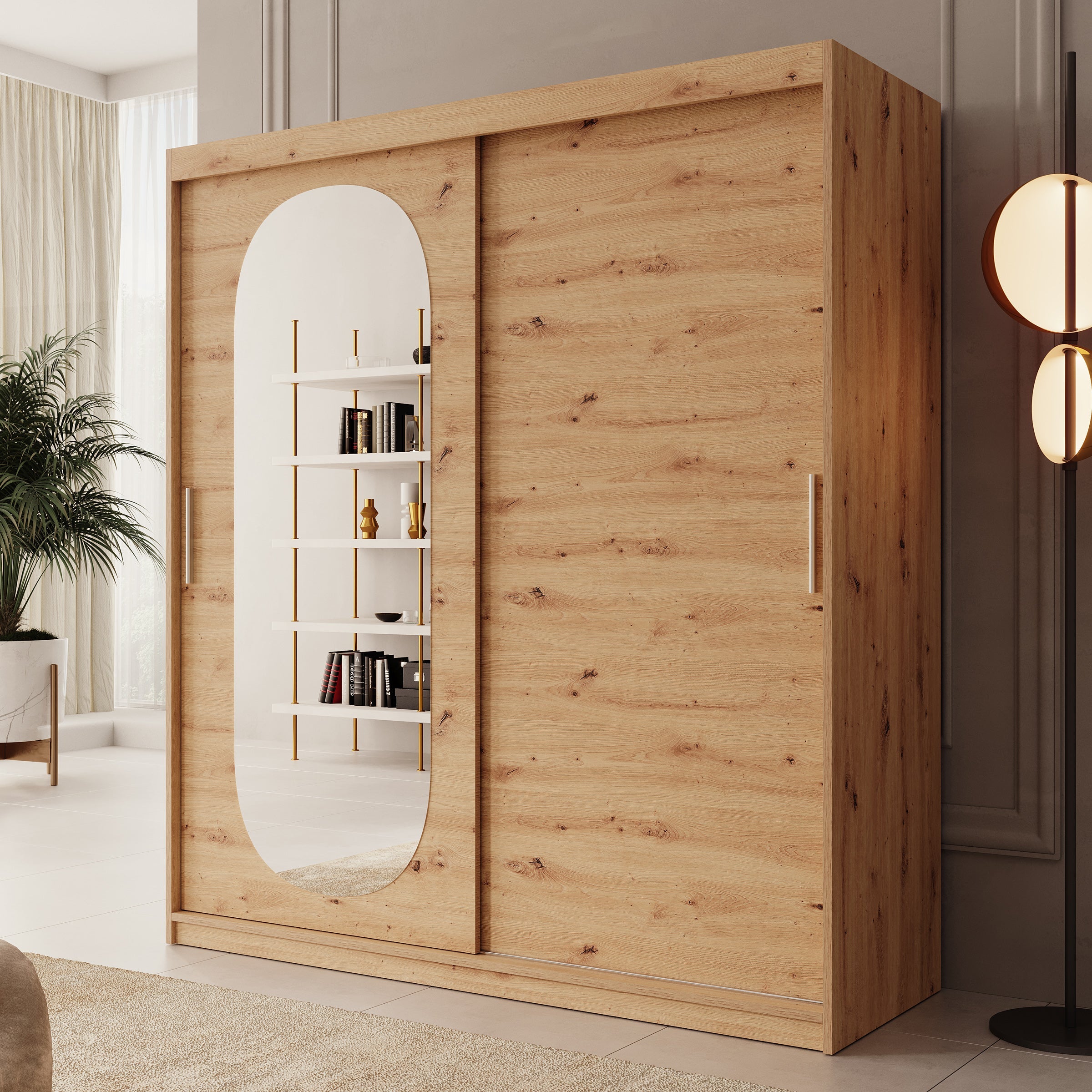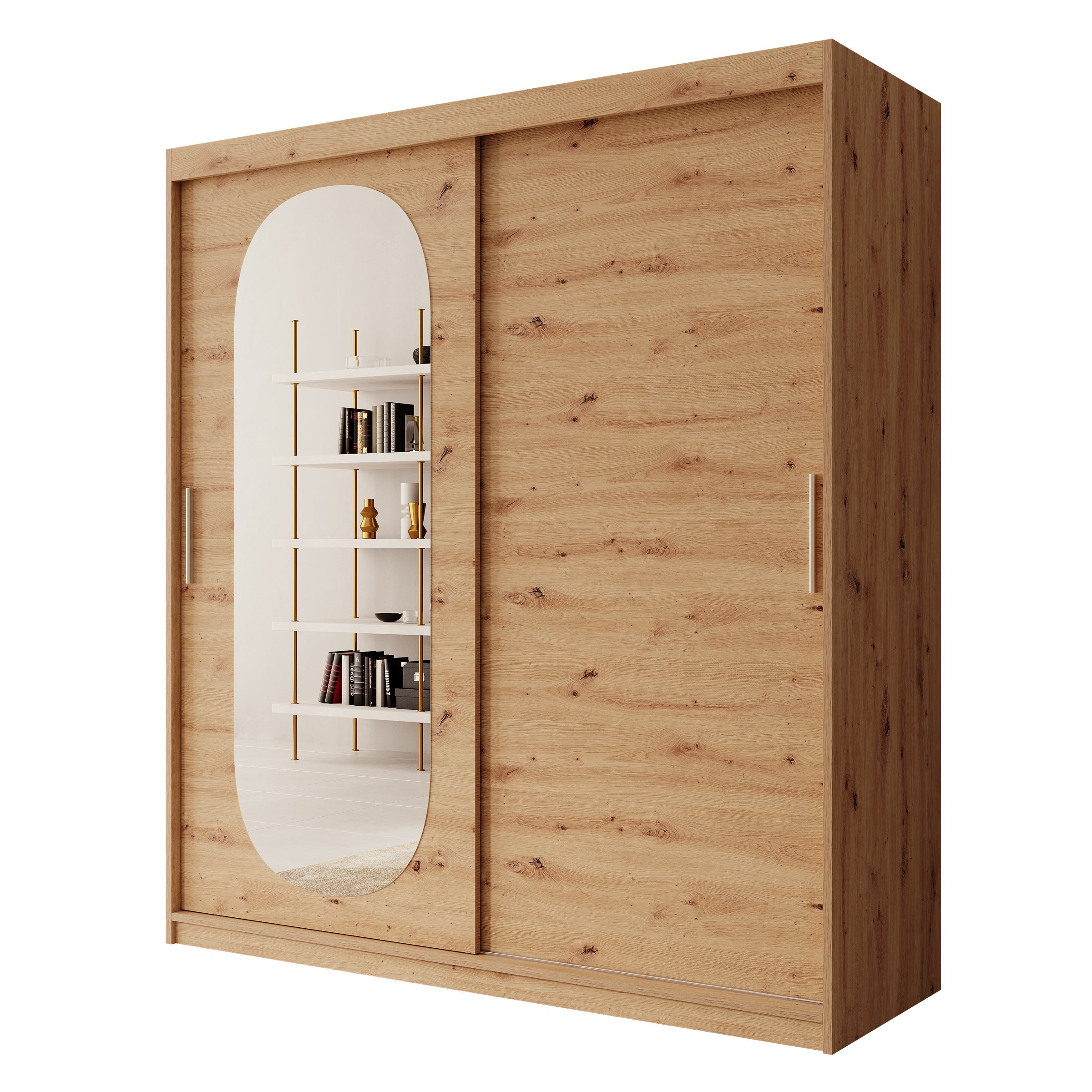 Meubella - Kledingkast Bodhi - Eiken - 180 cm - Met spiegel