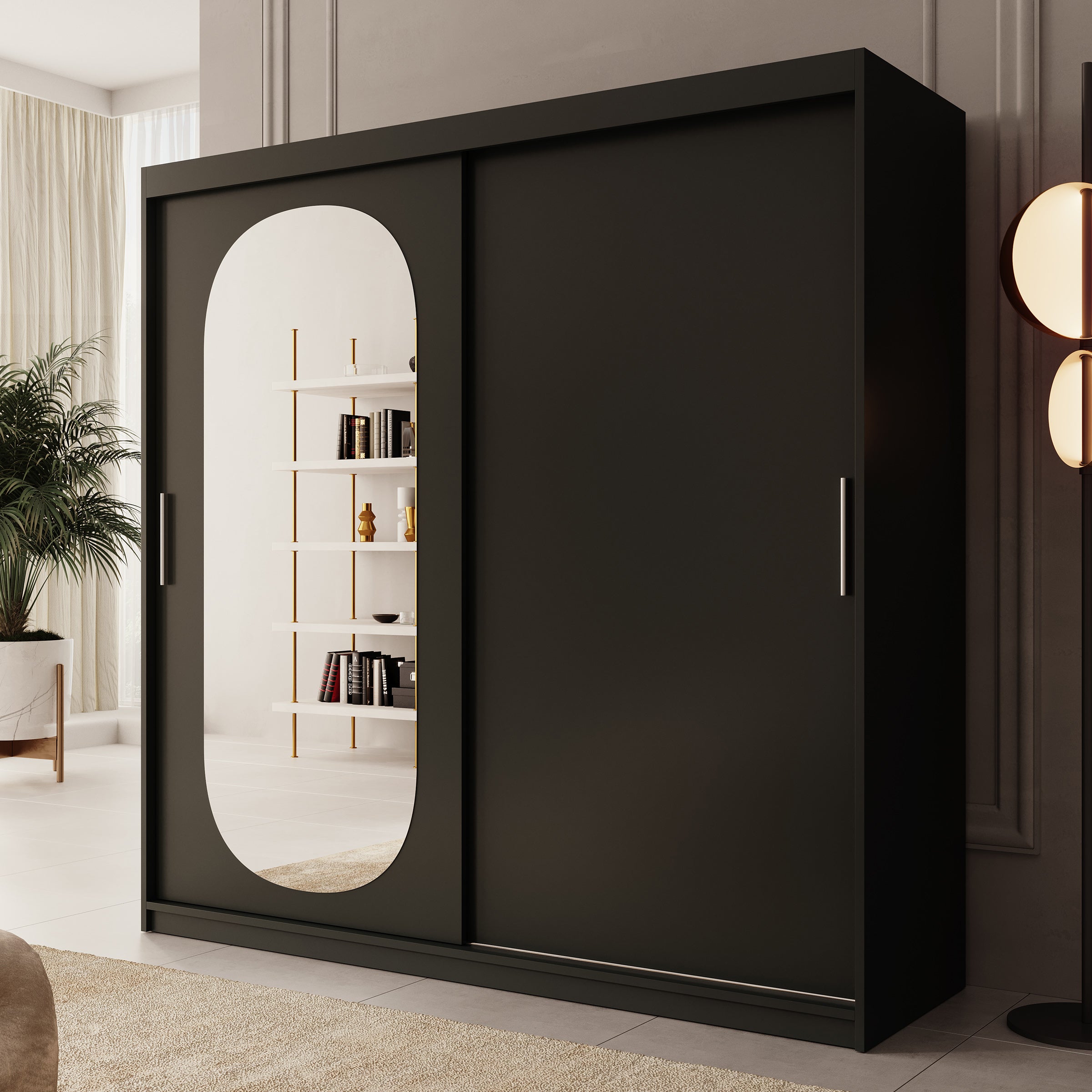 Meubella - Kledingkast Bodhi - Zwart - 200 cm - Met spiegel