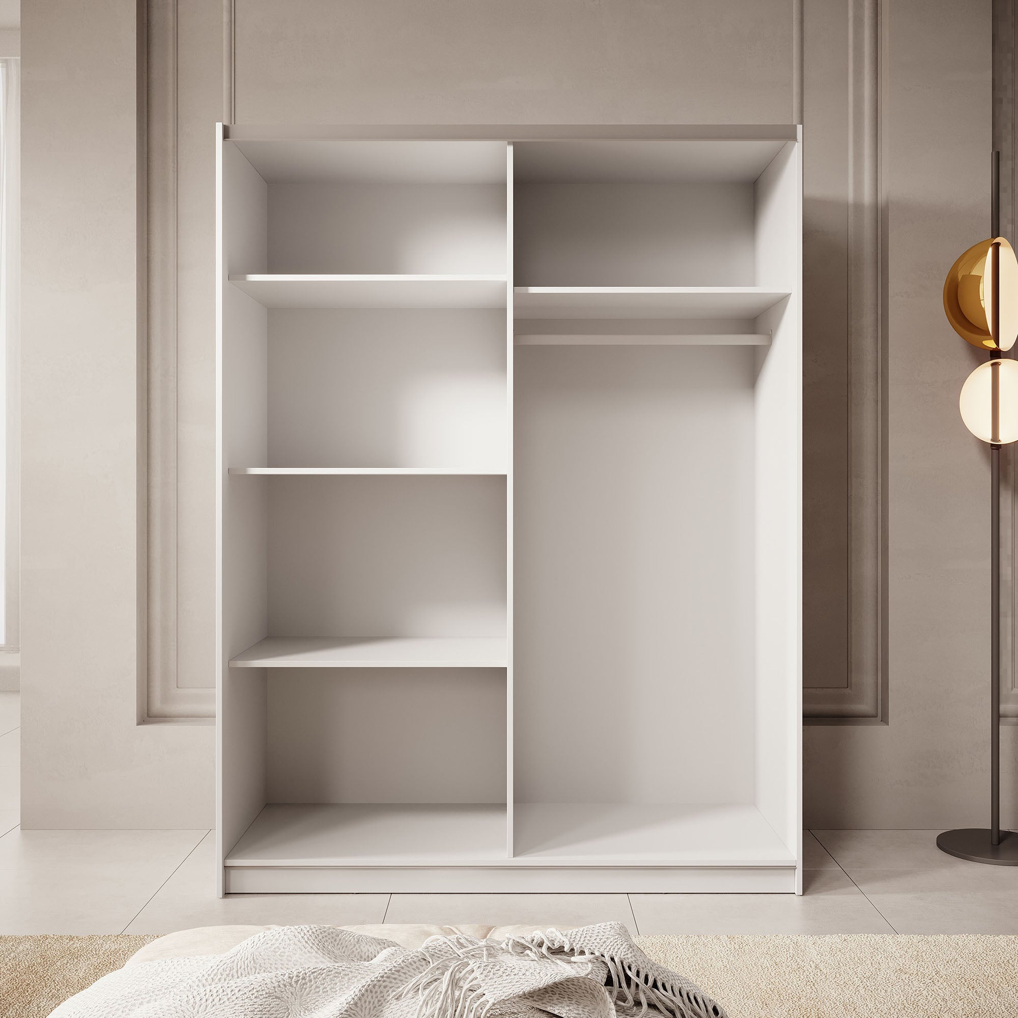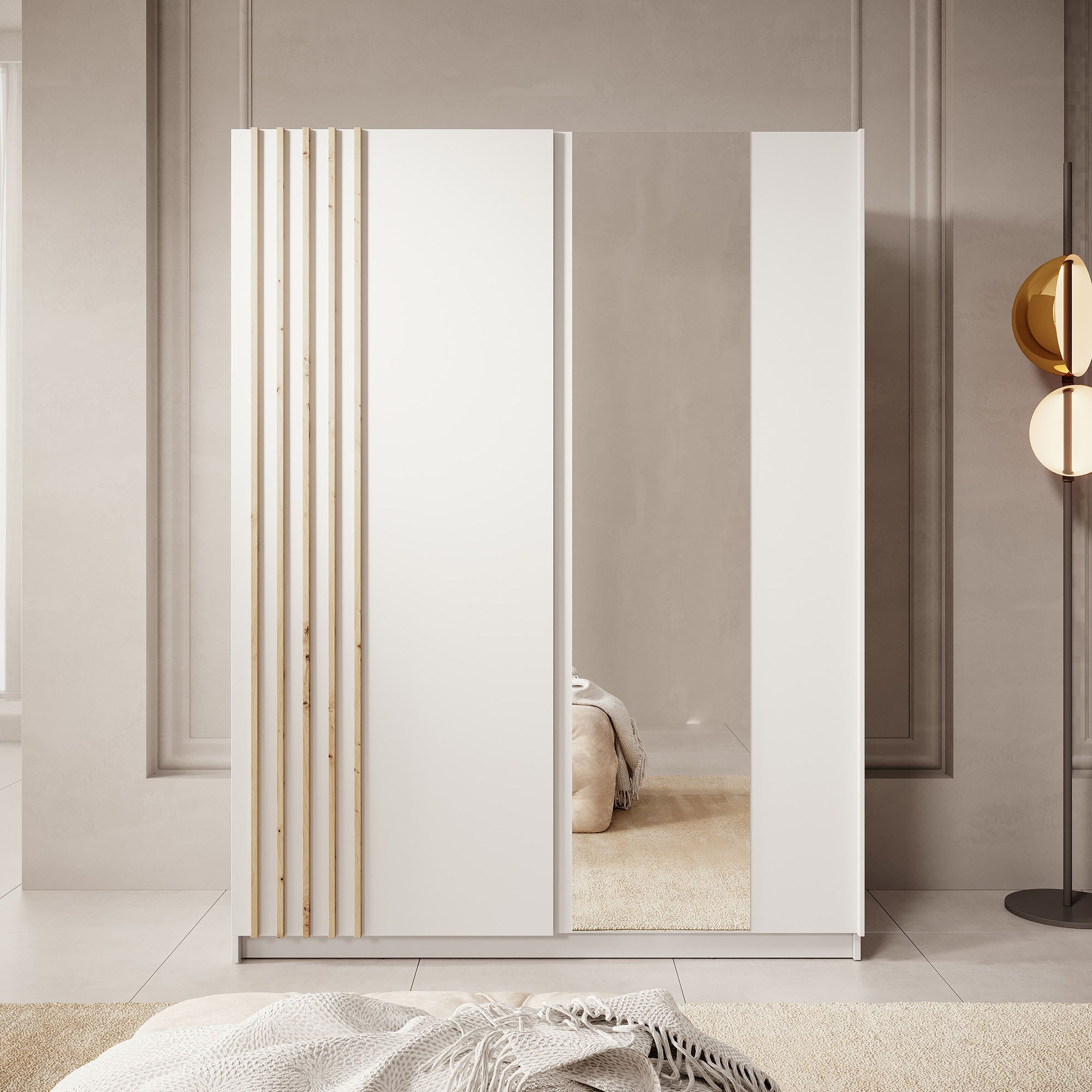Meubella - Kledingkast Boets - Wit - Eiken - 150 cm - Met spiegel