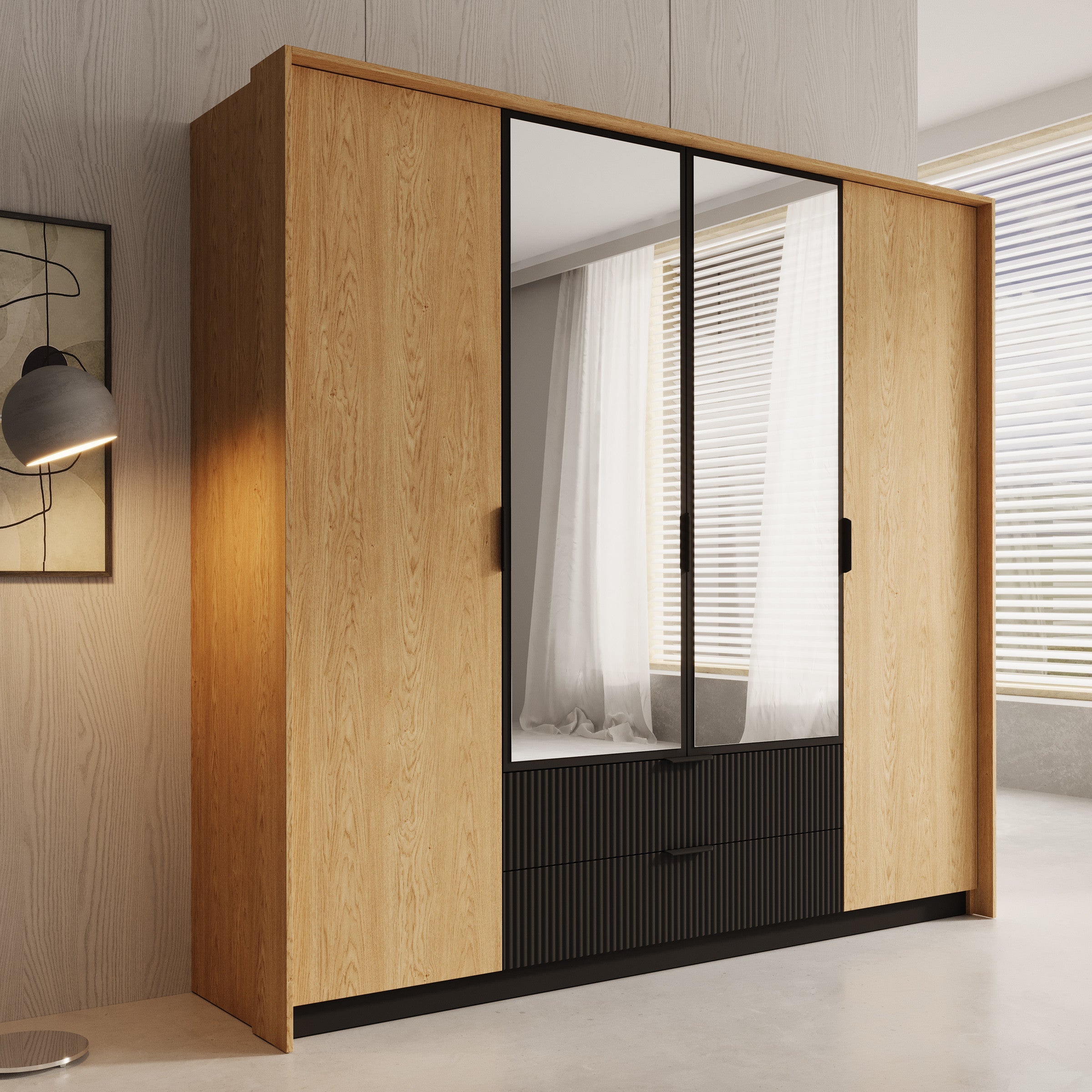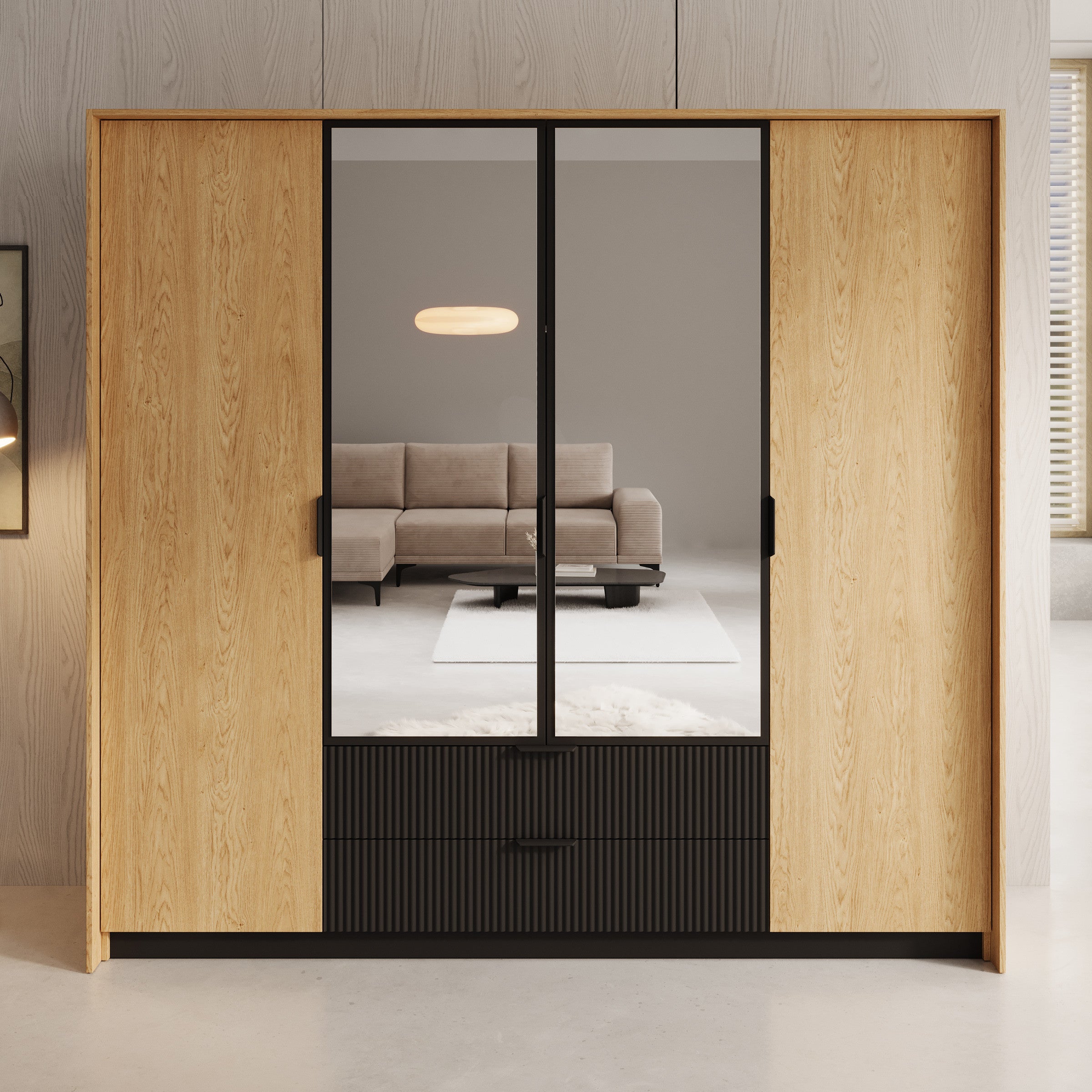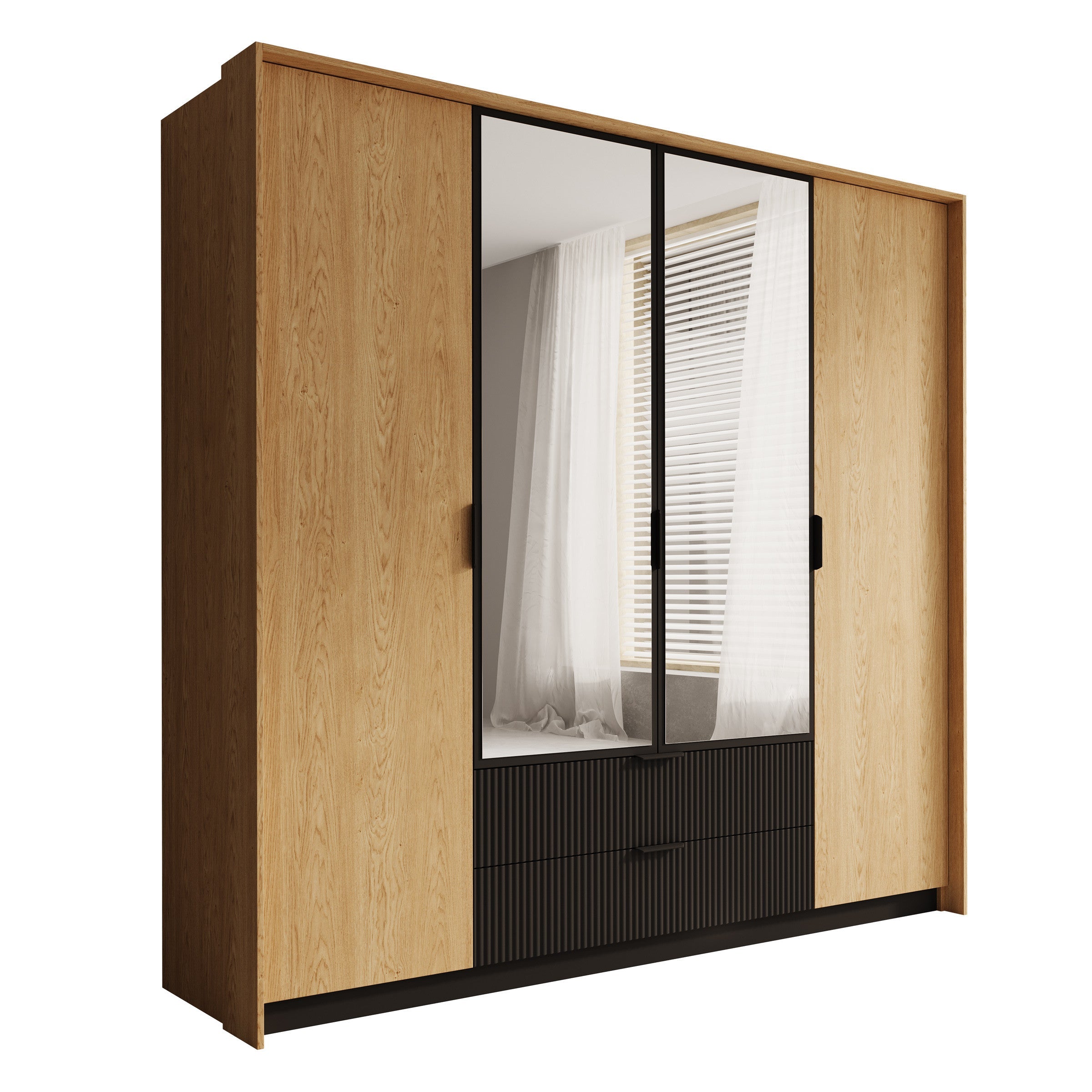 Meubella - Kledingkast Bogota - Eiken - 223 cm - Met spiegel