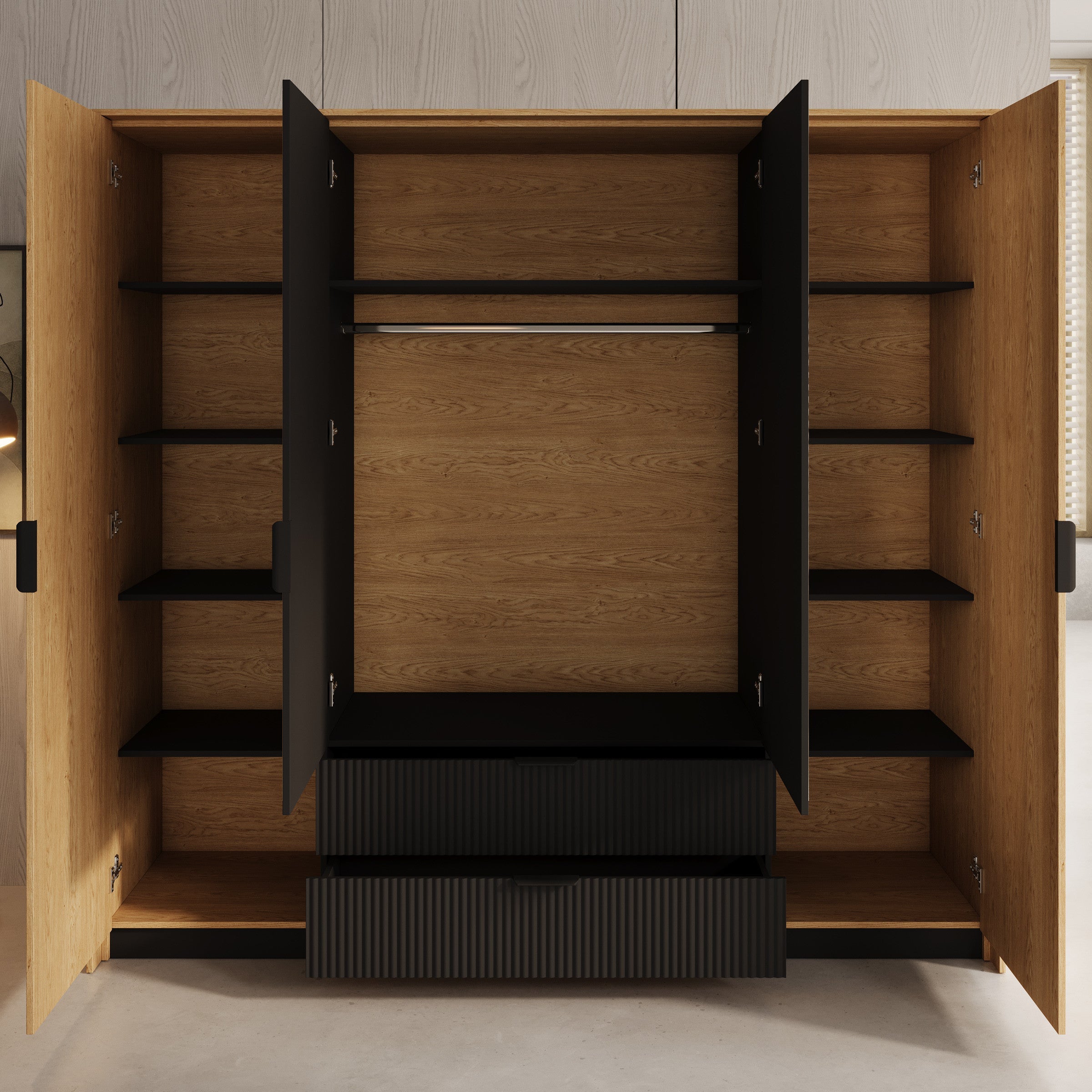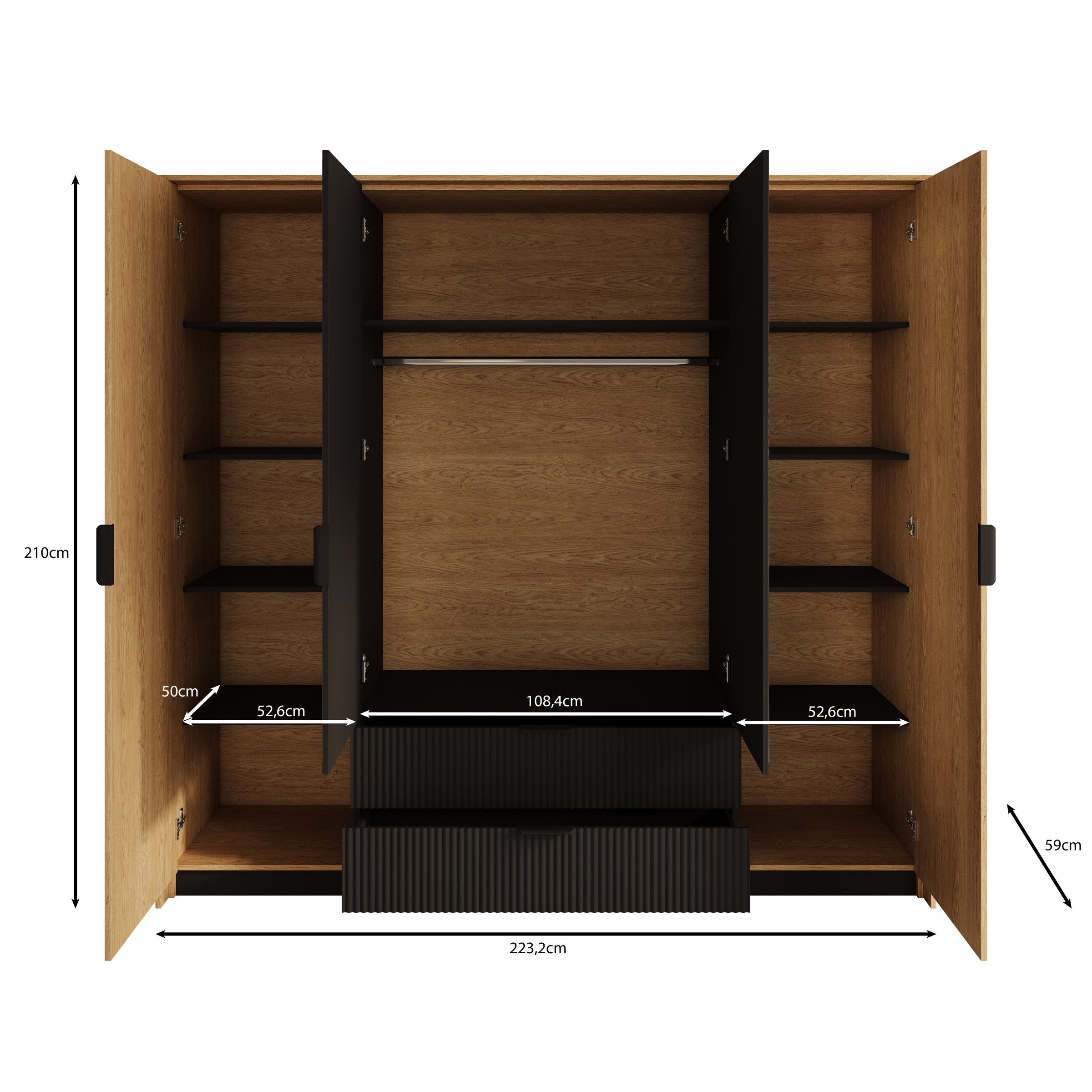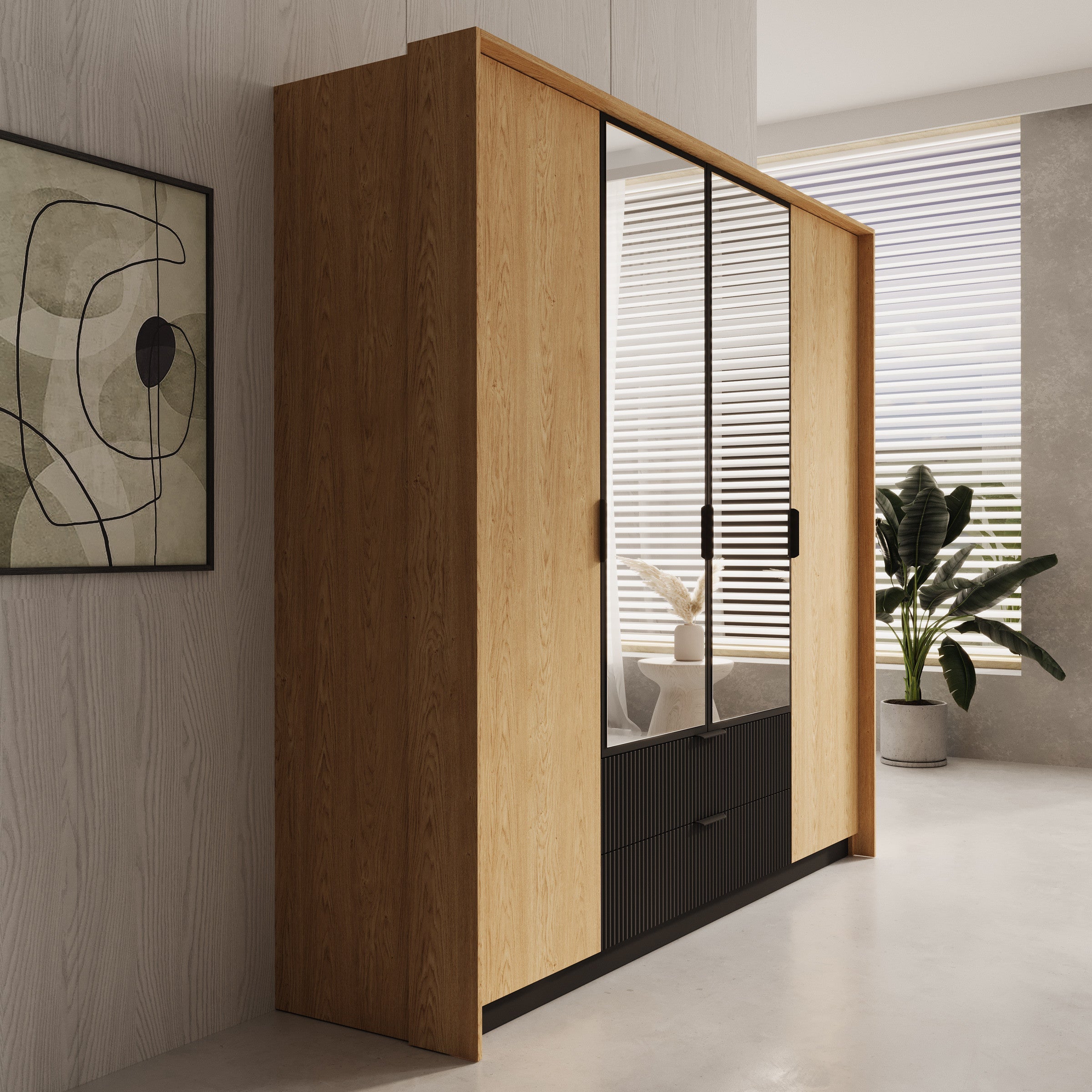 Meubella - Kledingkast Bogota - Eiken - 223 cm - Met spiegel
