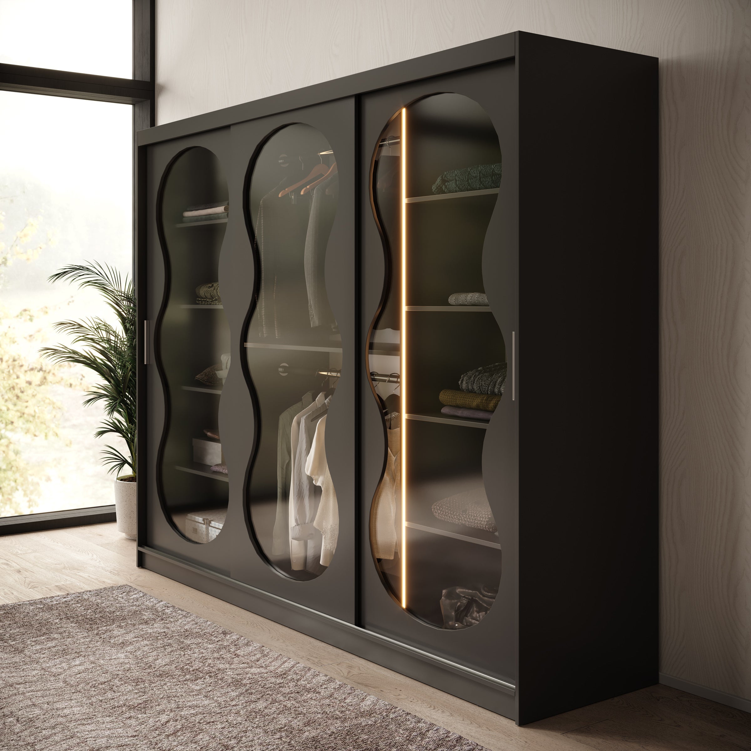 Meubella - Kledingkast Bunaro - Zwart - 250 cm