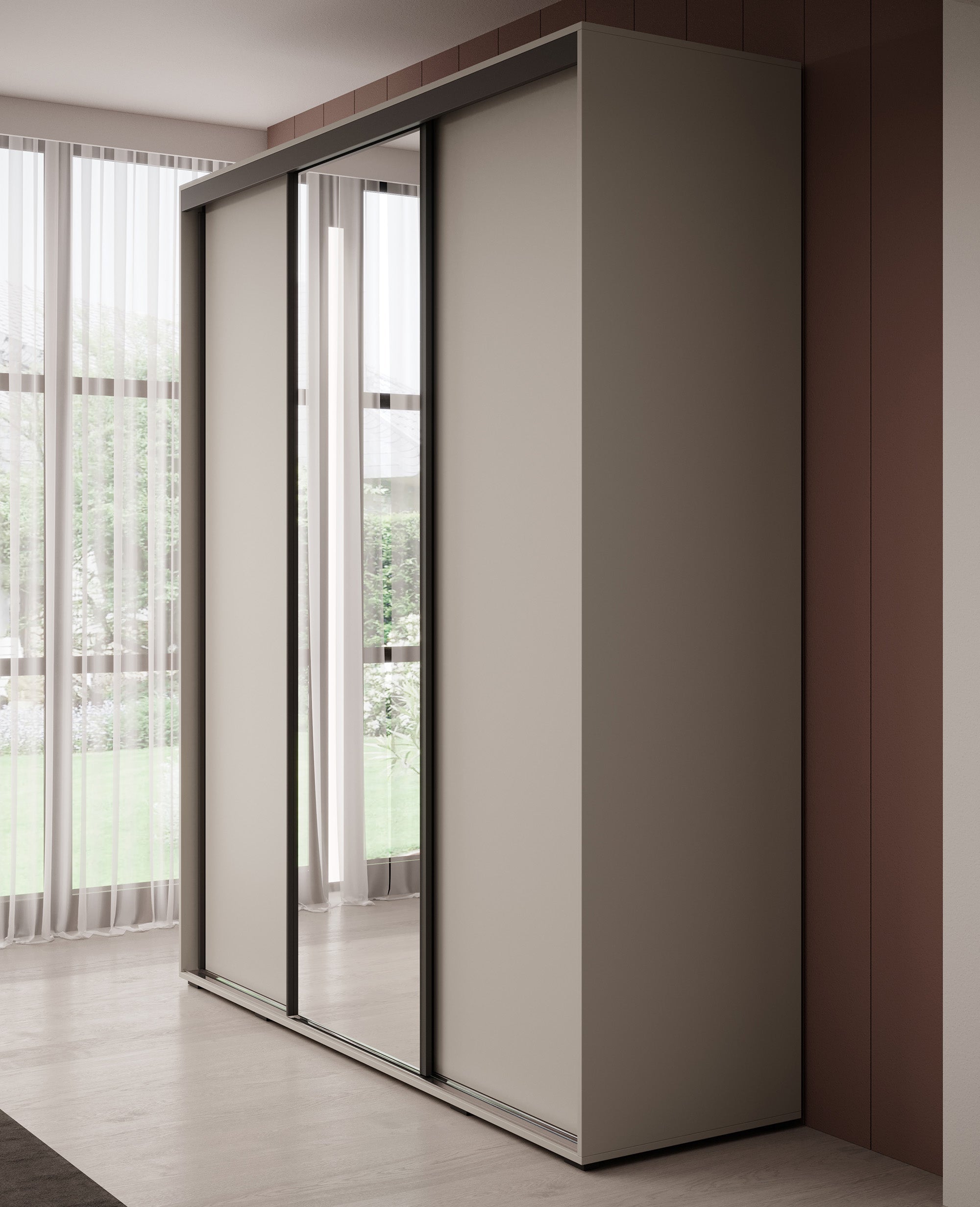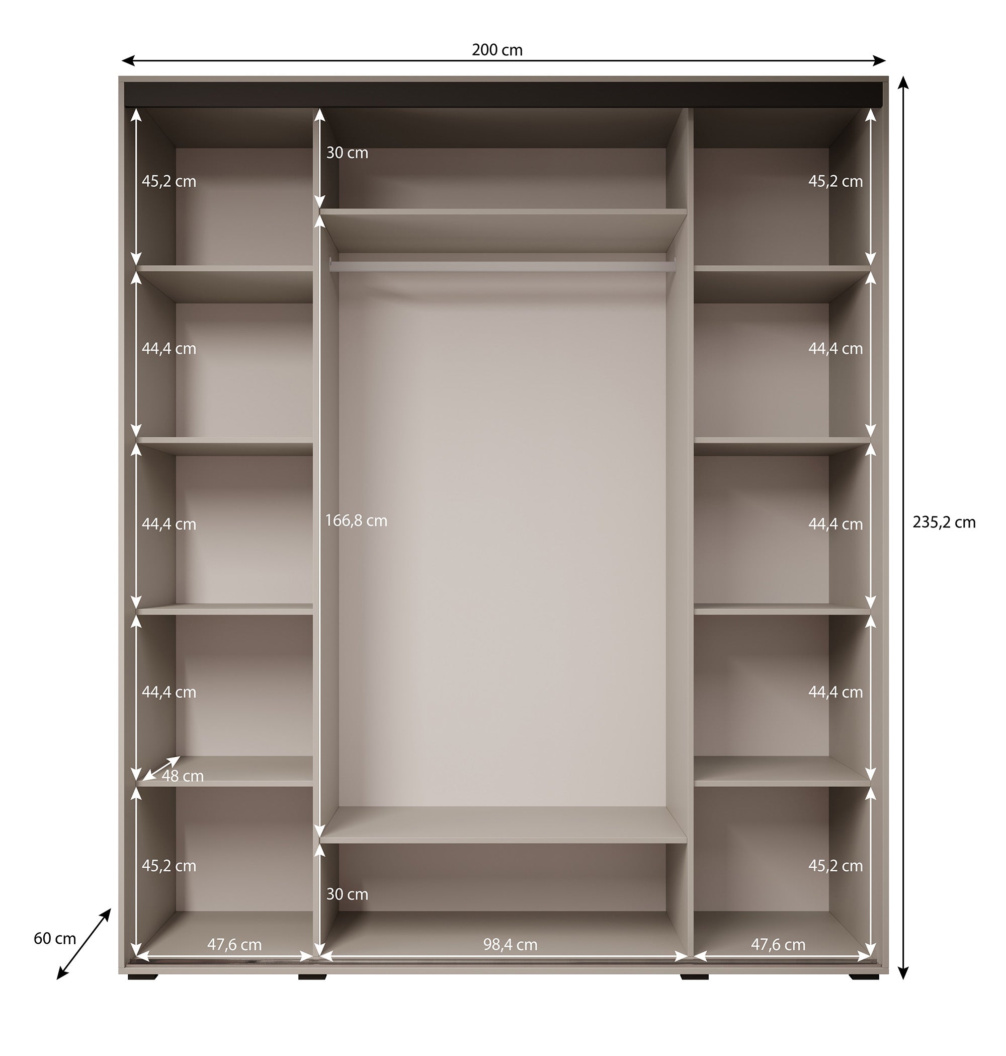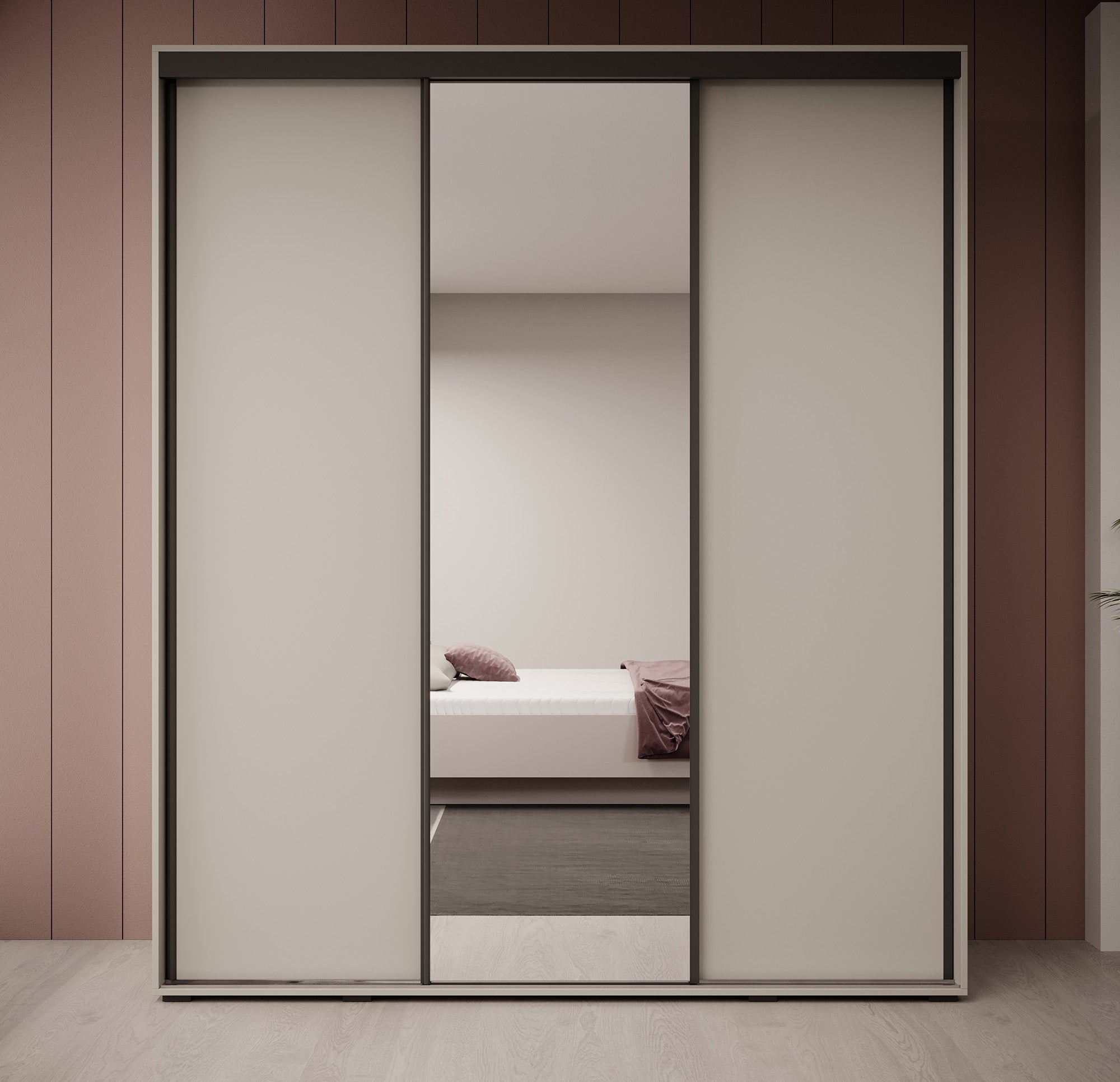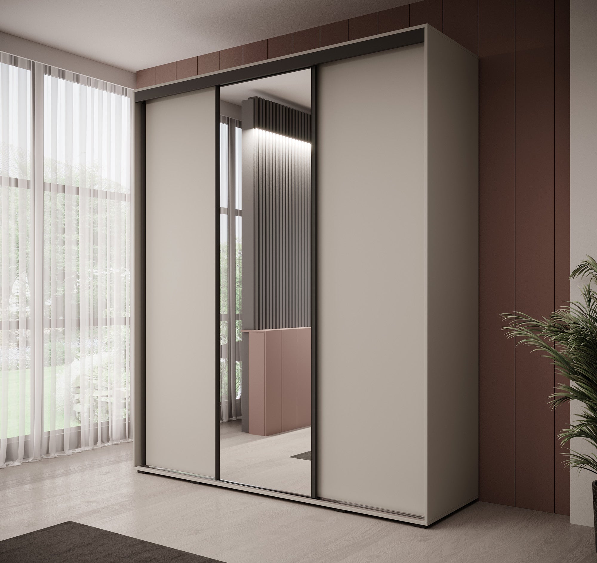 Meubella - Kledingkast Delos 3 - Beige - 200 cm - Met spiegel