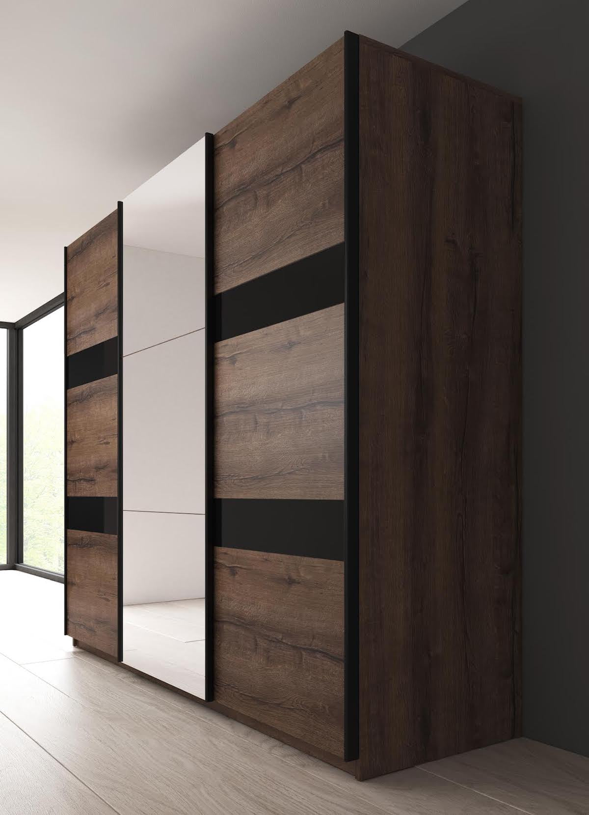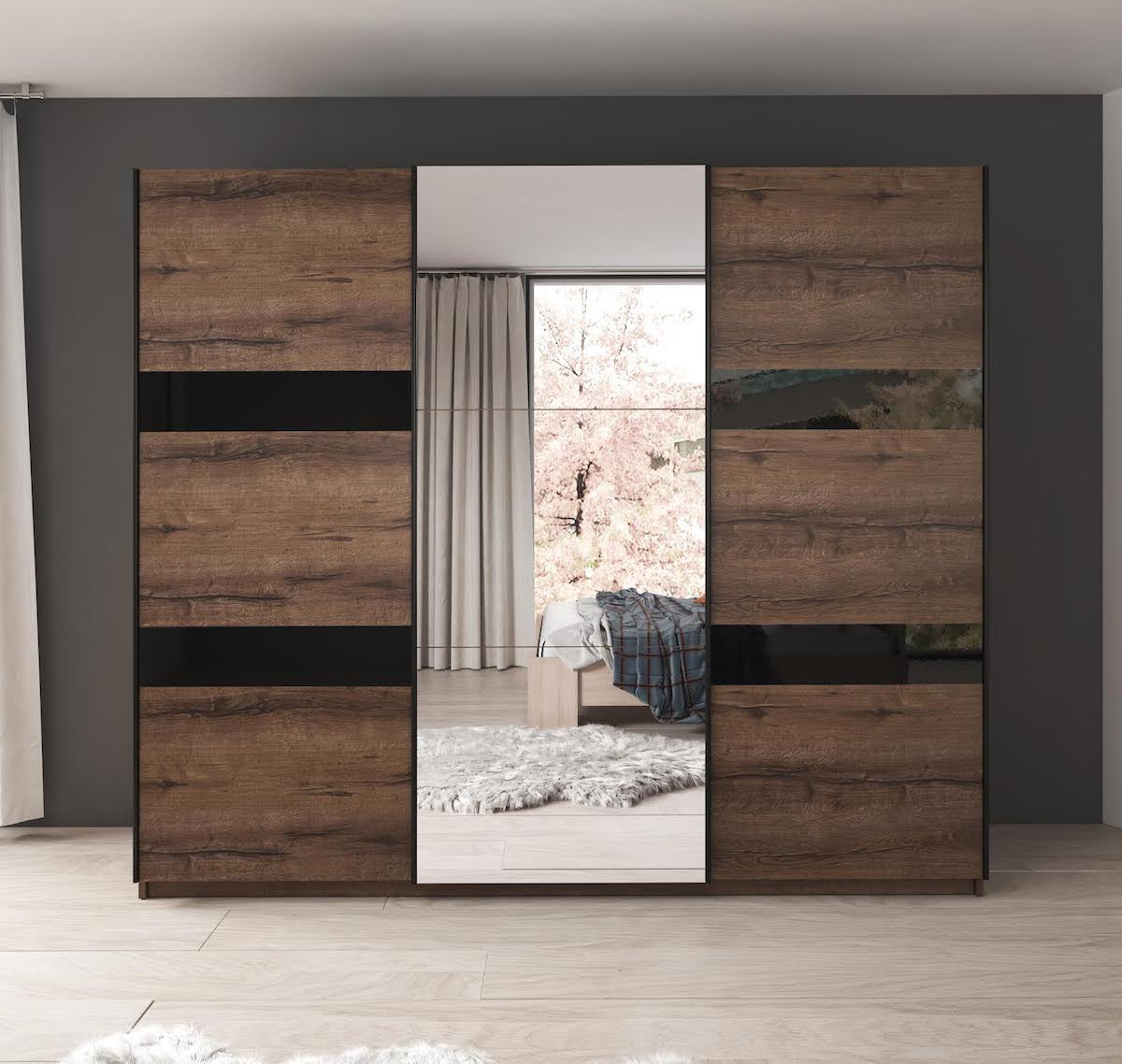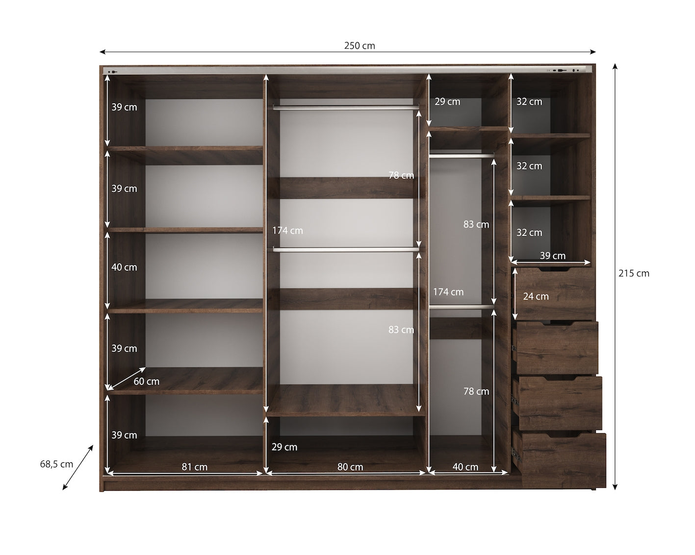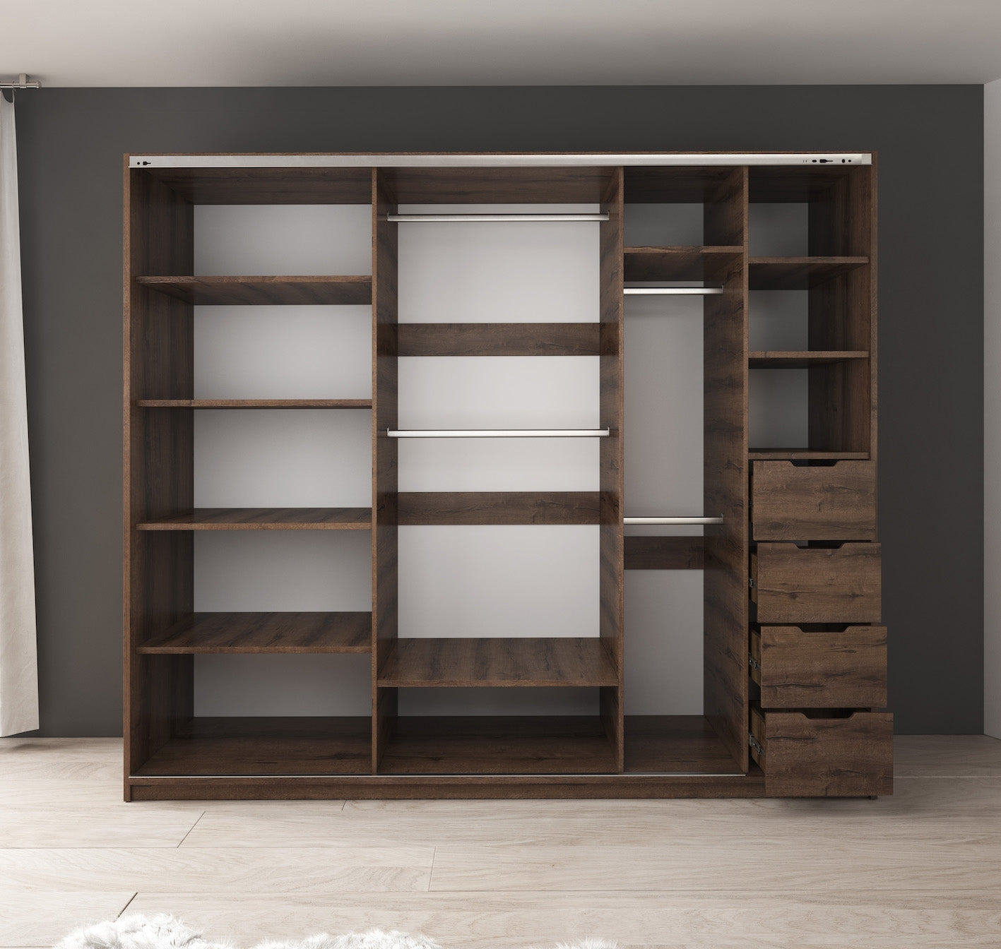 Meubella - Kledingkast Diplo - Eiken - 250 cm - Met spiegel