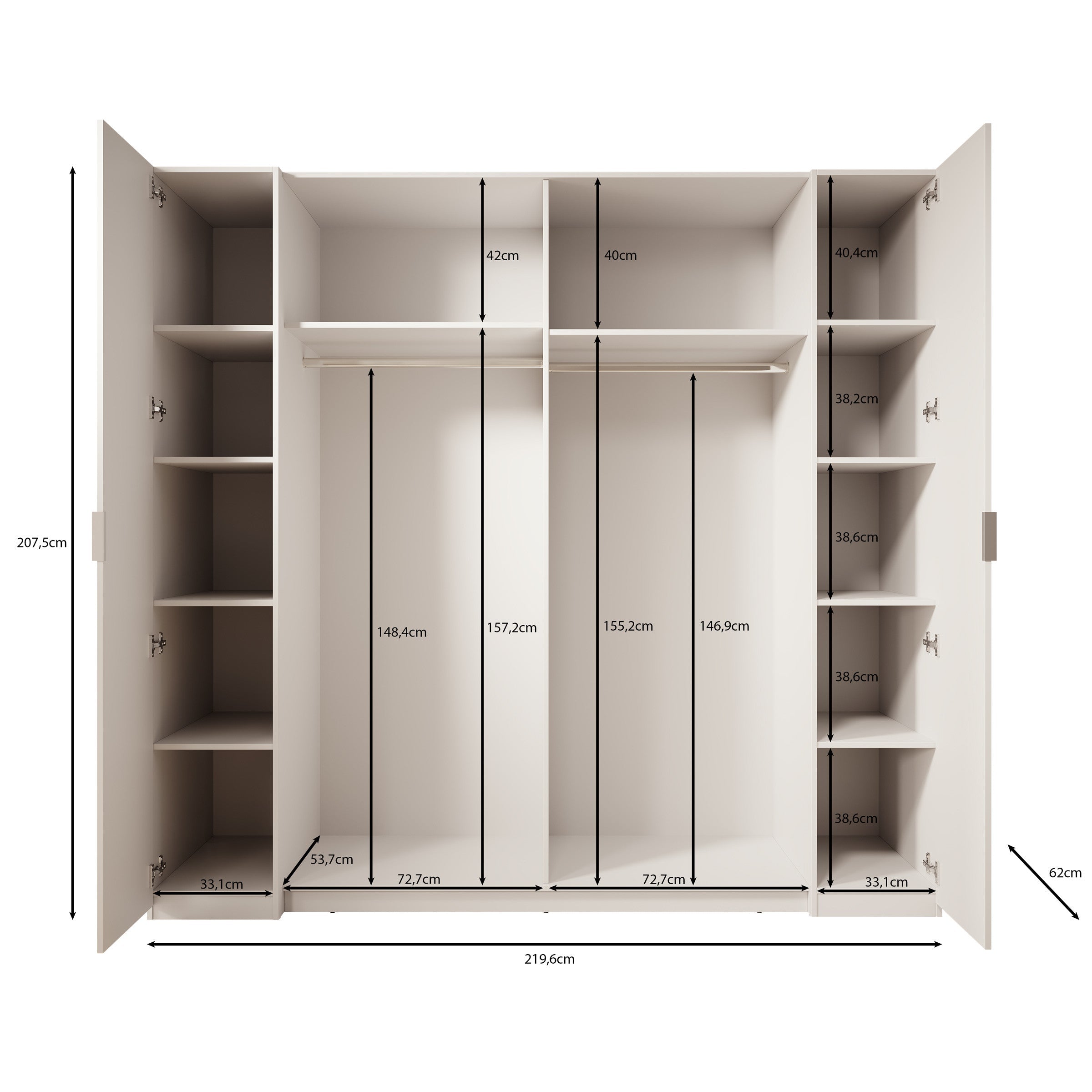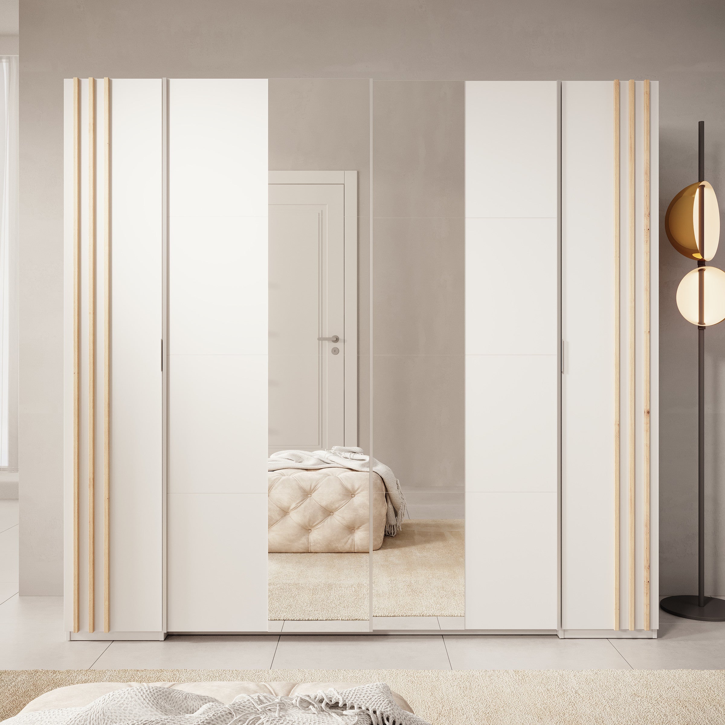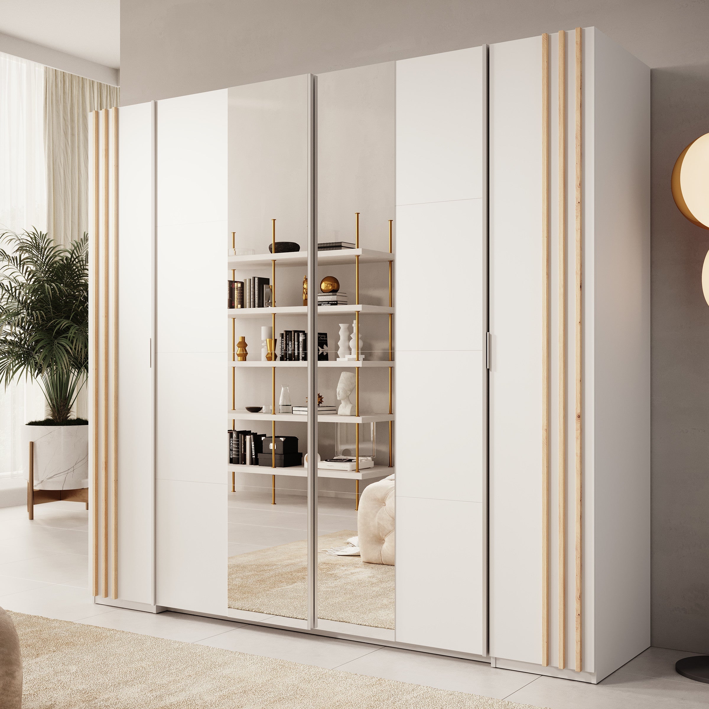 Meubella - Kledingkast Franklin - Wit - 220 cm - Met spiegel