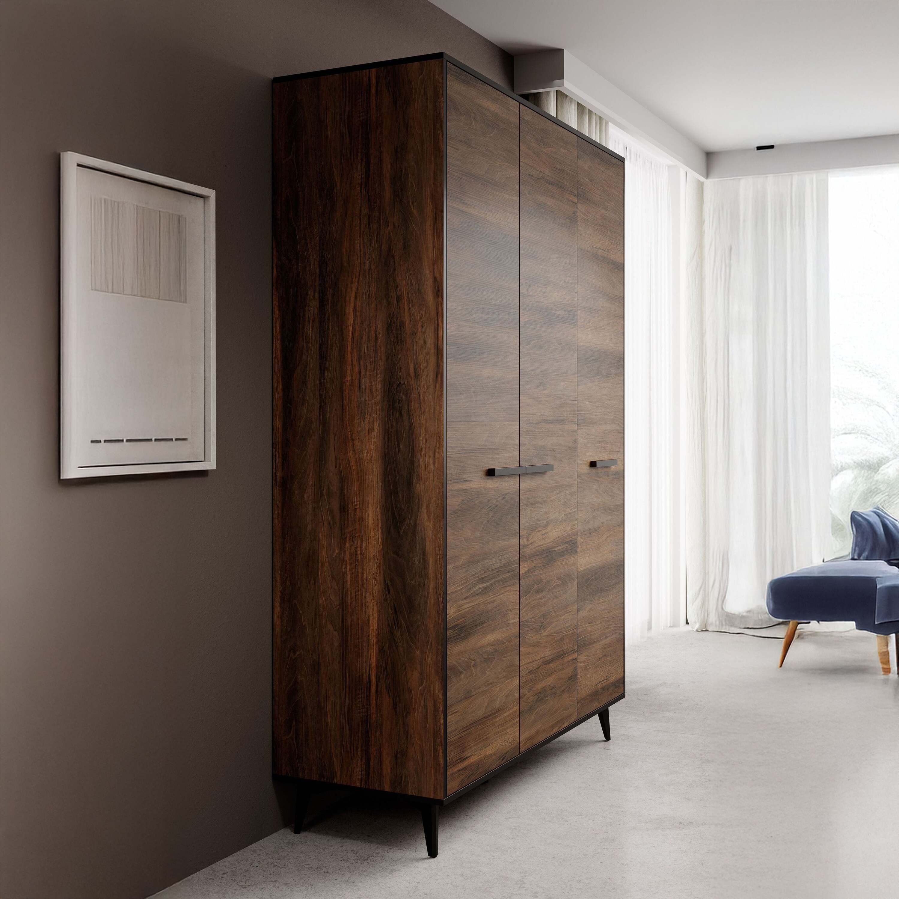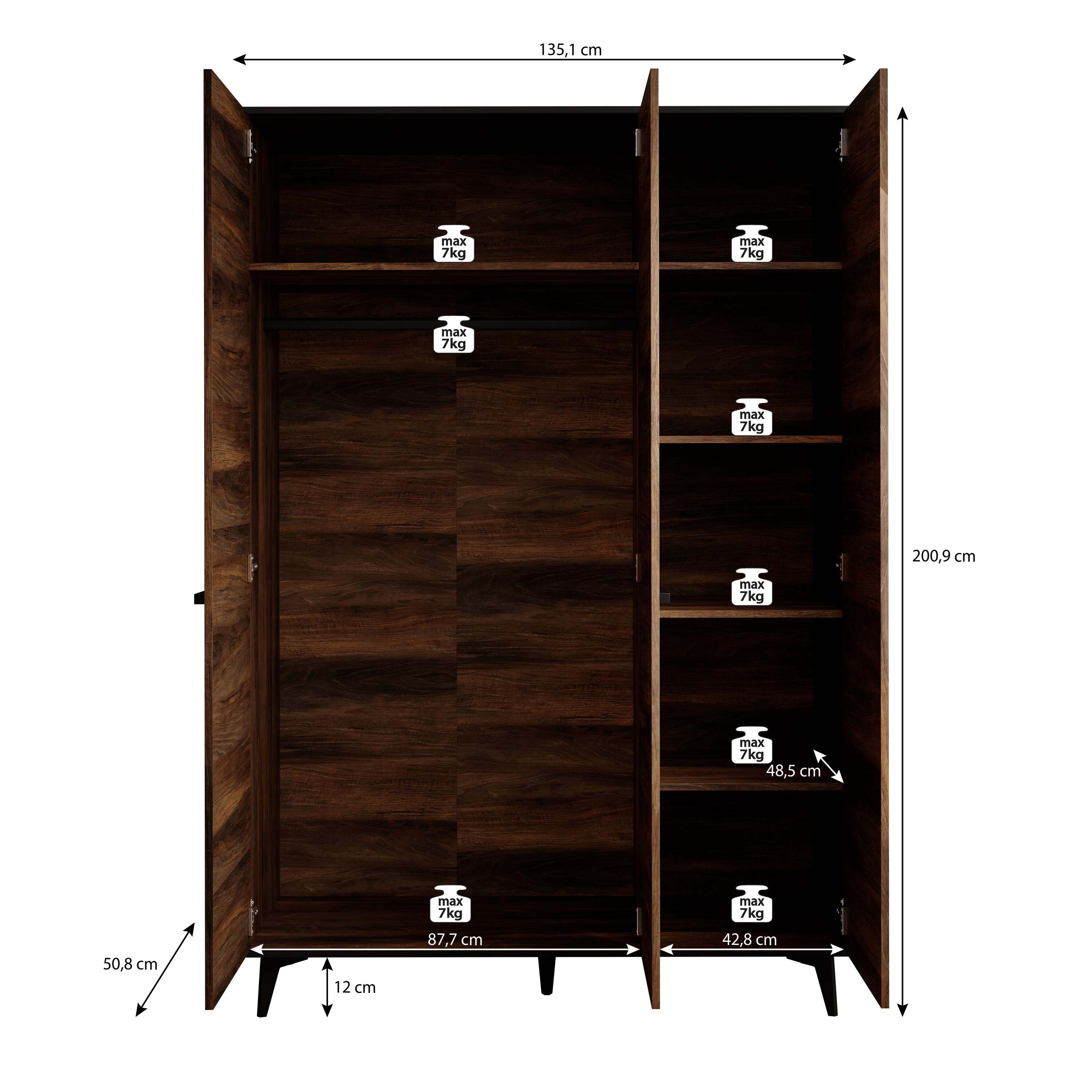 Meubella - Kledingkast Frey - Donker eiken - Zwart - 135 cm