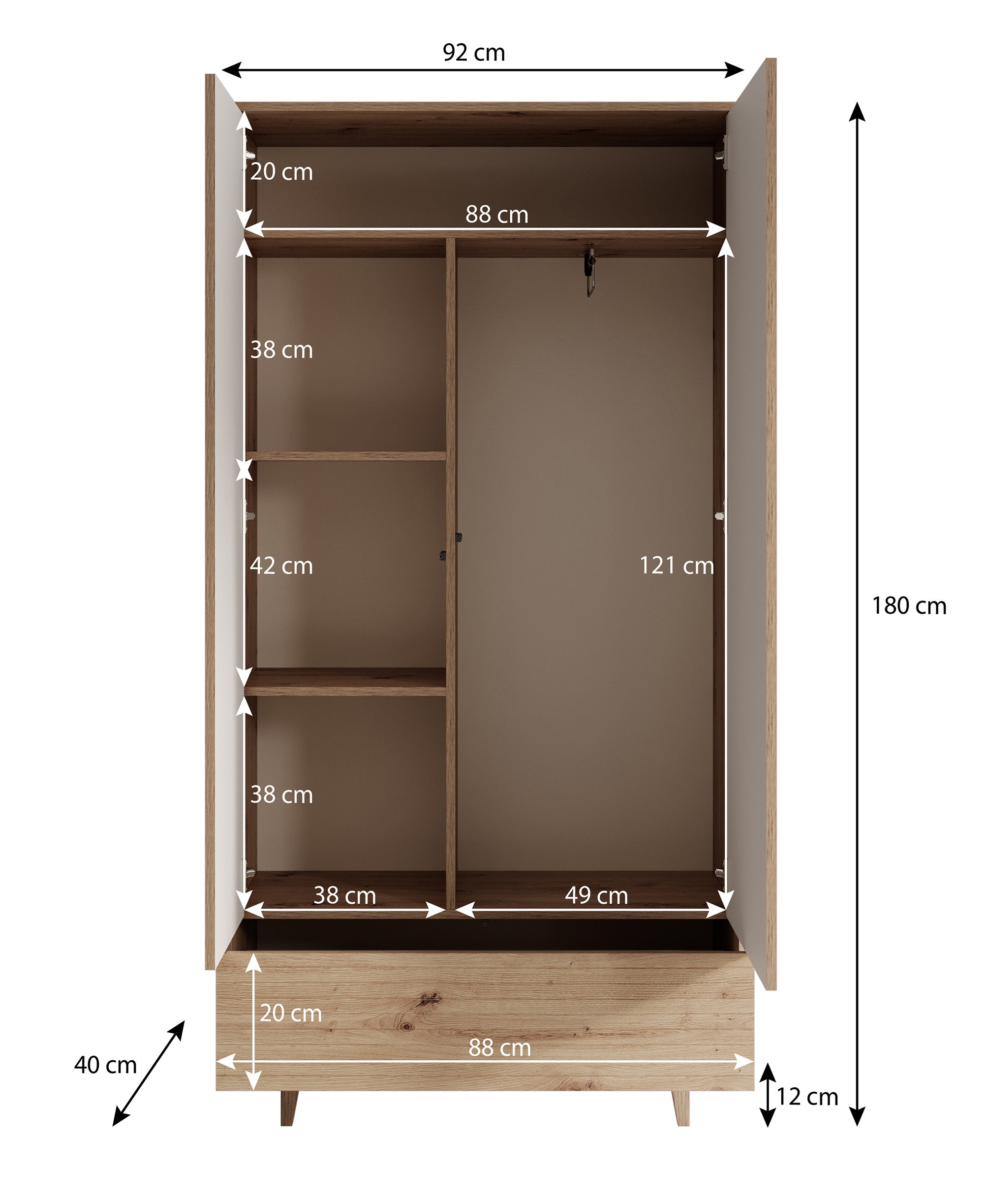 Meubella Kledingkast Fuzeta - Eiken - 92 cm