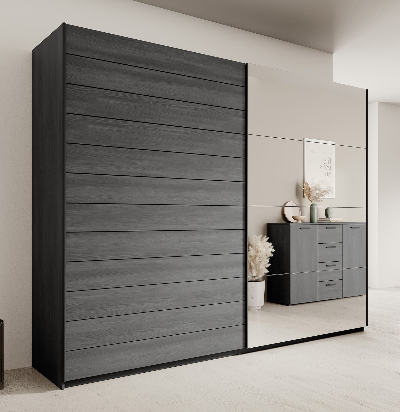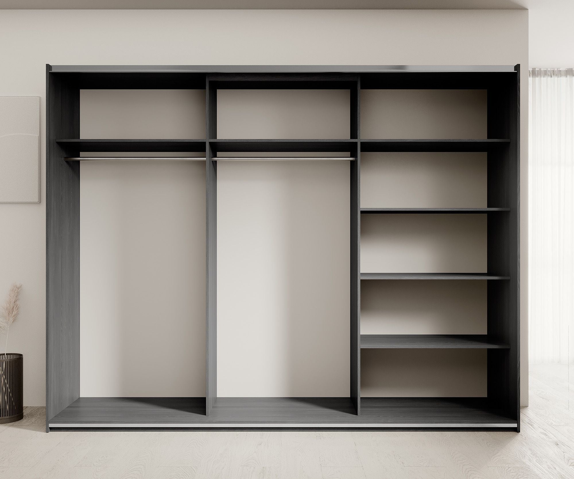 Meubella - Kledingkast Gina - Antraciet eiken - 270 cm - Met spiegel