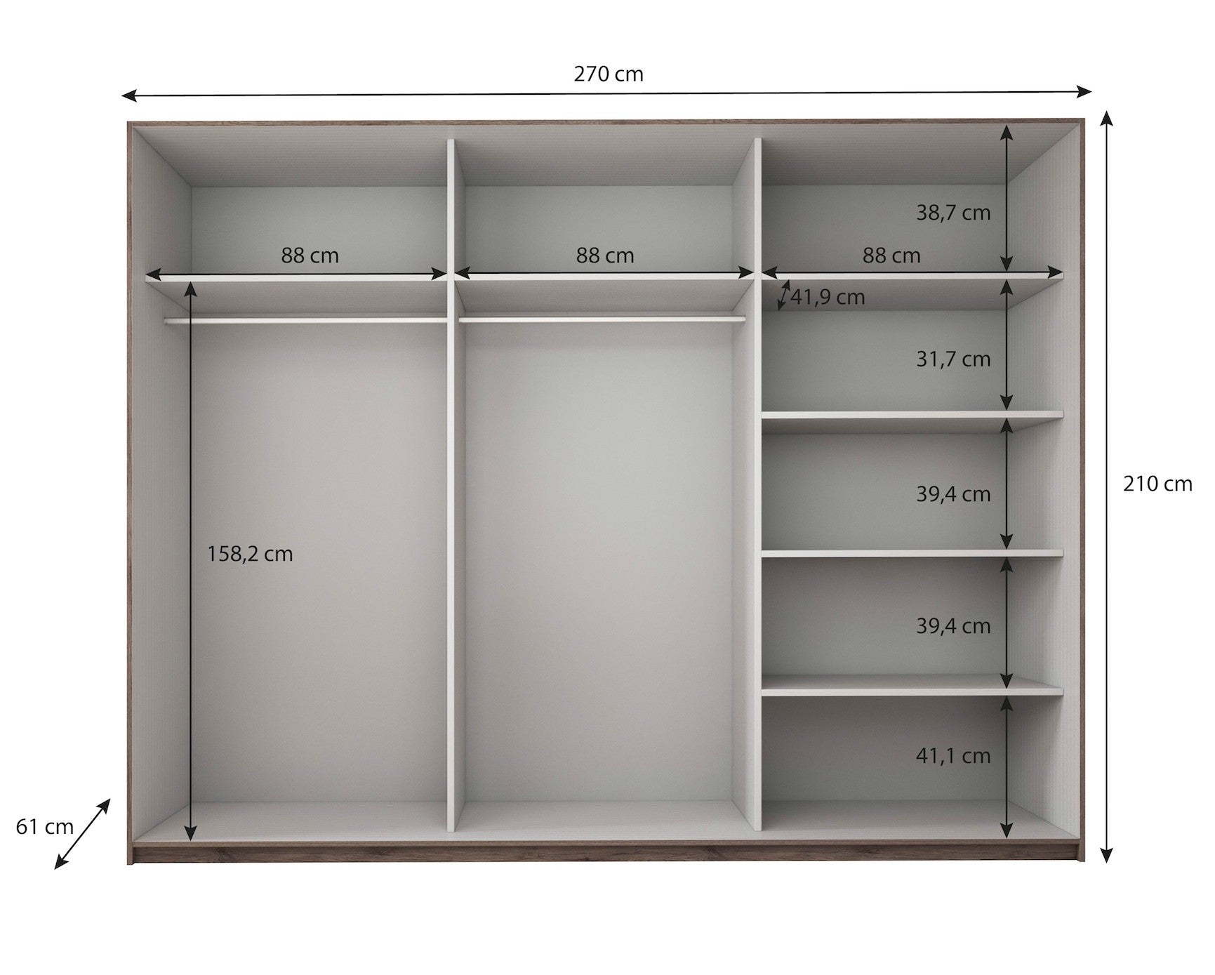 | Maat | H 210 x B 270 x D 61 cm |