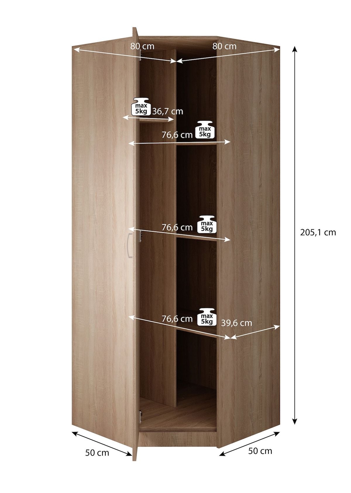 Meubella - Kledingkast Heaven 2 - Eiken - 80 cm