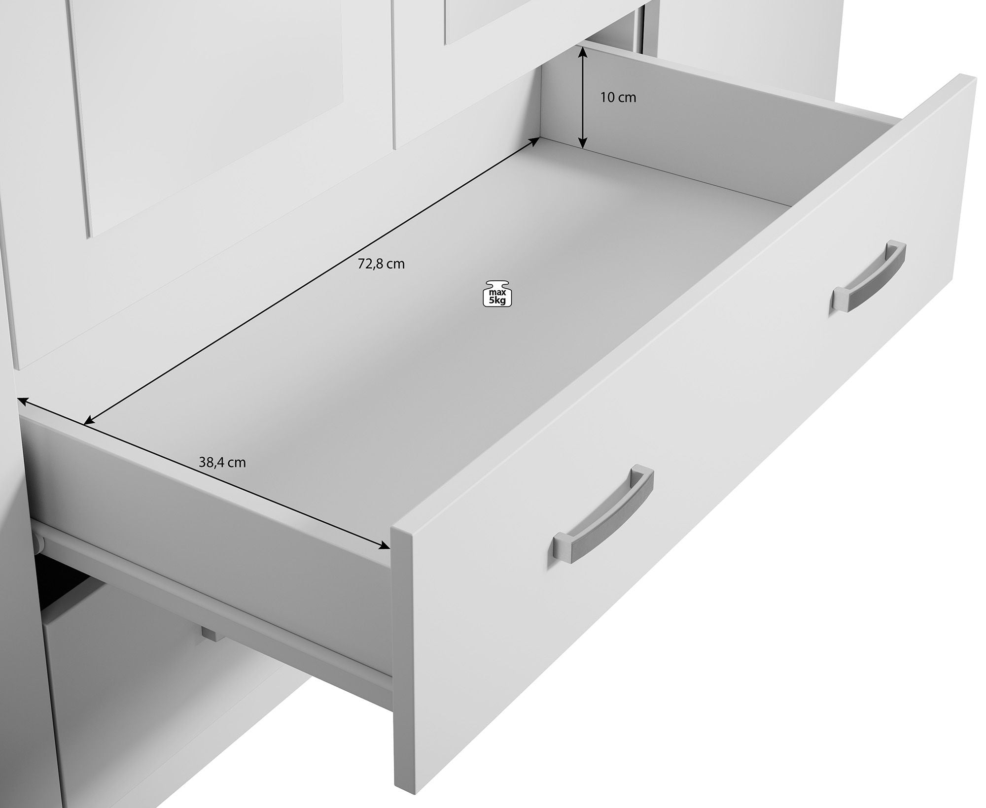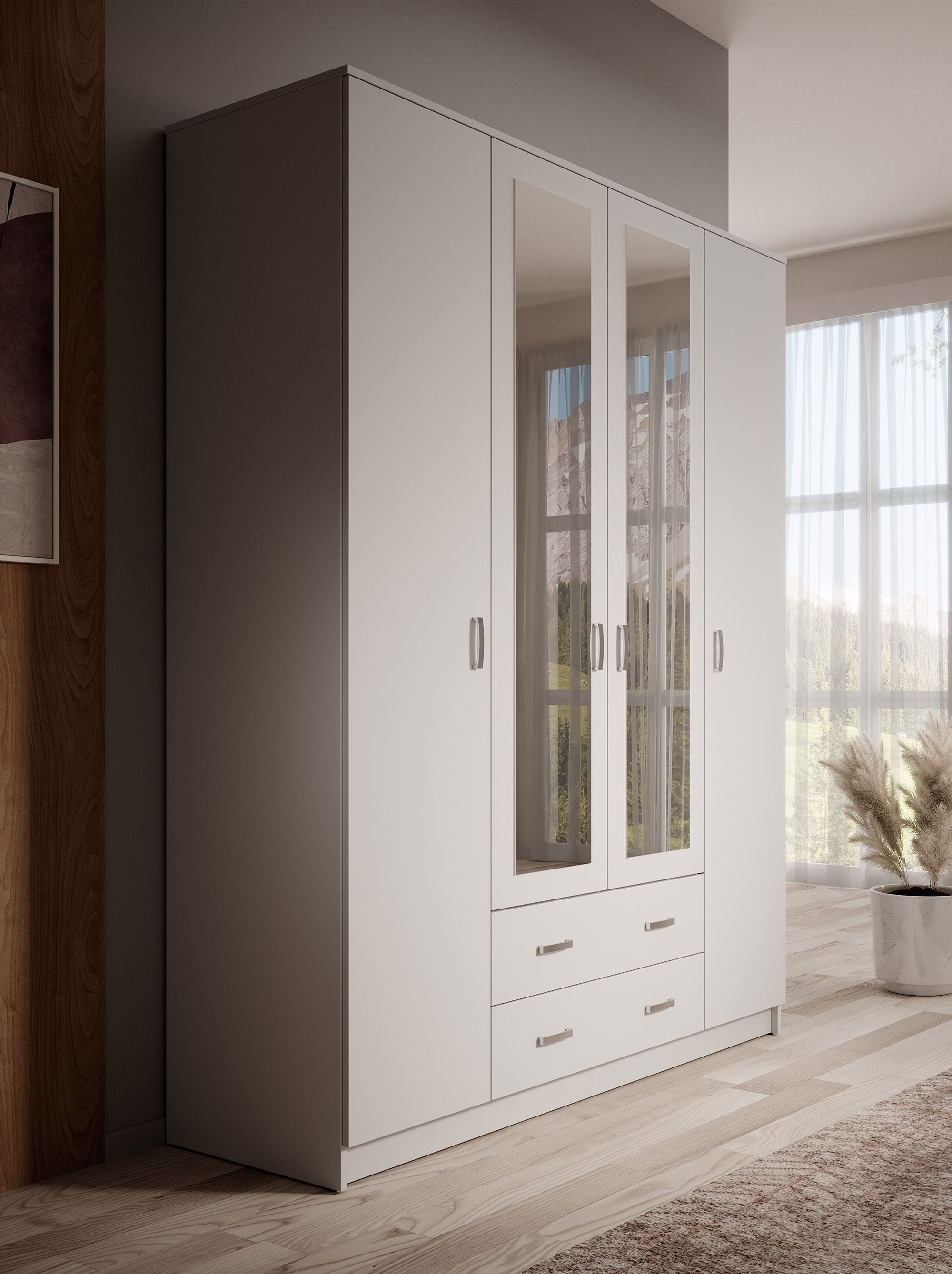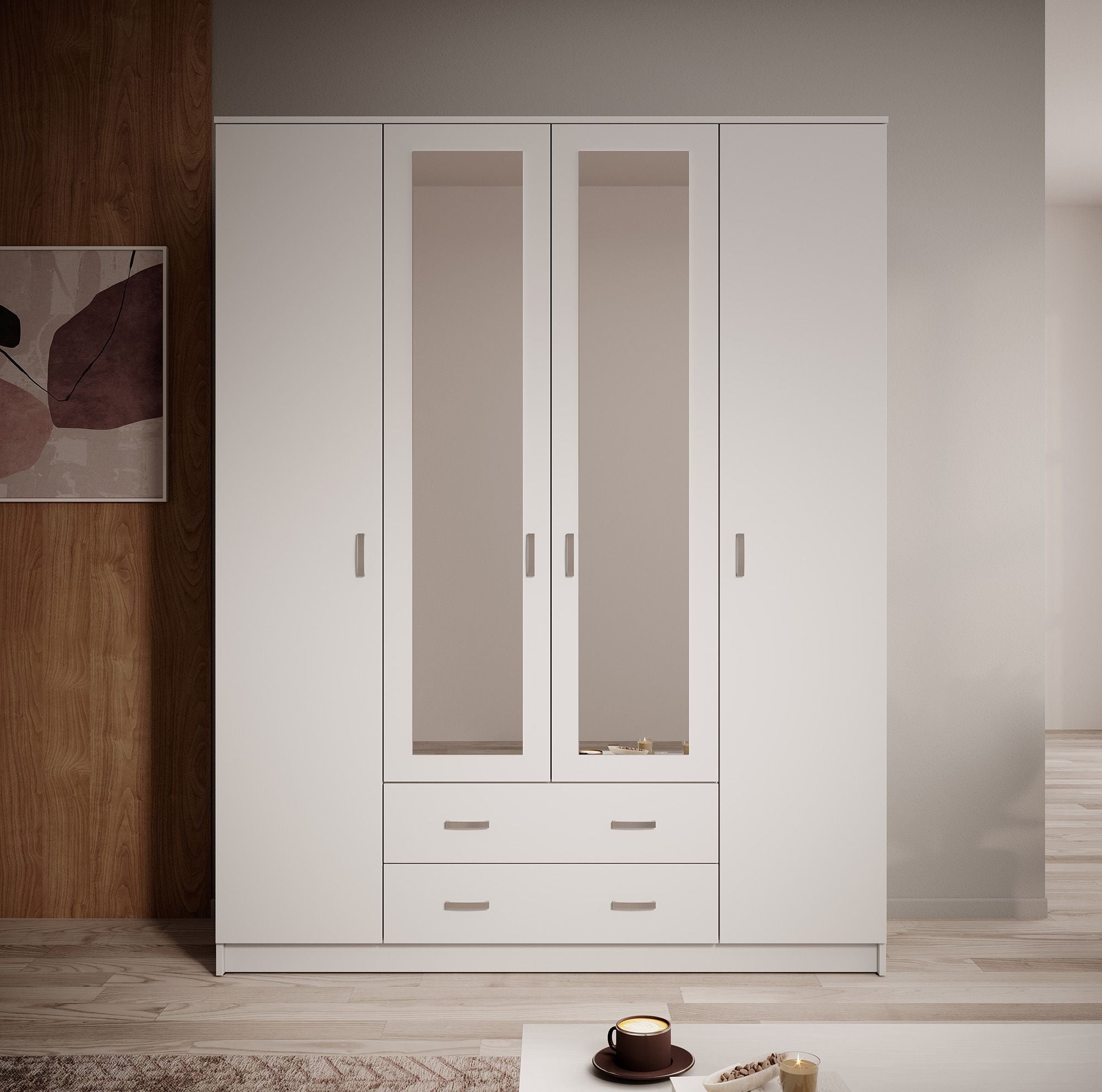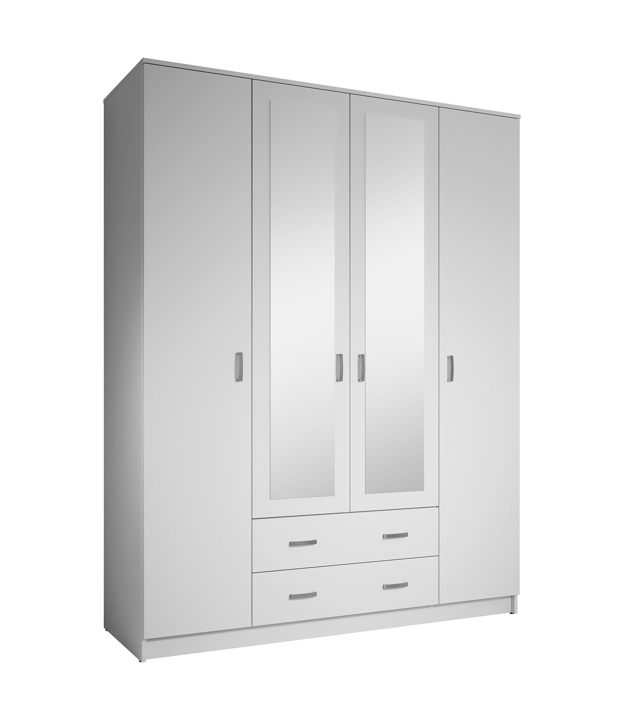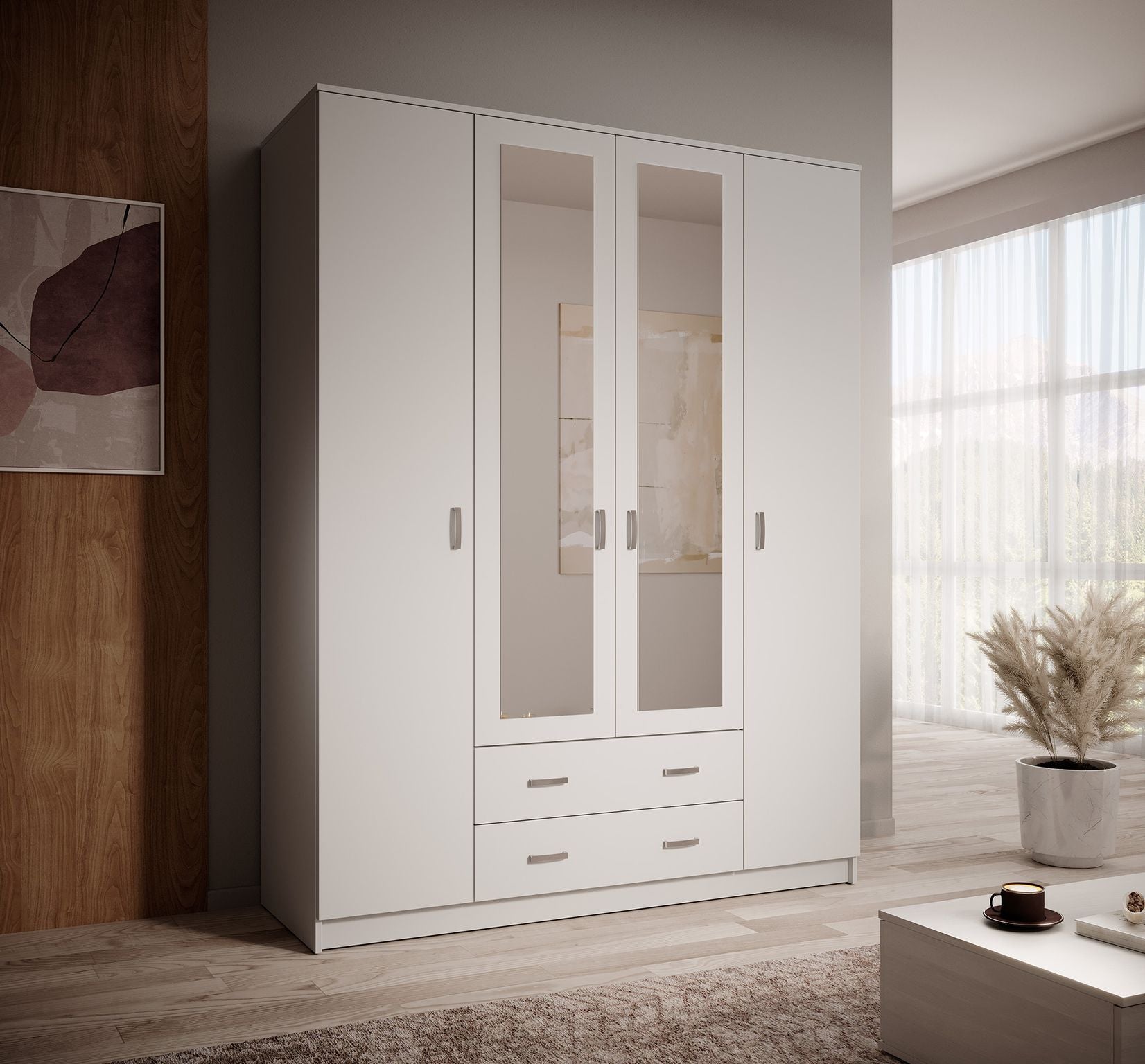 Meubella - Kledingkast Hinto - Wit - 160 cm - Met spiegel