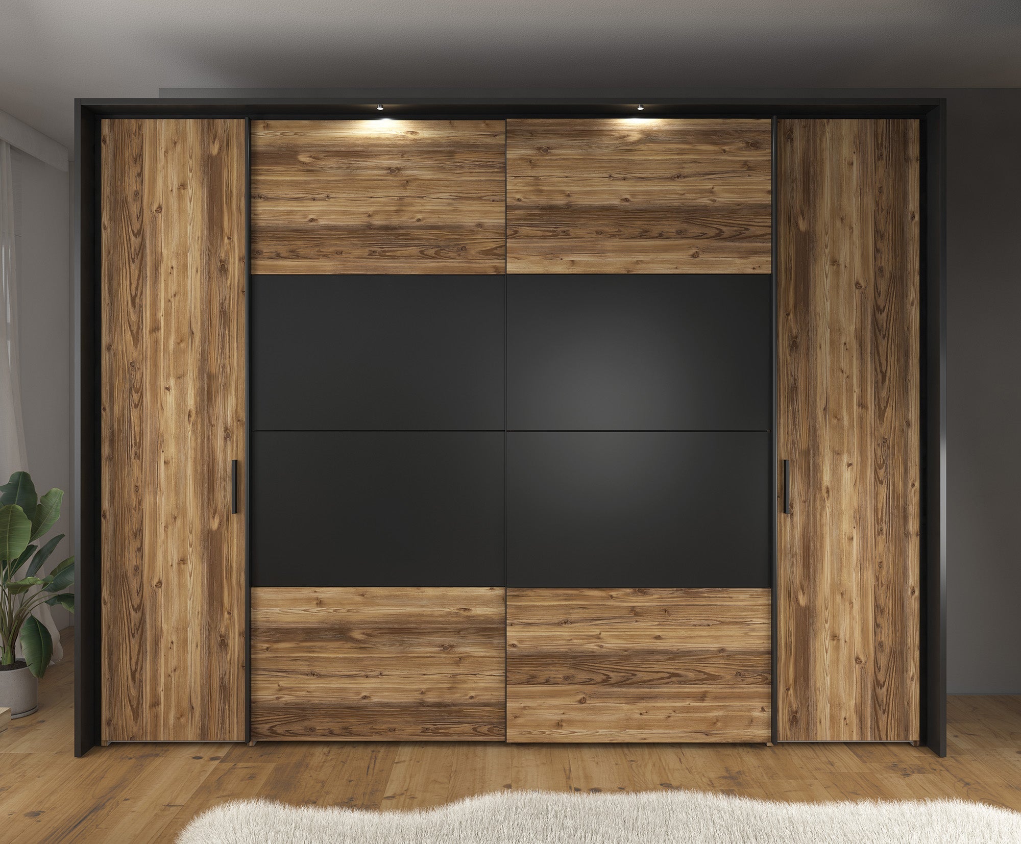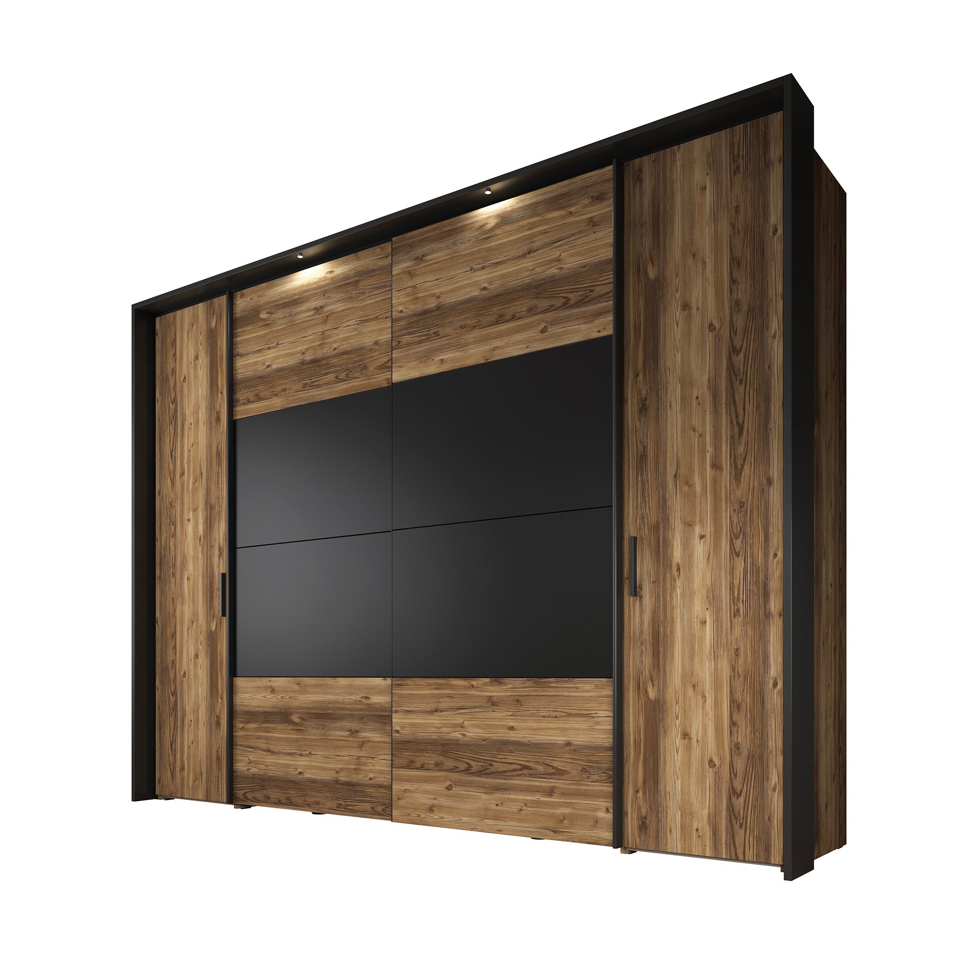 Meubella - Kledingkast Jacob - Zwart - Eiken - 280 cm
