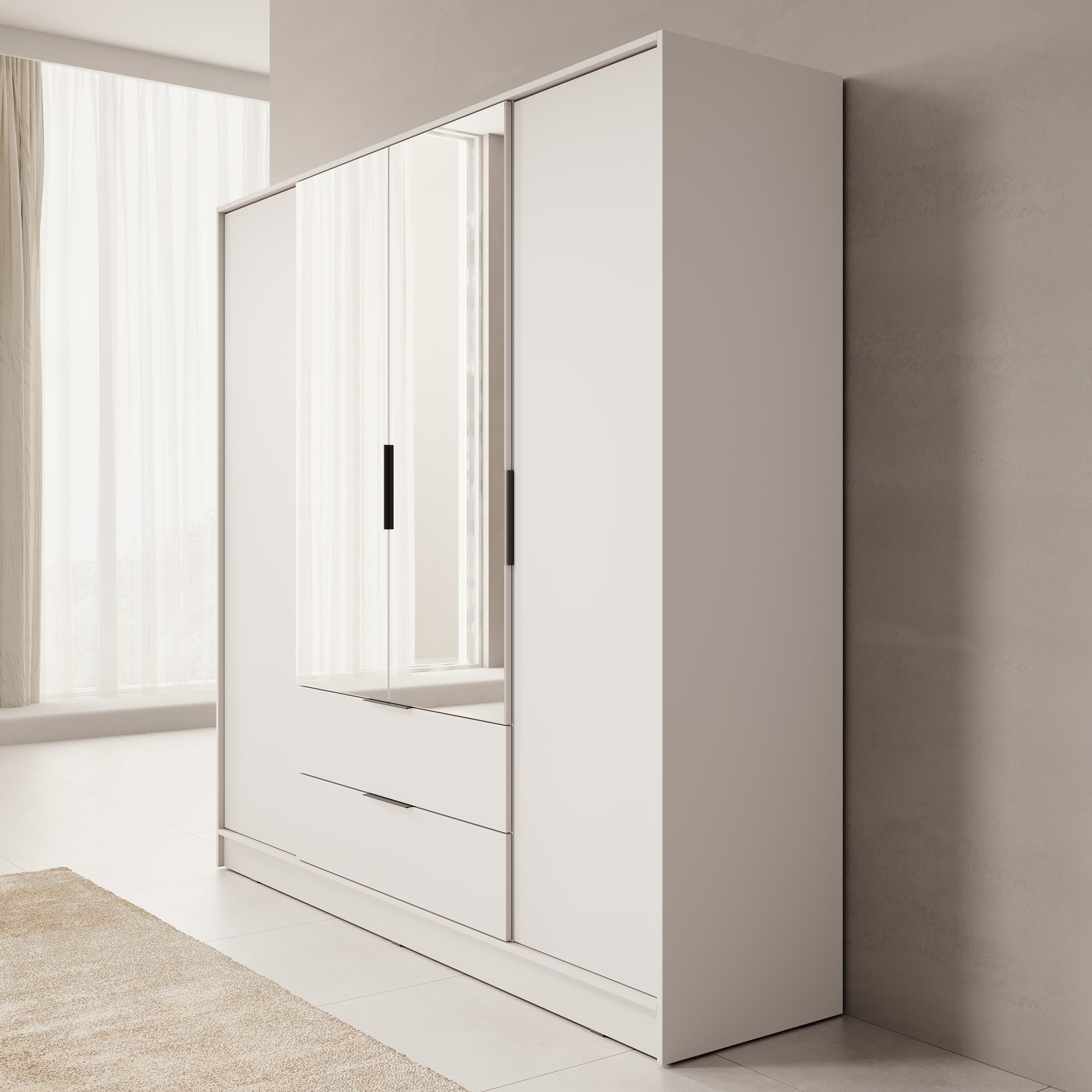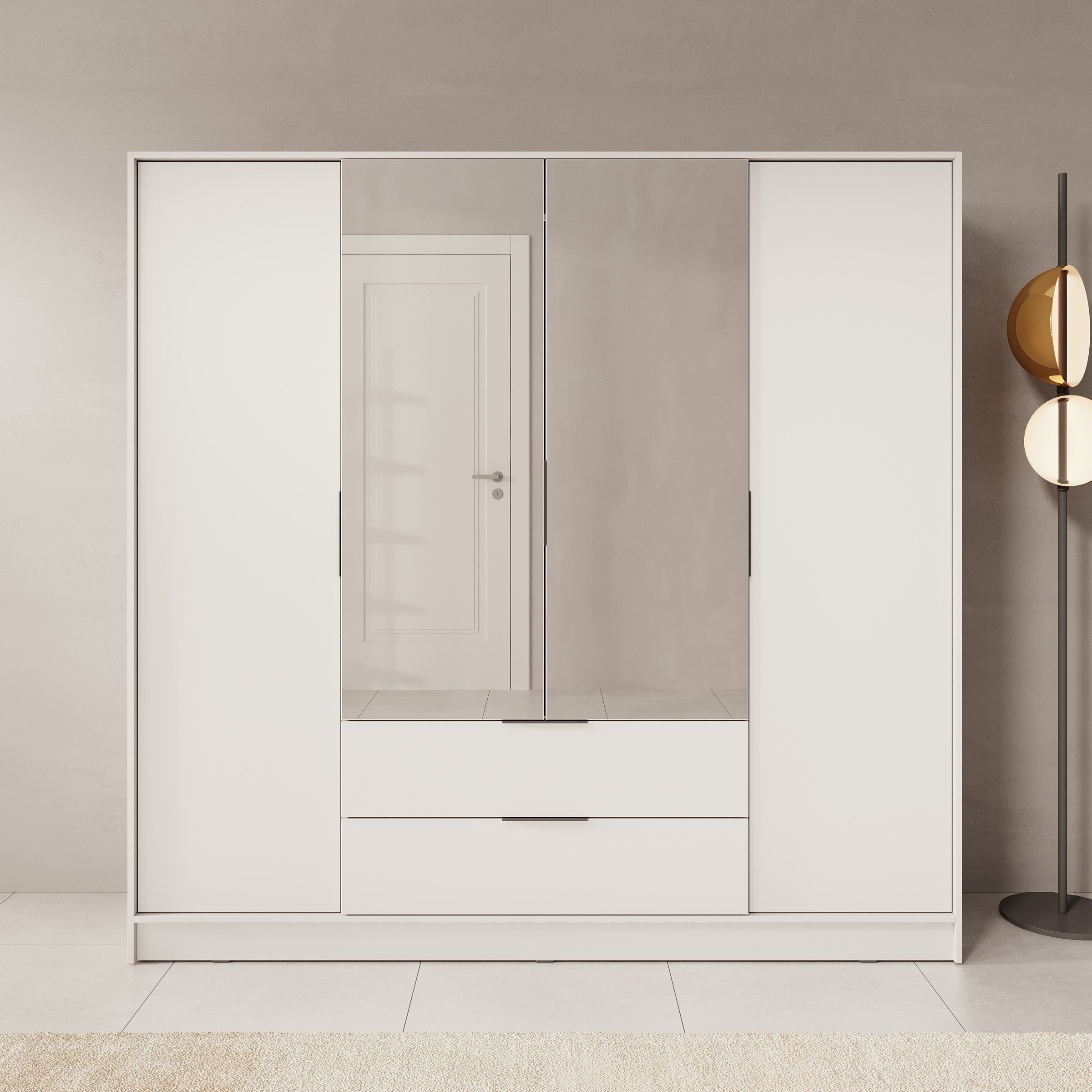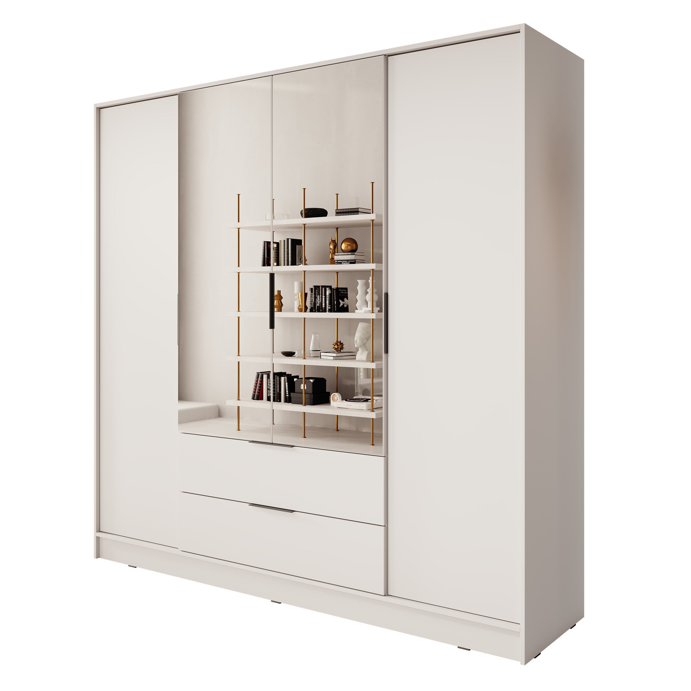 Meubella - Kledingkast Kaelum - Beige - 206 cm - Met spiegel