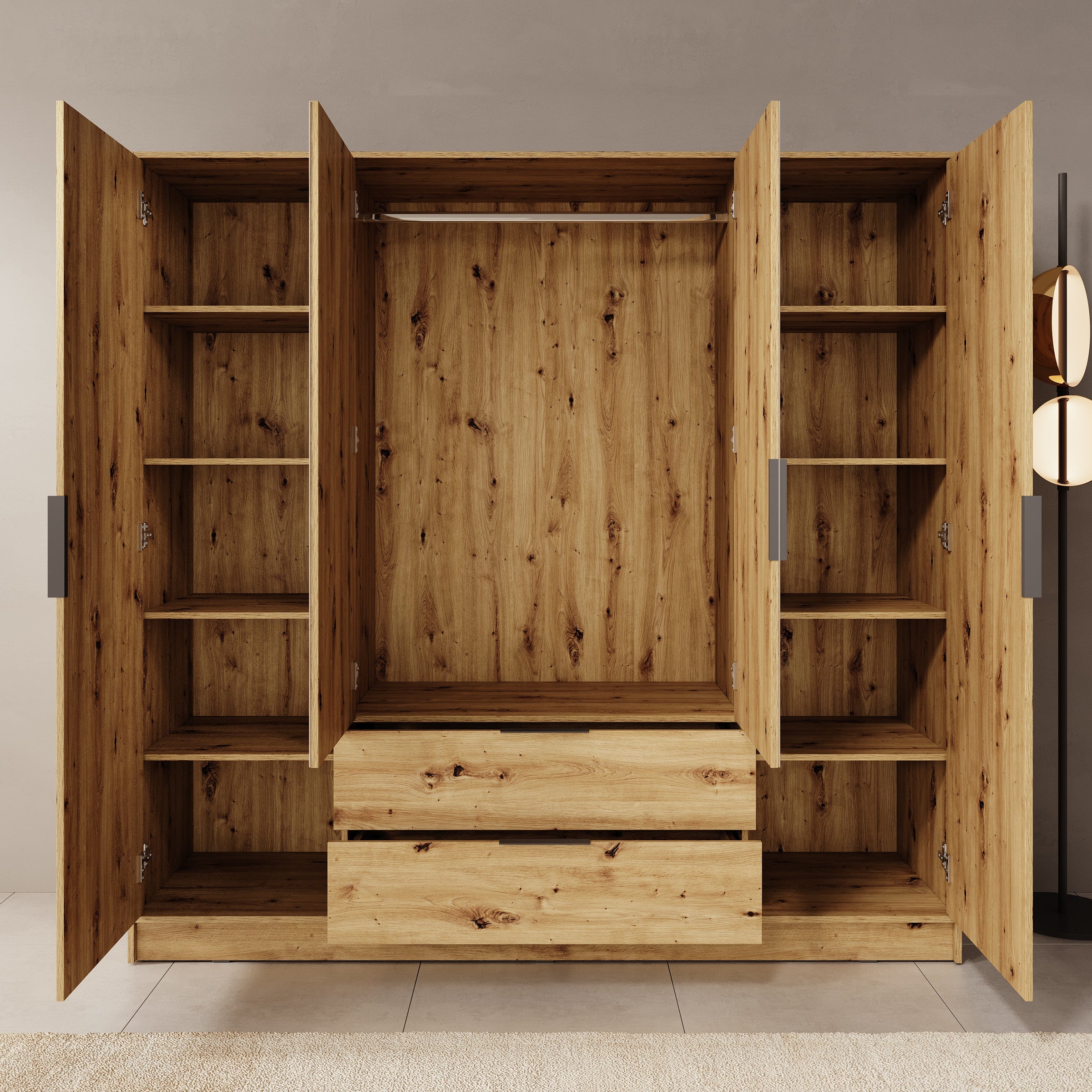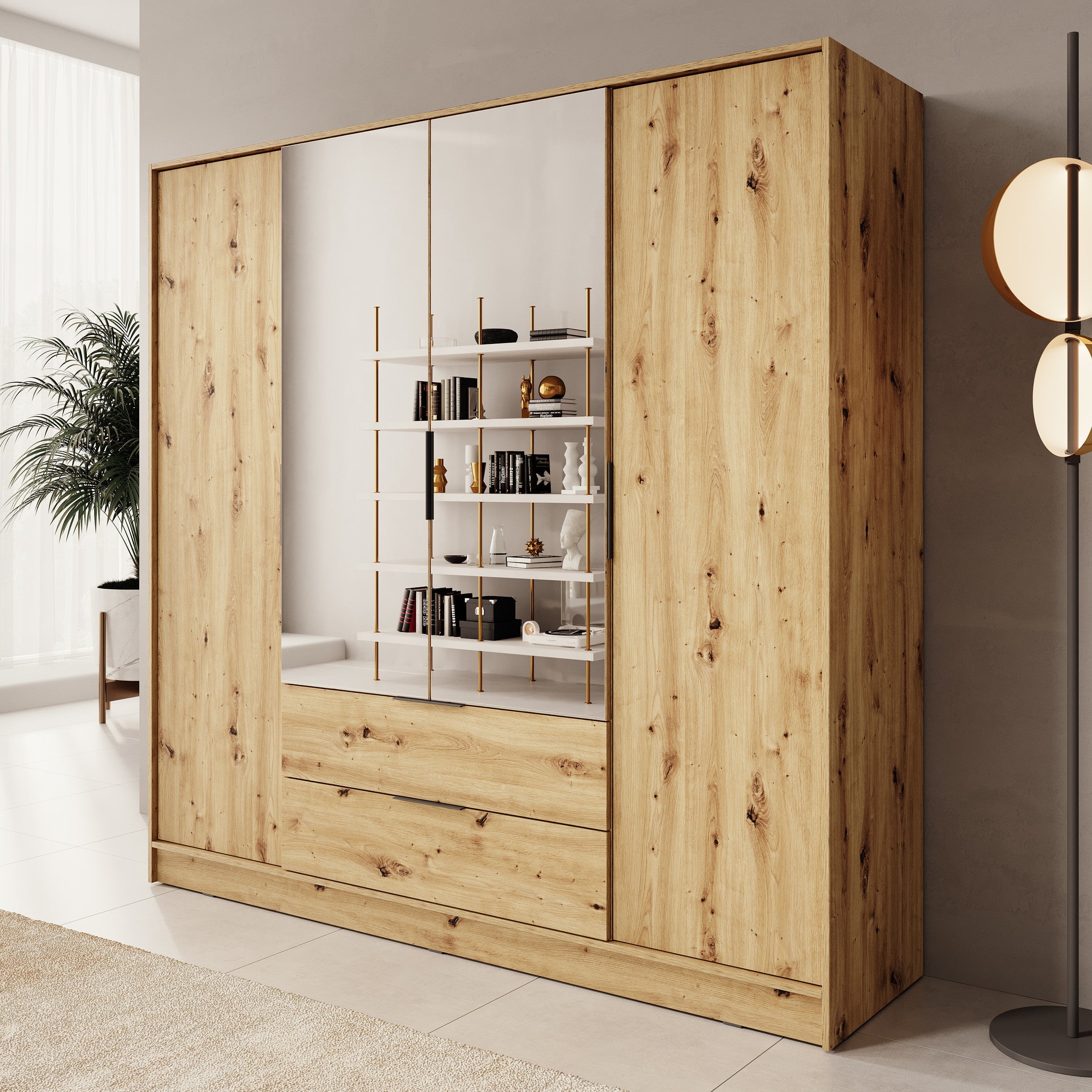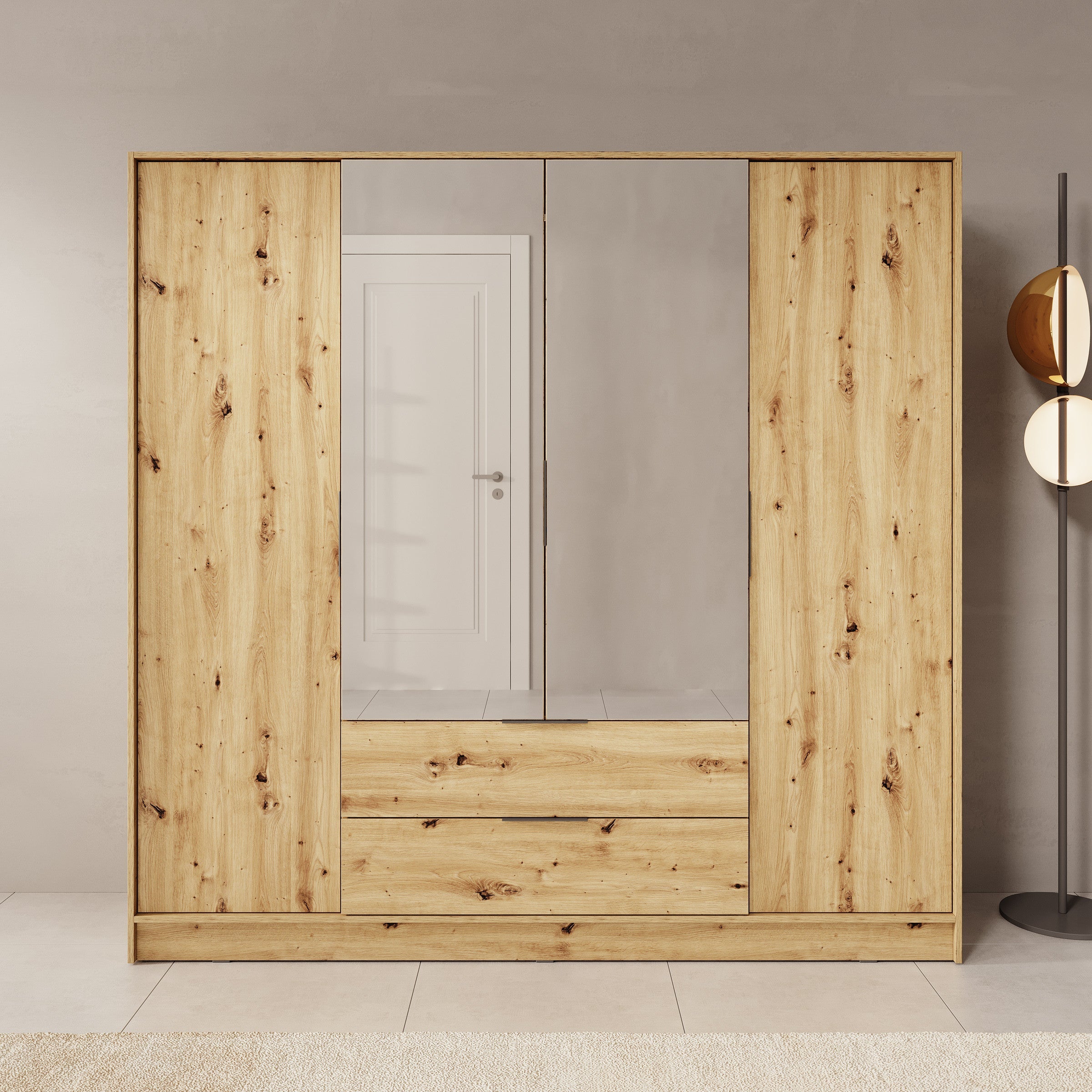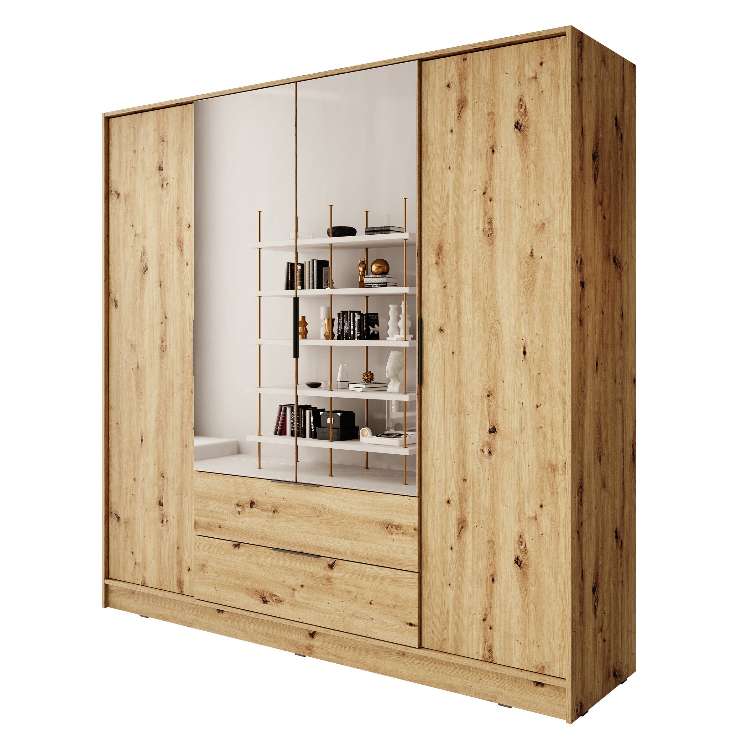 Meubella - Kledingkast Kaelum - Eiken - 206 cm - Met spiegel