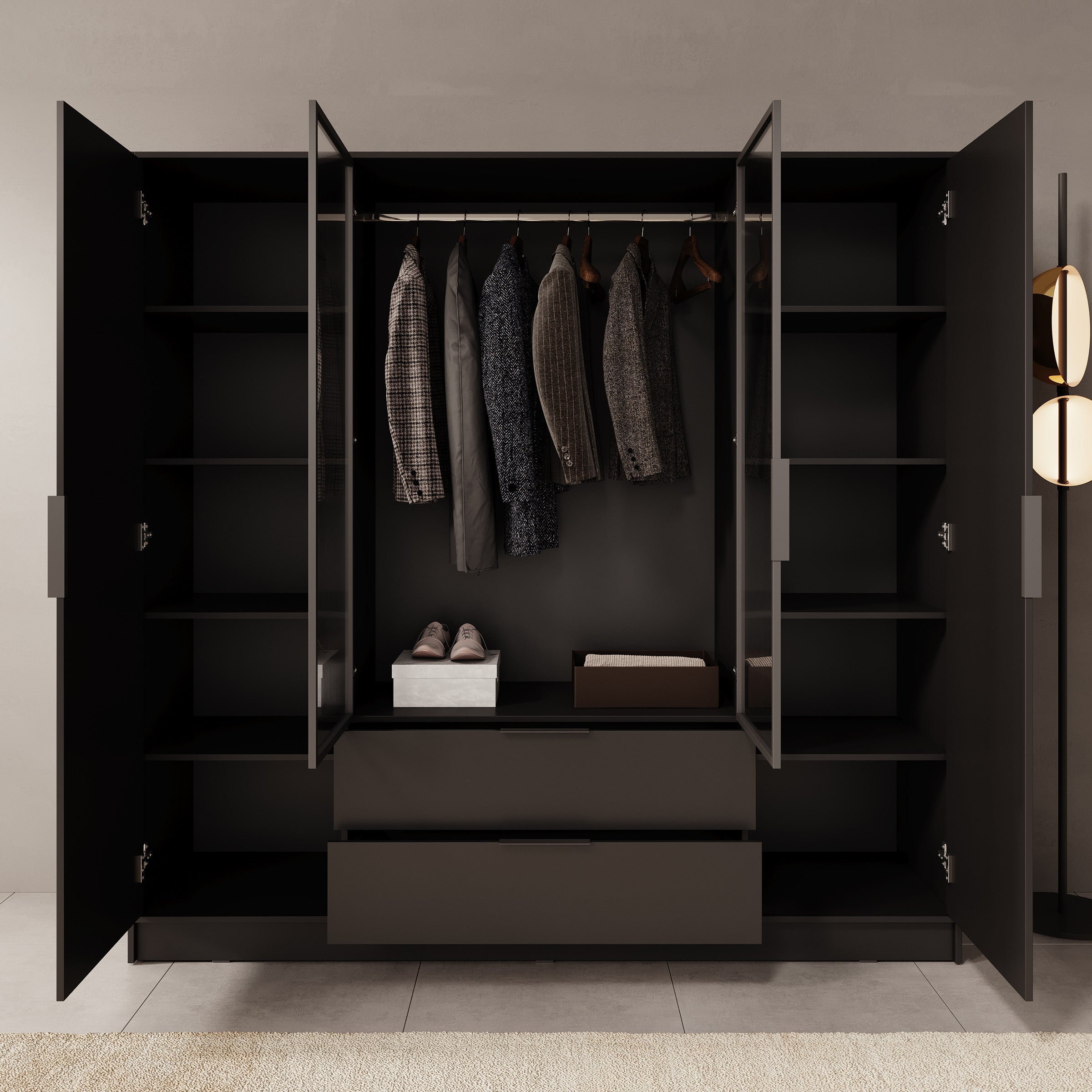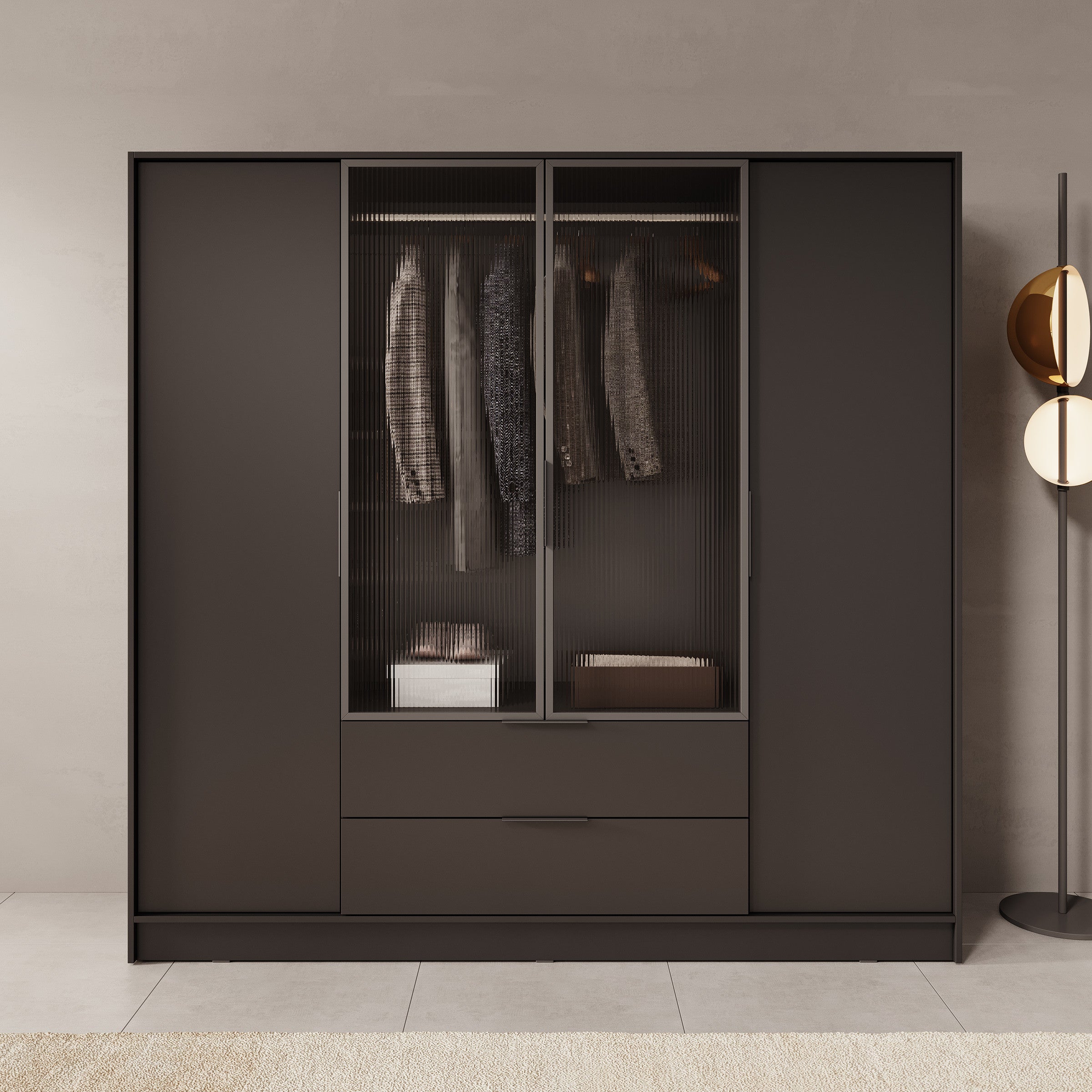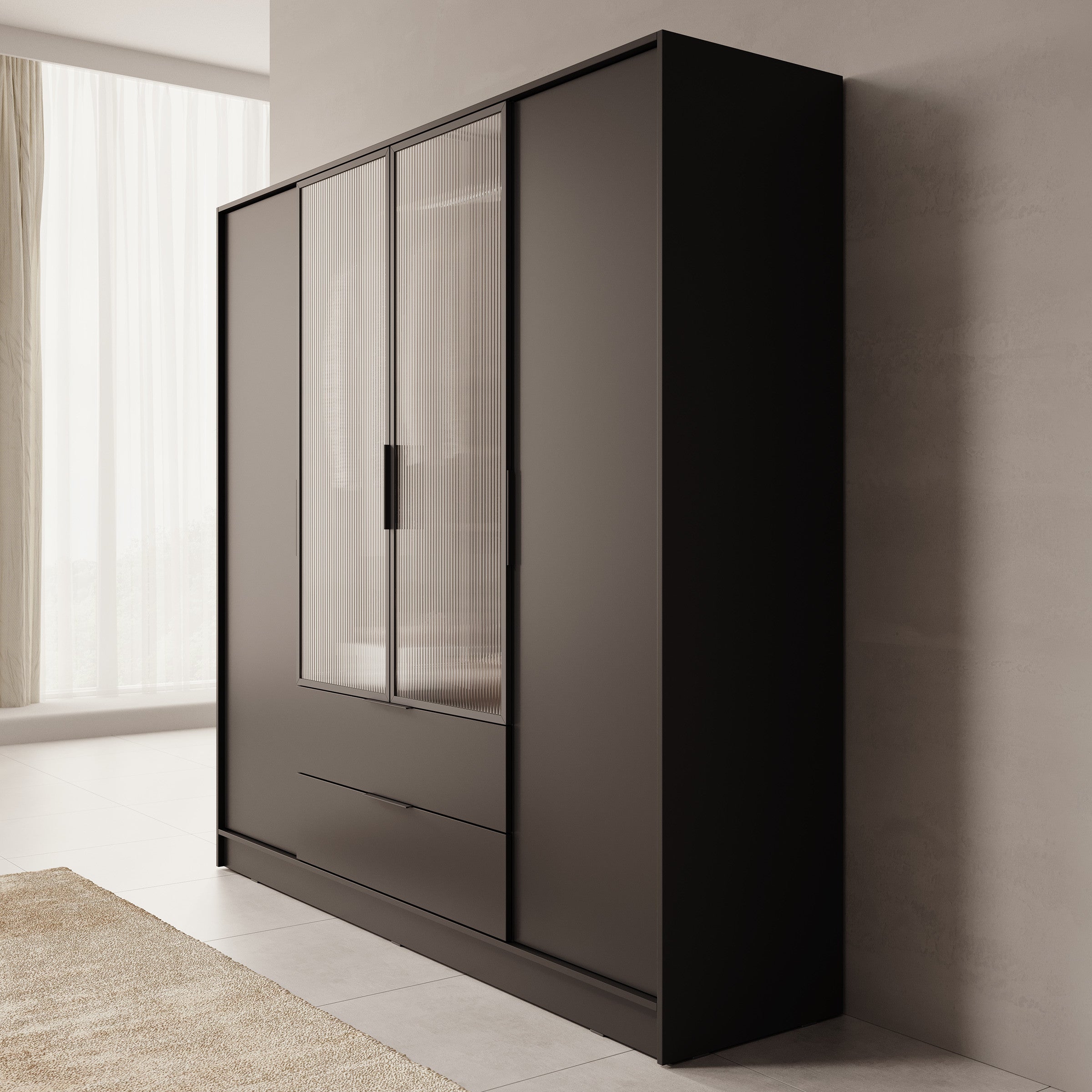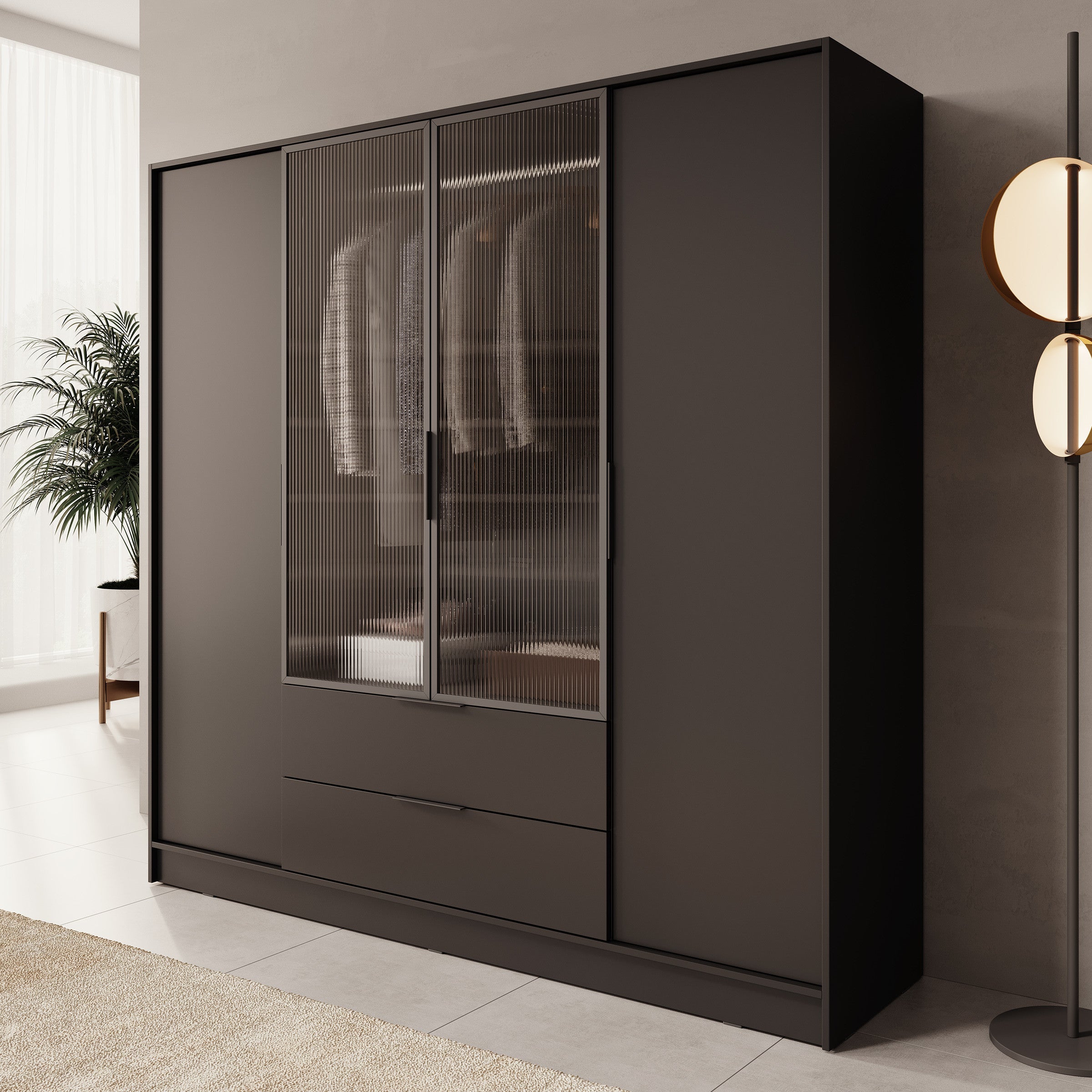 - Middelste deuren gemaakt van gegroefd glas