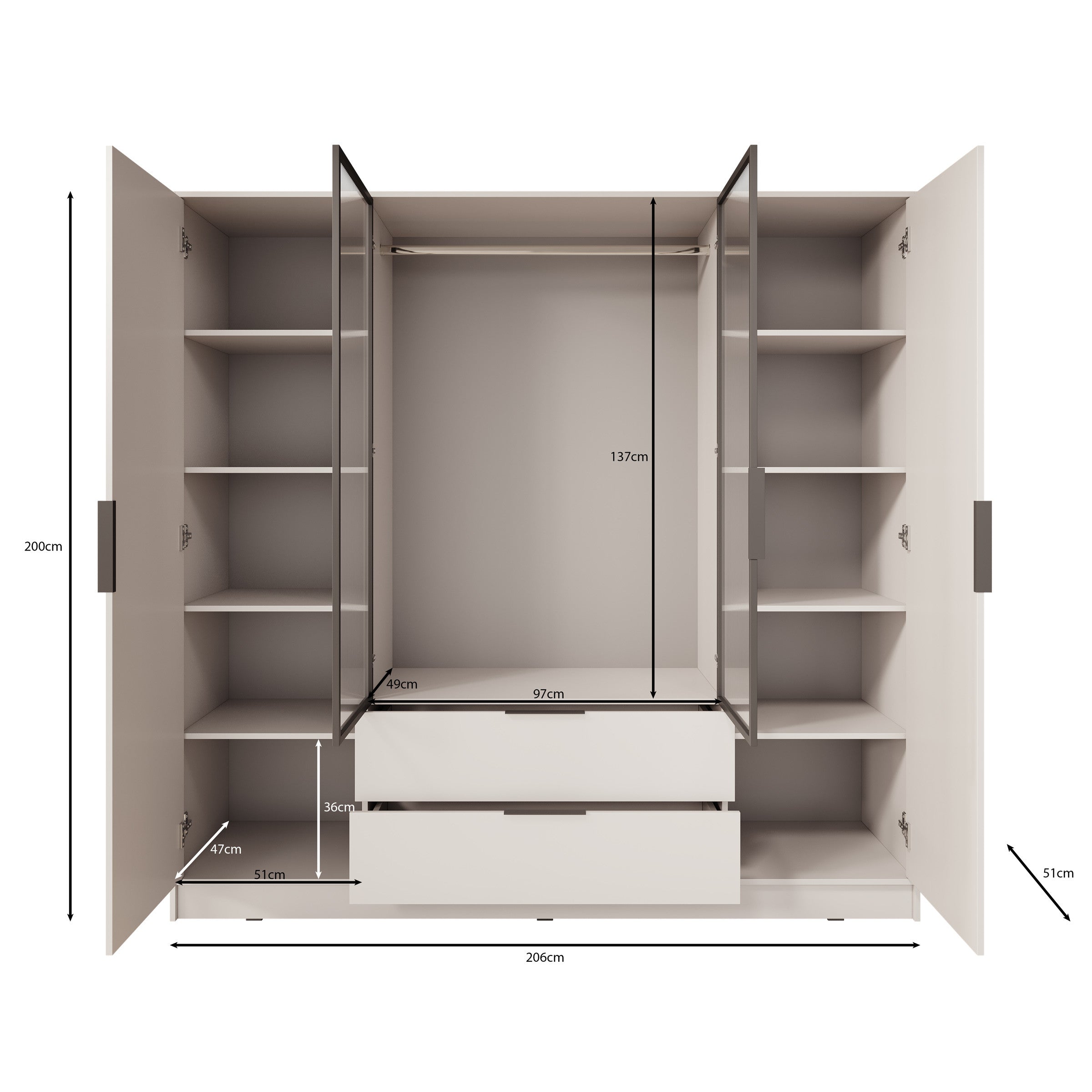 | Maat | H 200 x B 206 x D 51 cm |