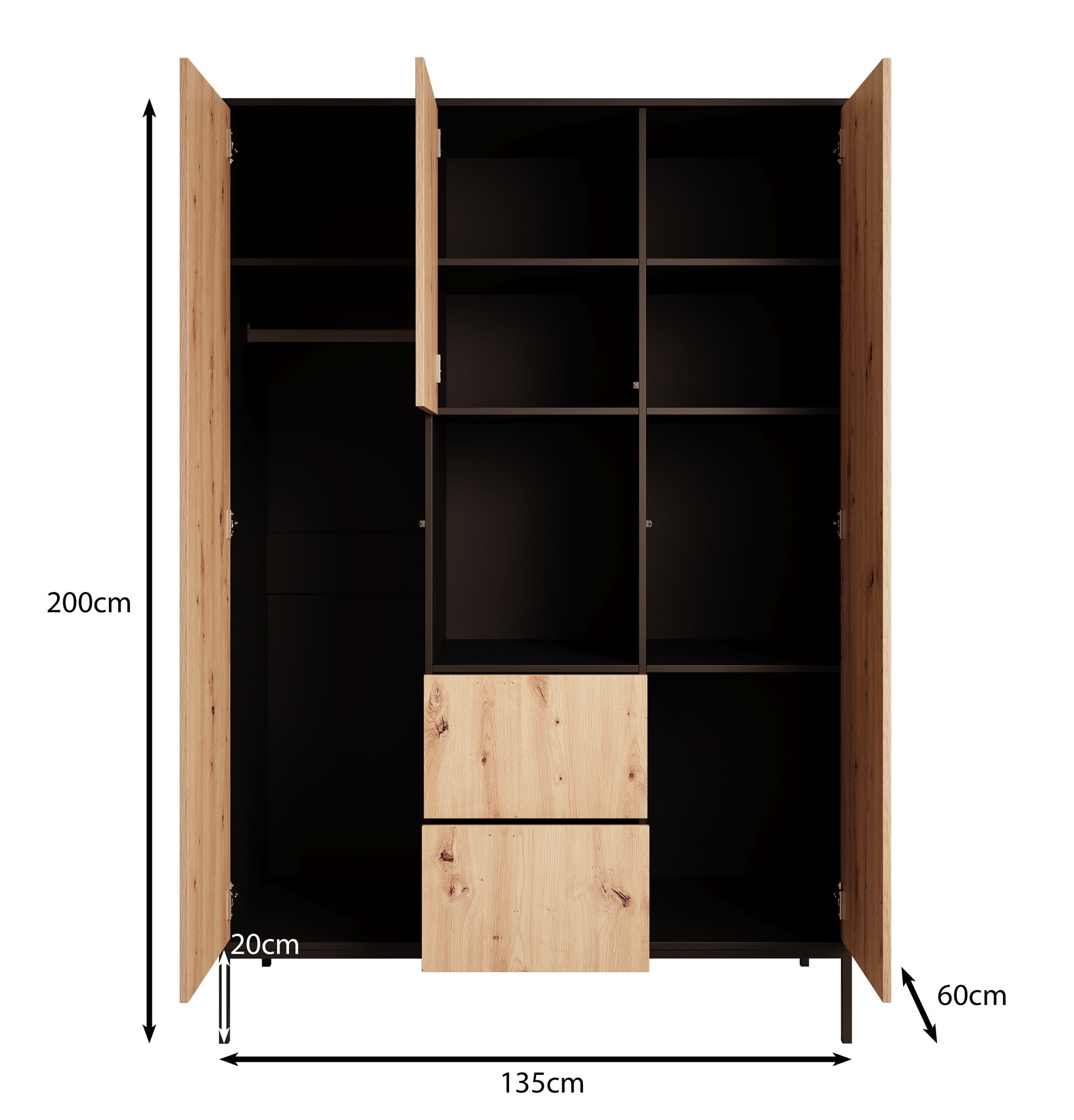 Meubella - Kledingkast Lagos - Eiken - 135 cm