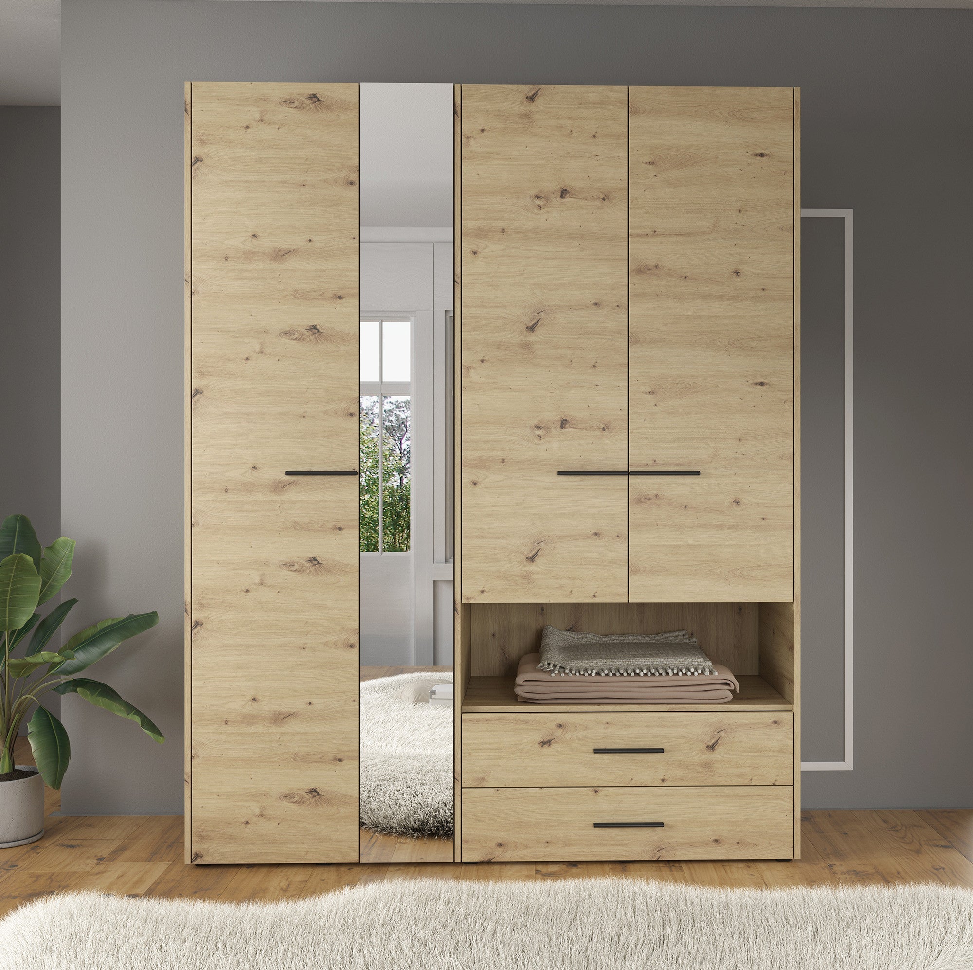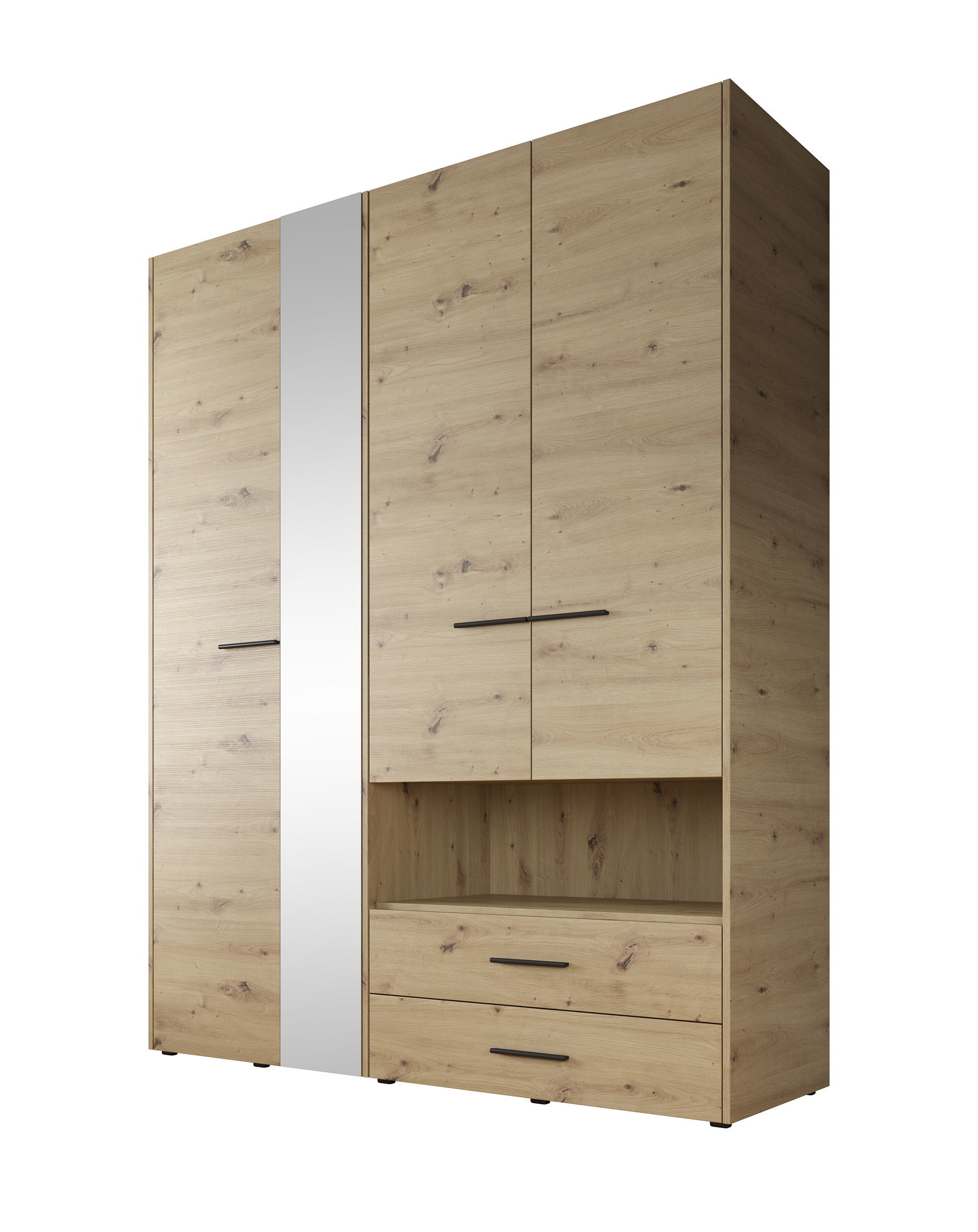 Meubella - Kledingkast Laura - Eiken - Zwart - 161 cm - Met spiegel