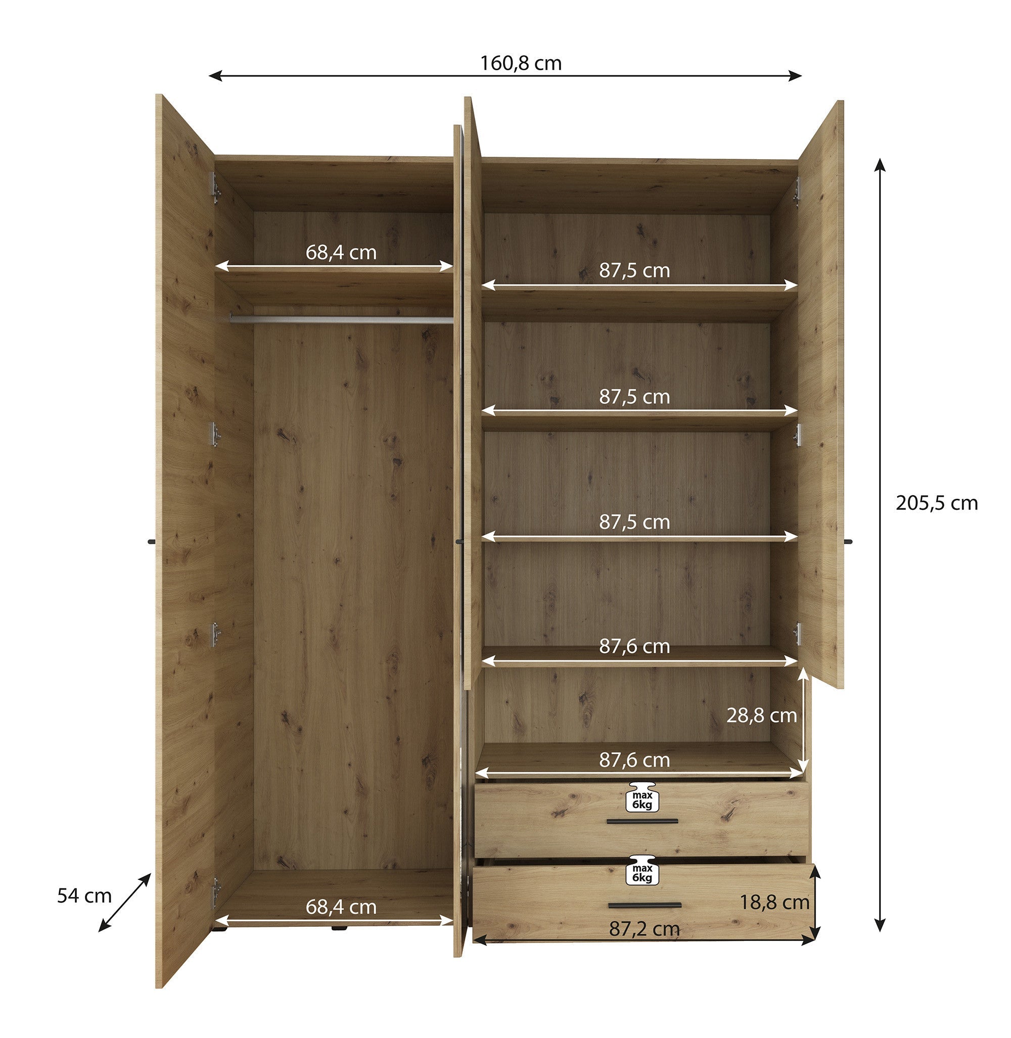 | Maat | H 206 x B 161 x D 54 cm |