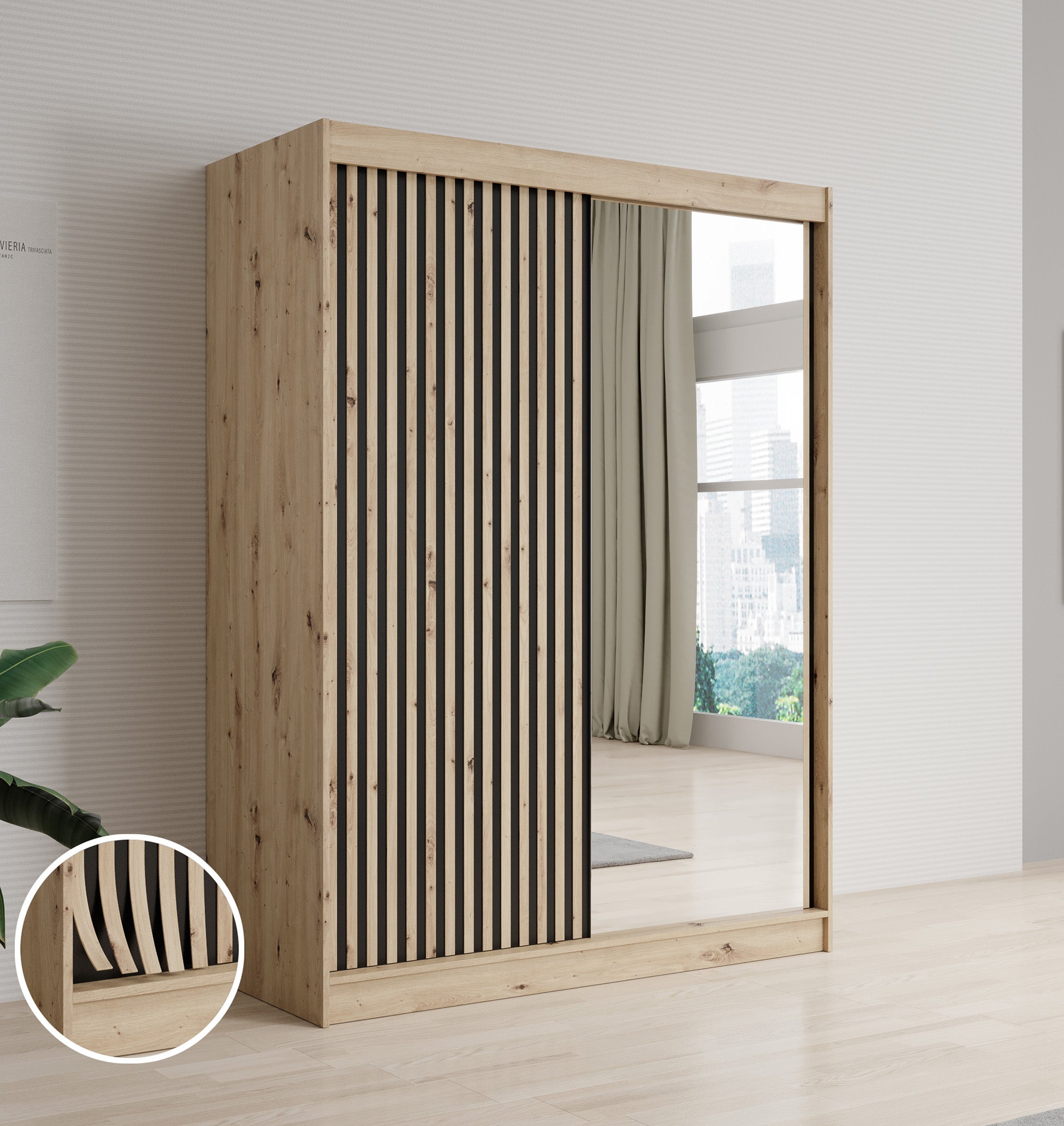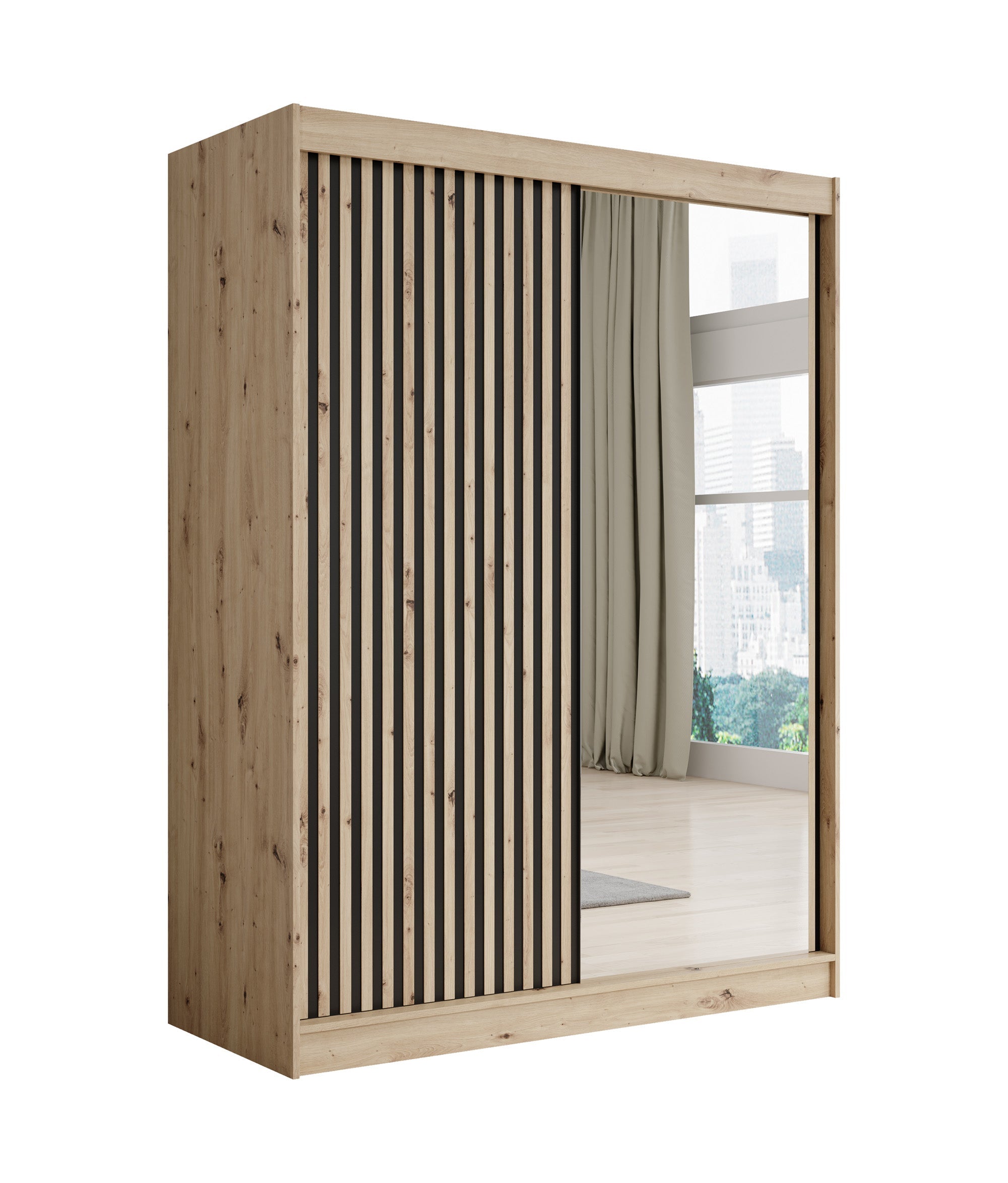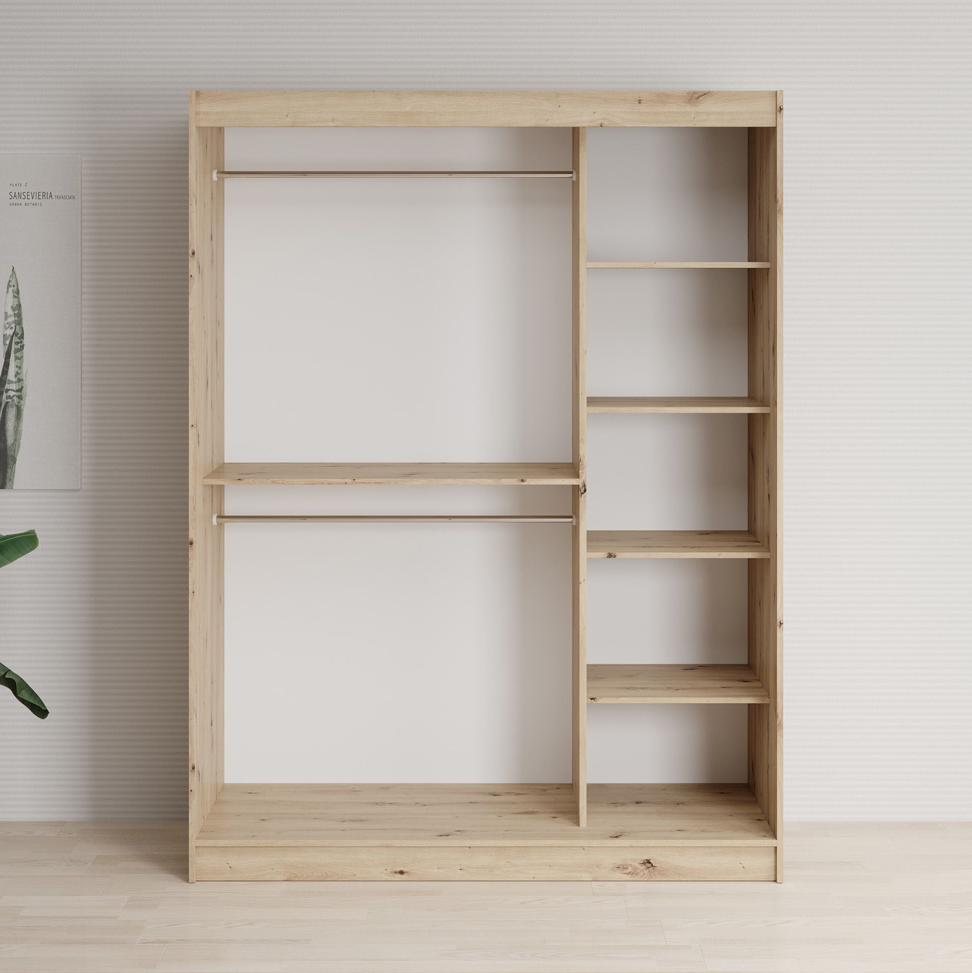Meubella - Kledingkast Lisbon 2 - Eiken - 150 cm - Met spiegel