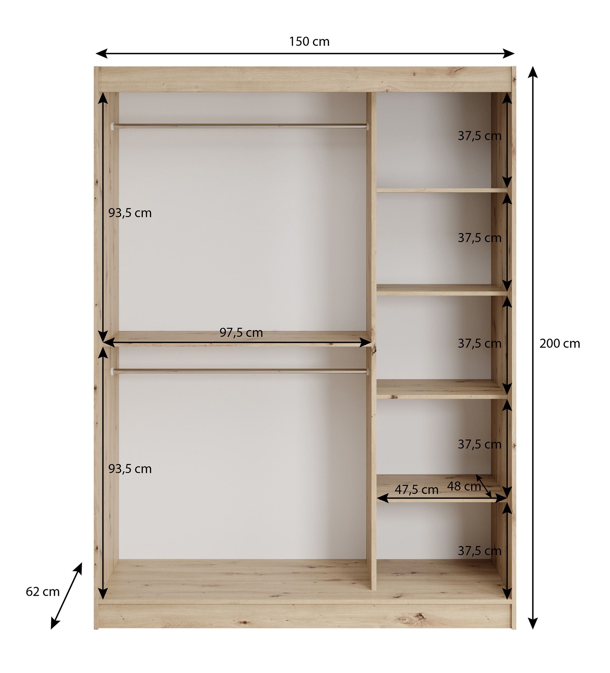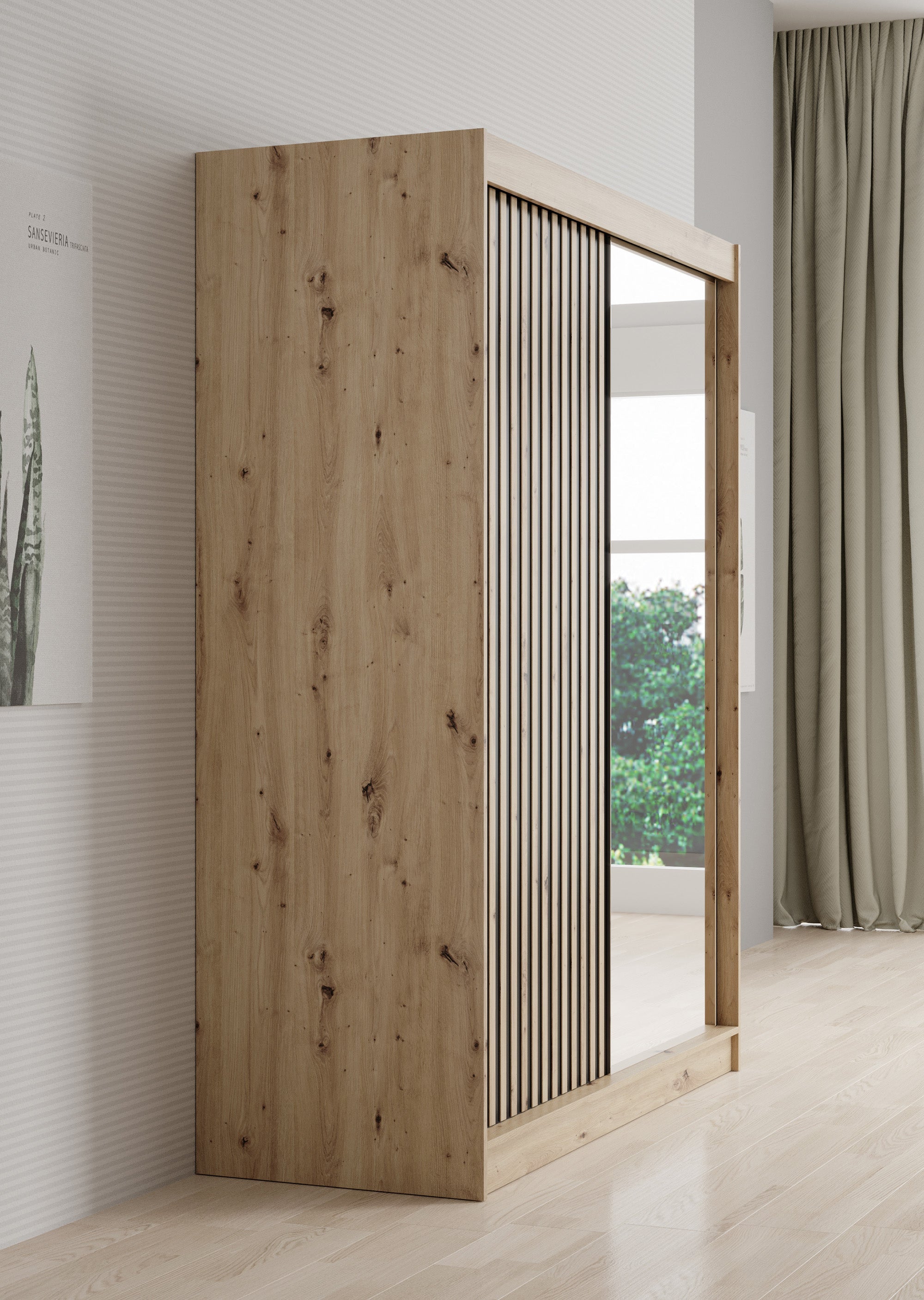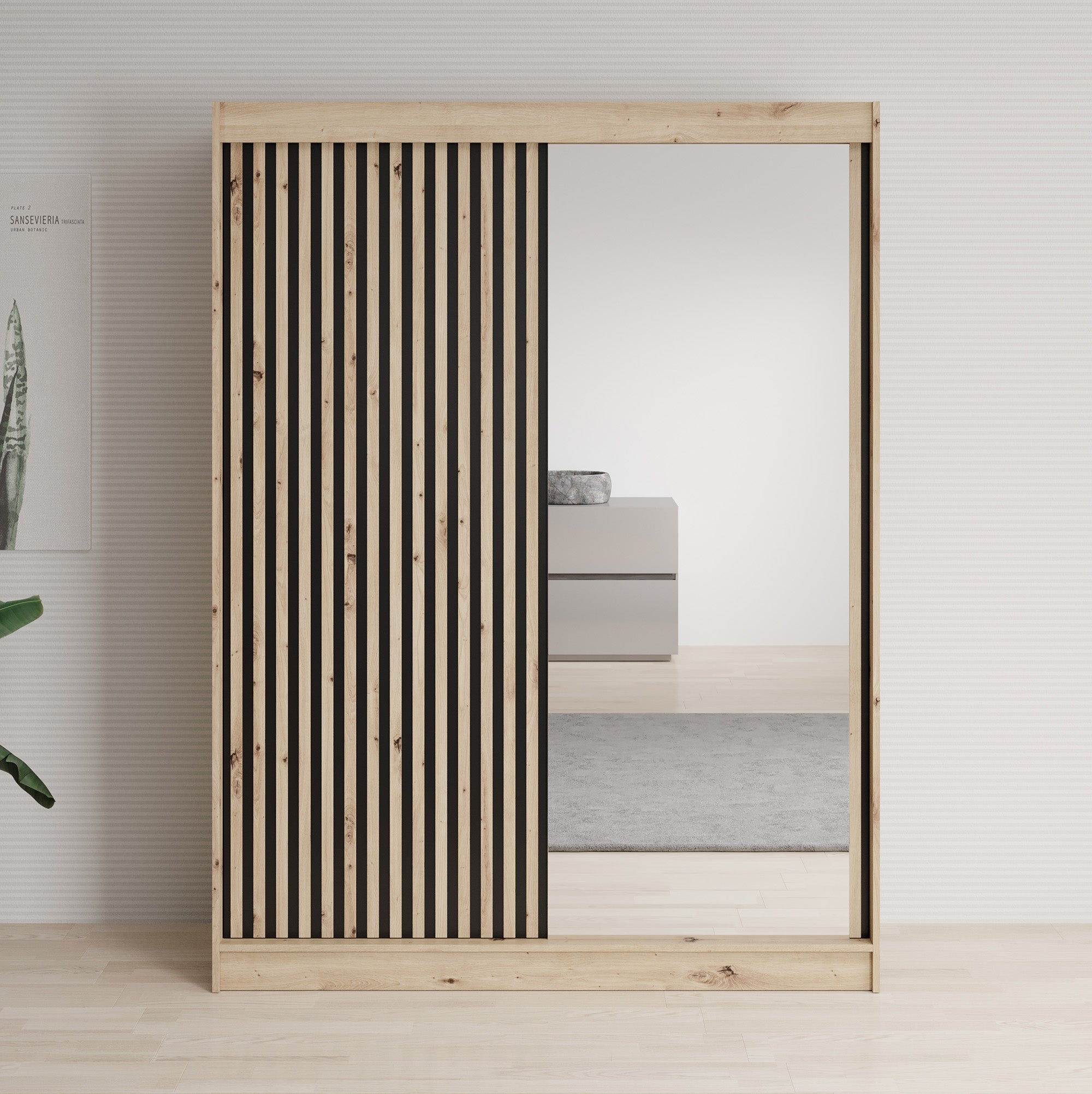 Meubella - Kledingkast Lisbon 2 - Eiken - 150 cm - Met spiegel