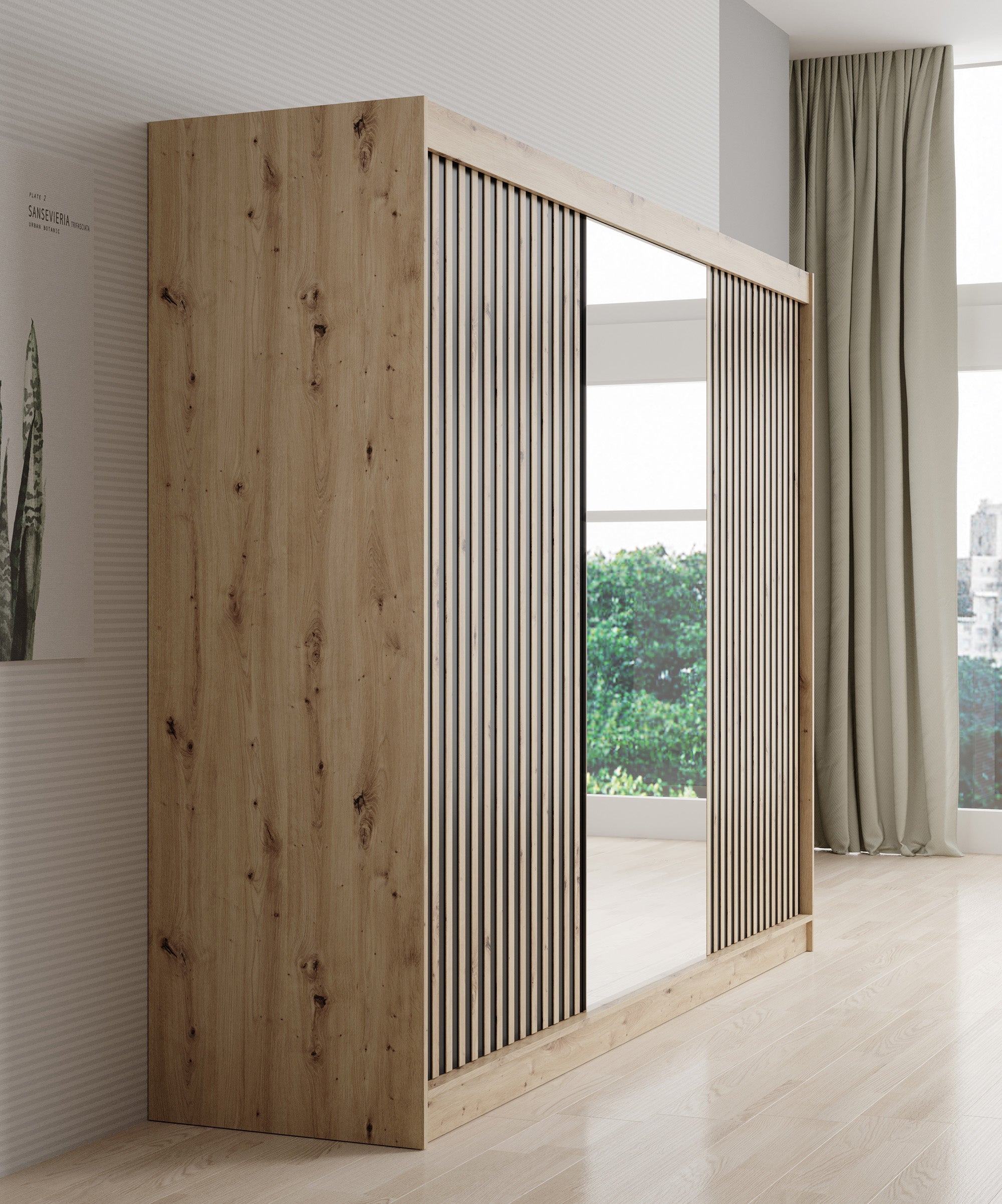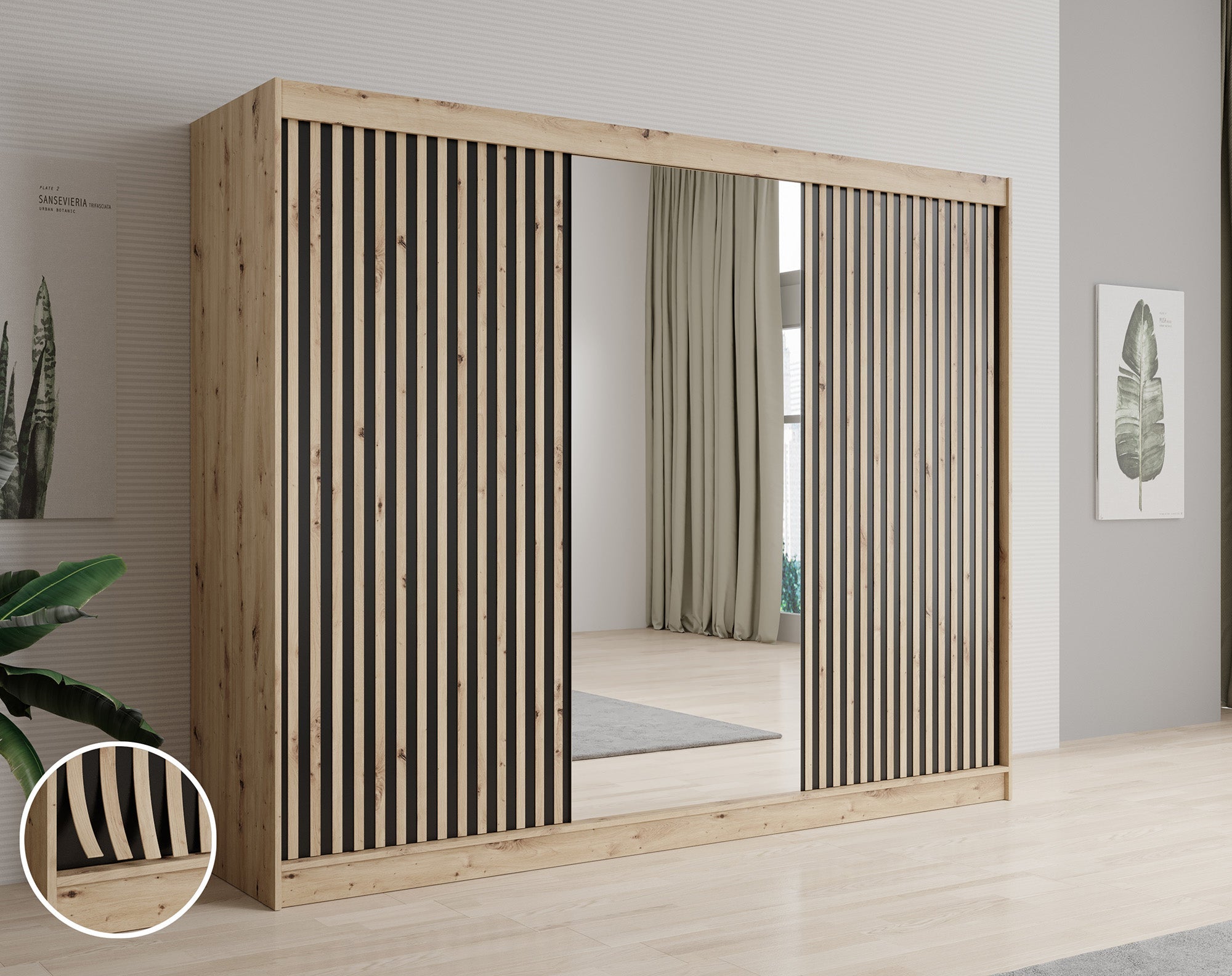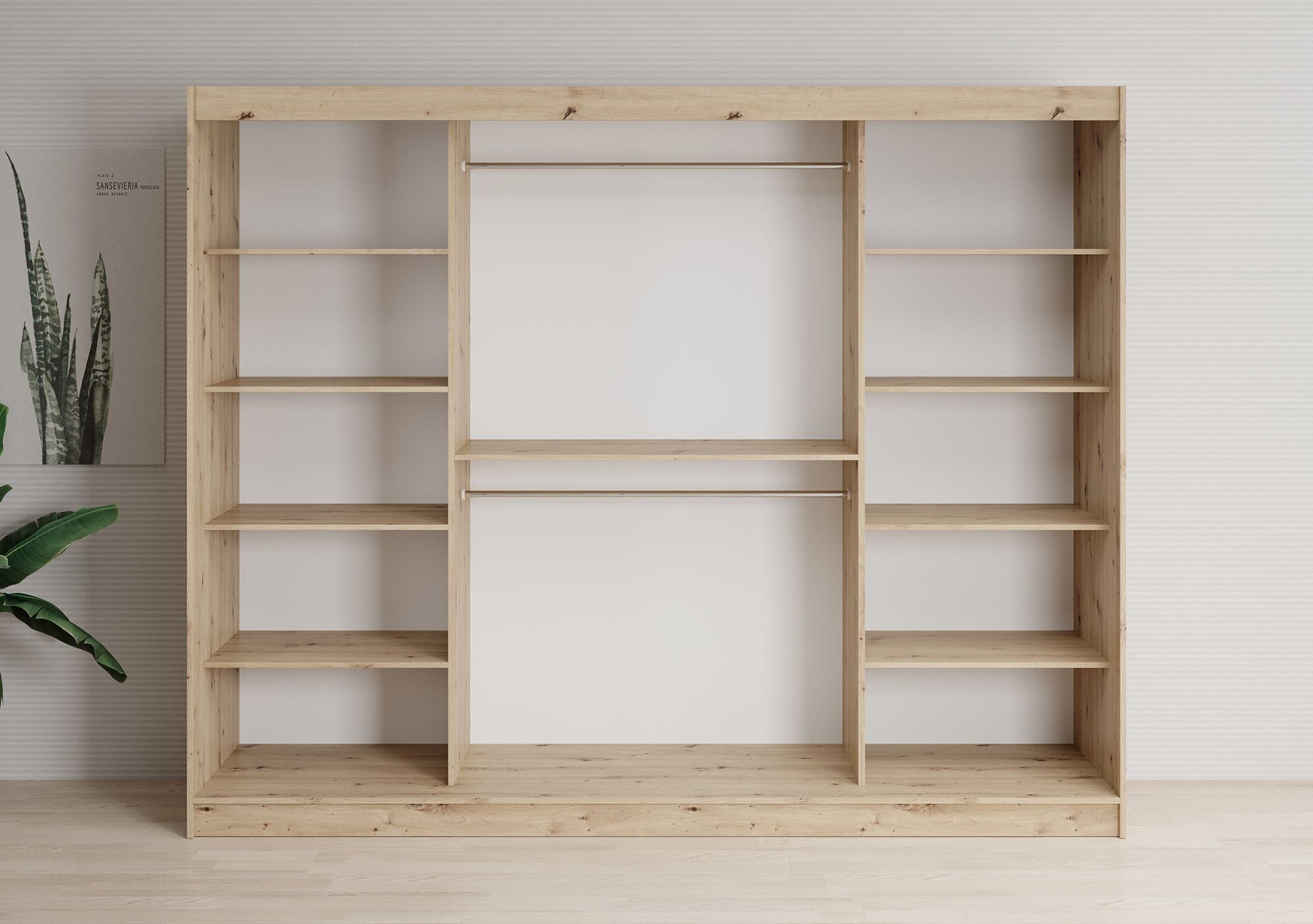 Meubella - Kledingkast Lisbon 2 - Eiken - 250 cm - Met spiegel
