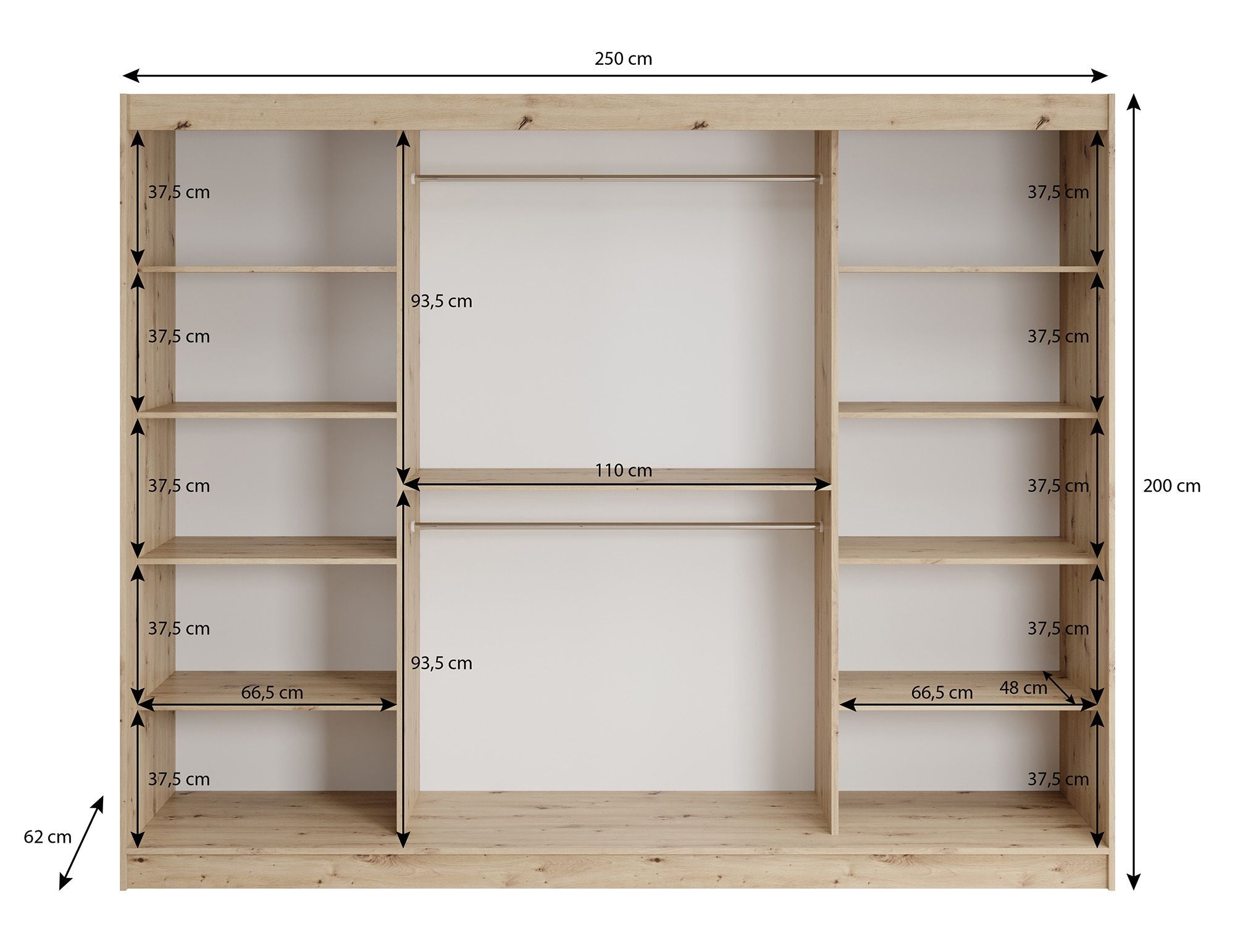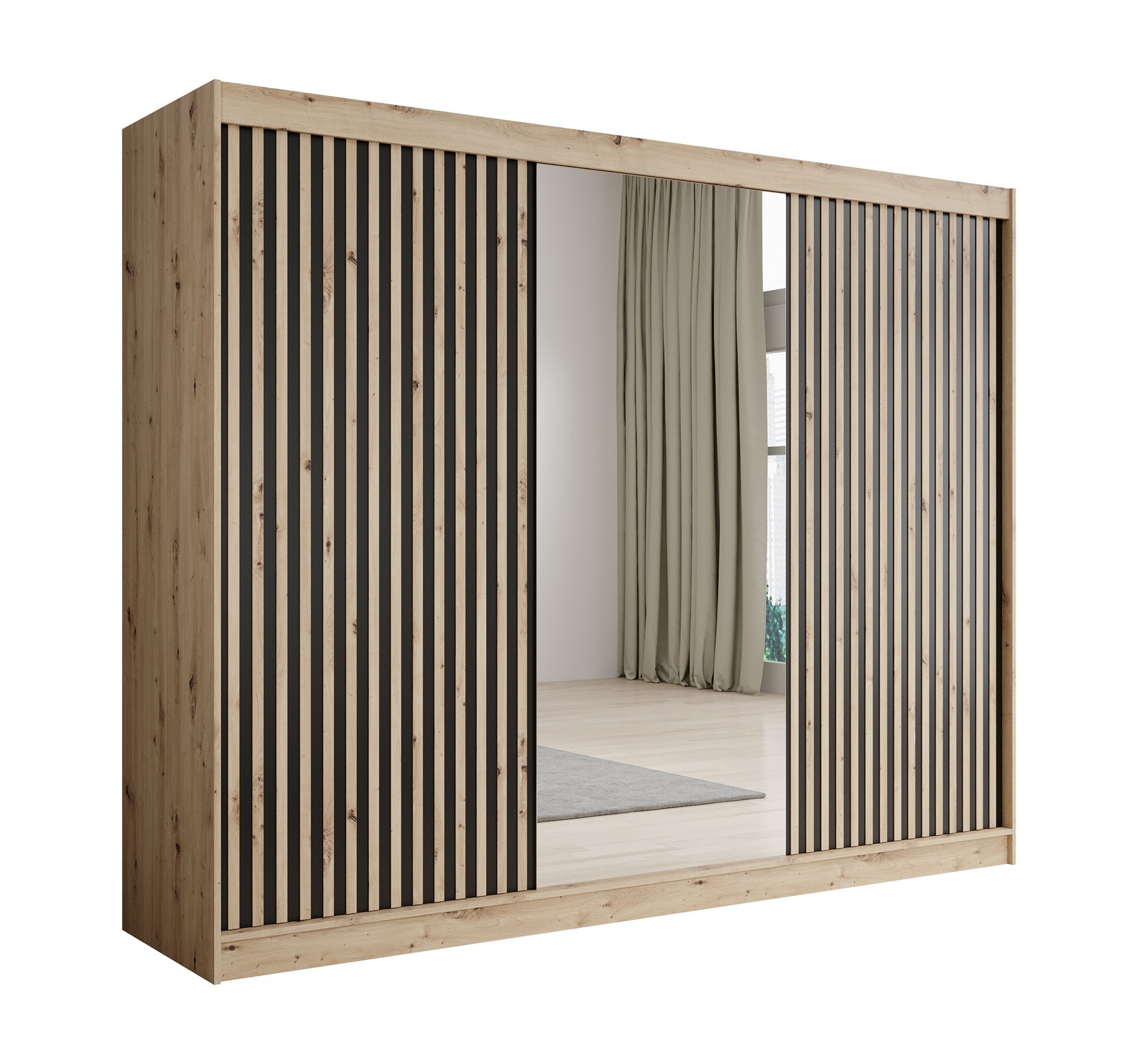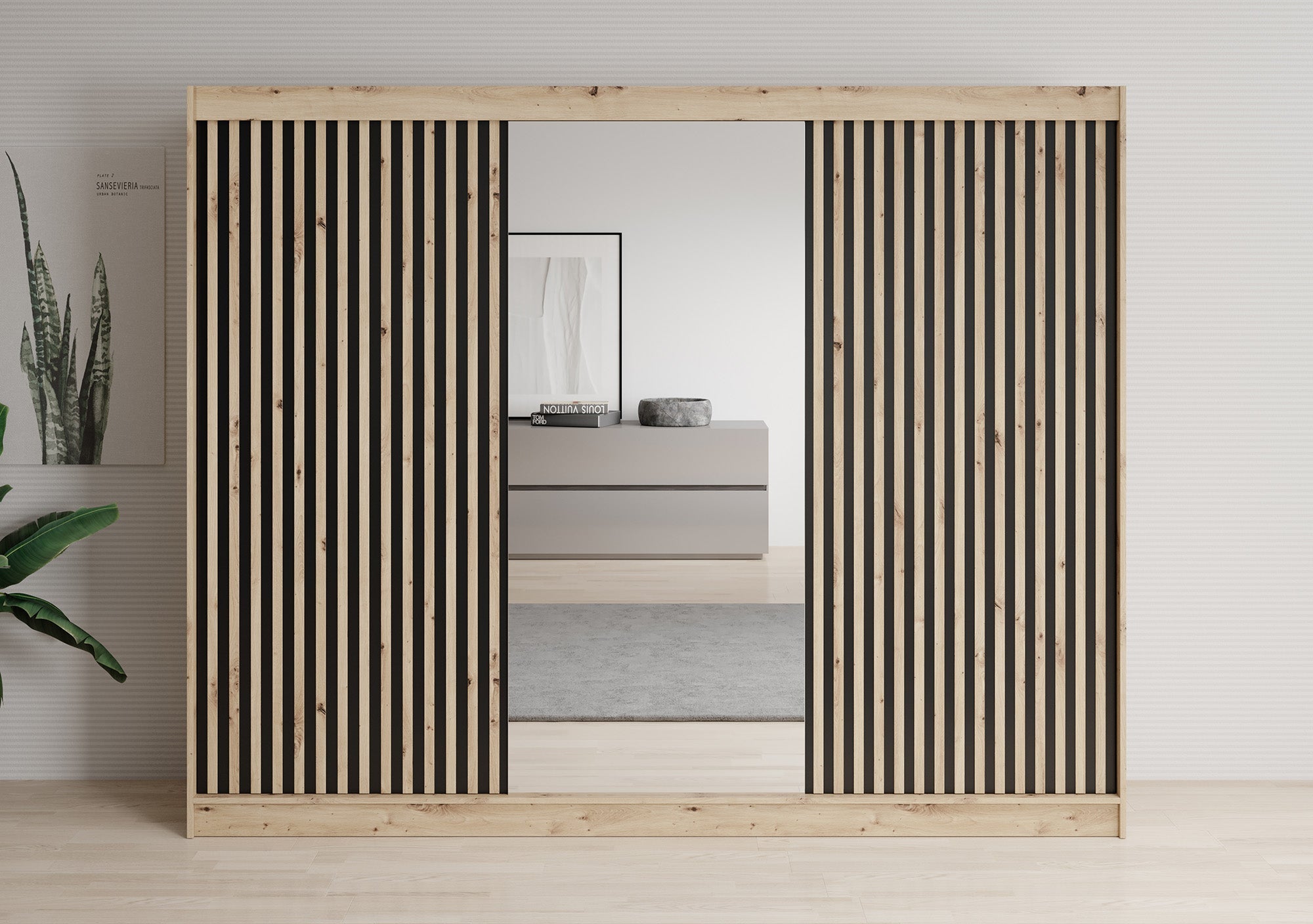 Meubella - Kledingkast Lisbon 2 - Eiken - 250 cm - Met spiegel