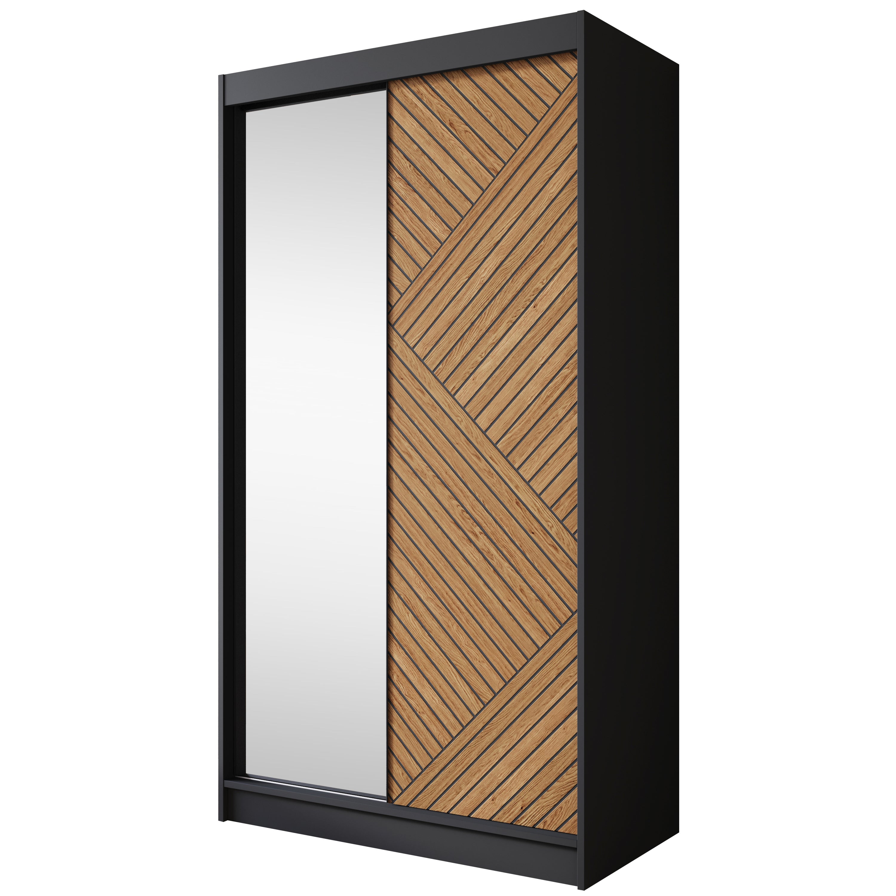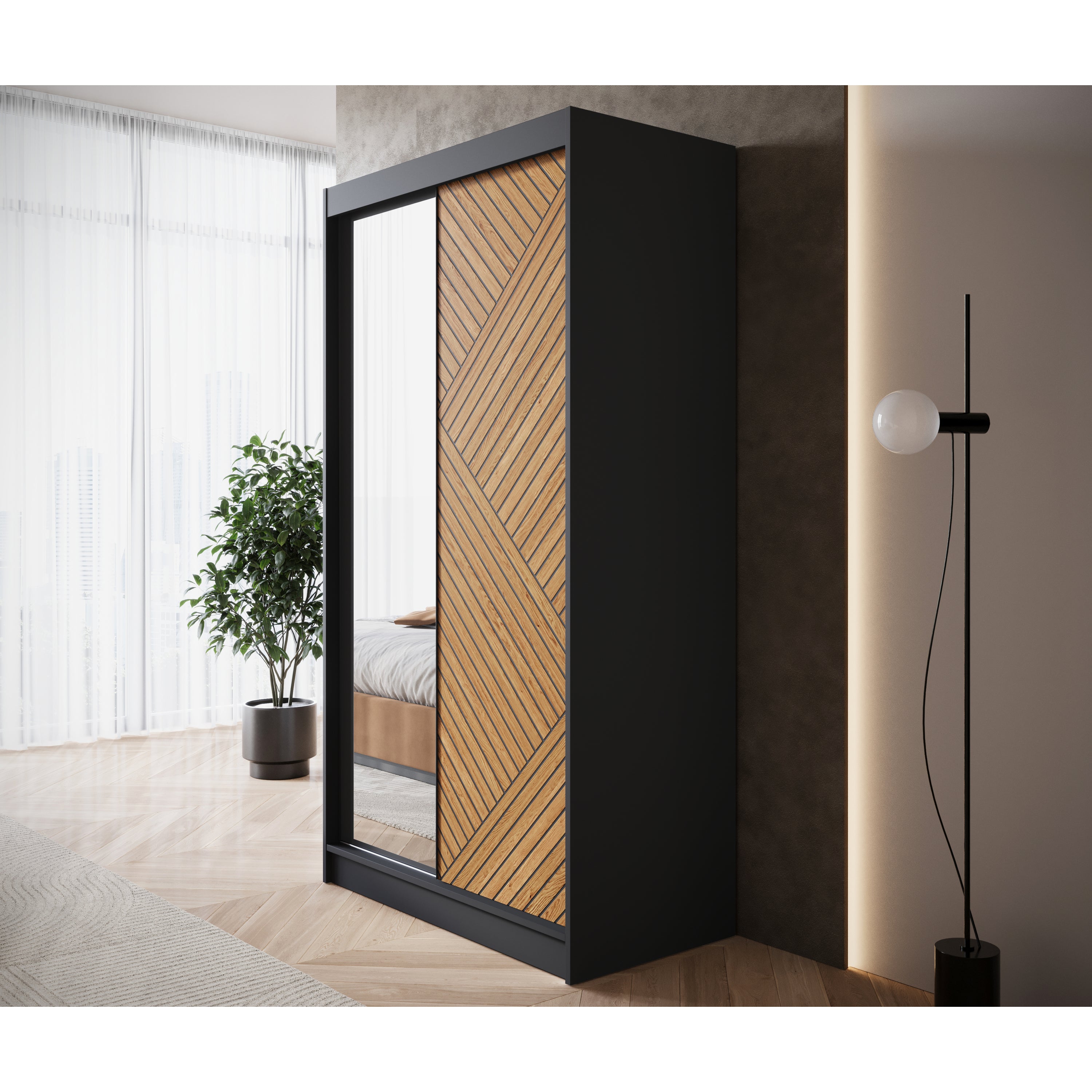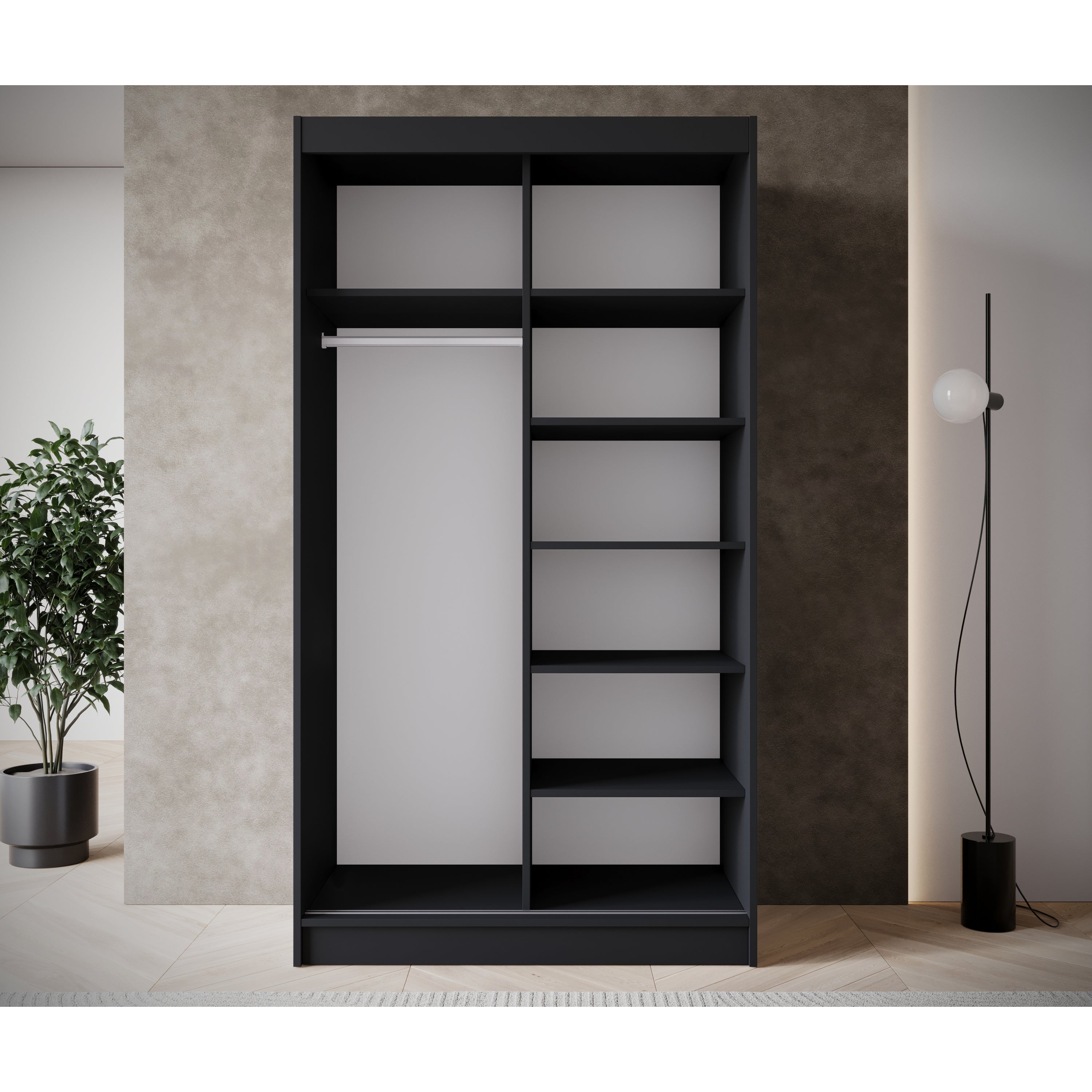 Meubella Kledingkast Macerata - Zwart - 120 cm - Met spiegel
