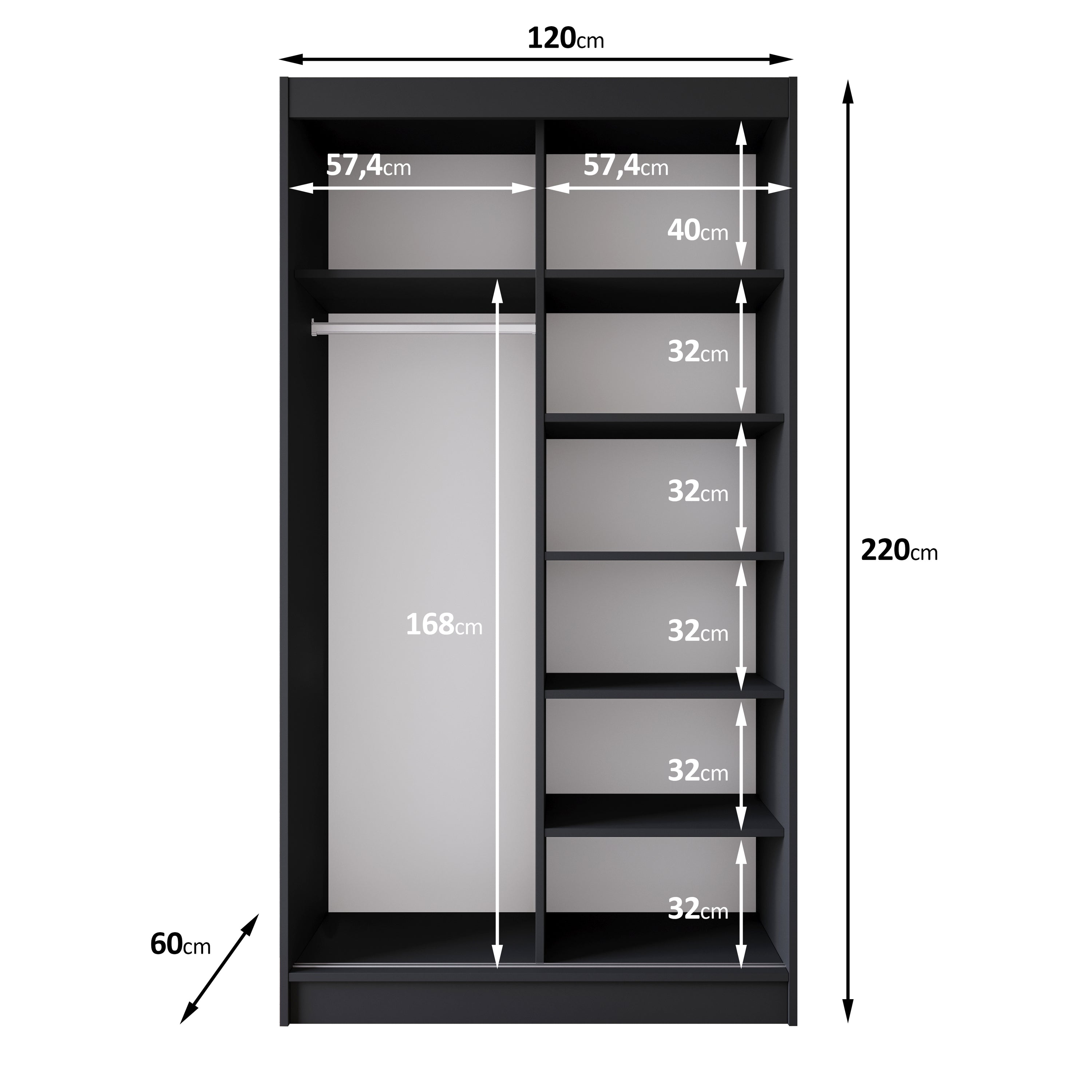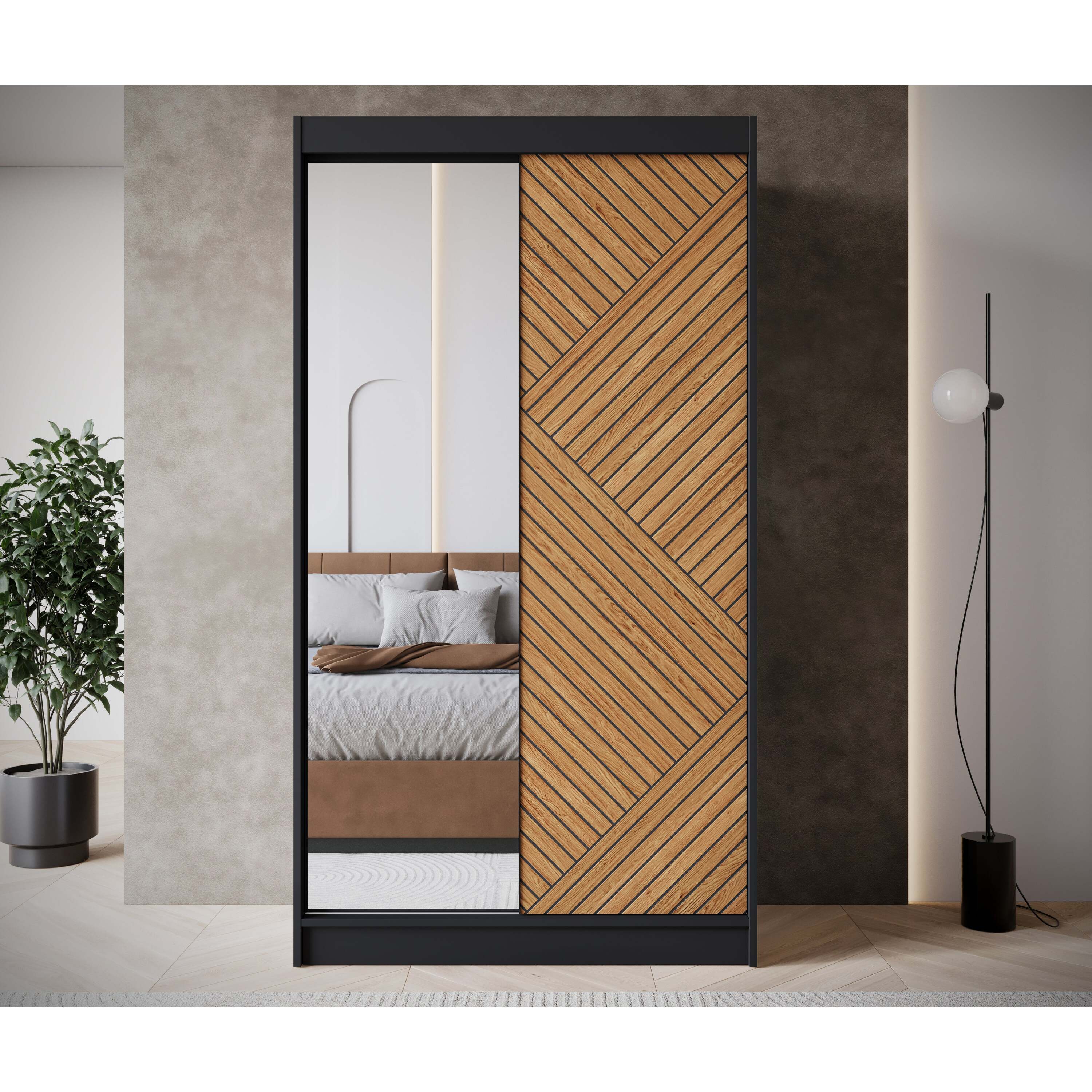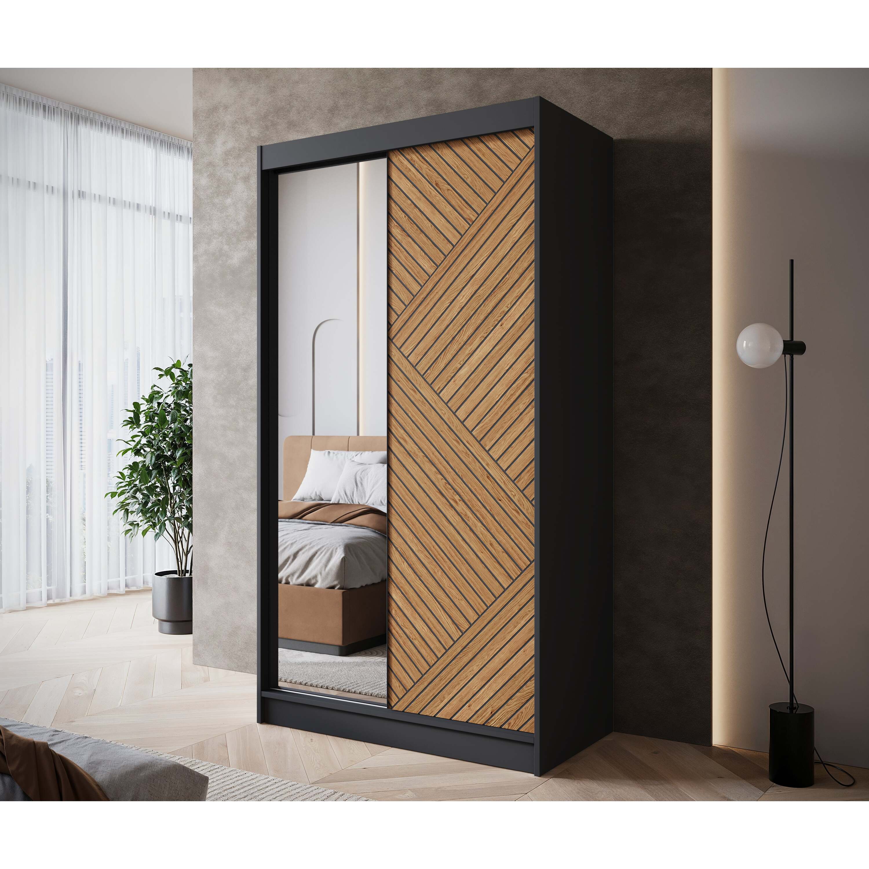 Meubella Kledingkast Macerata - Zwart - 120 cm - Met spiegel