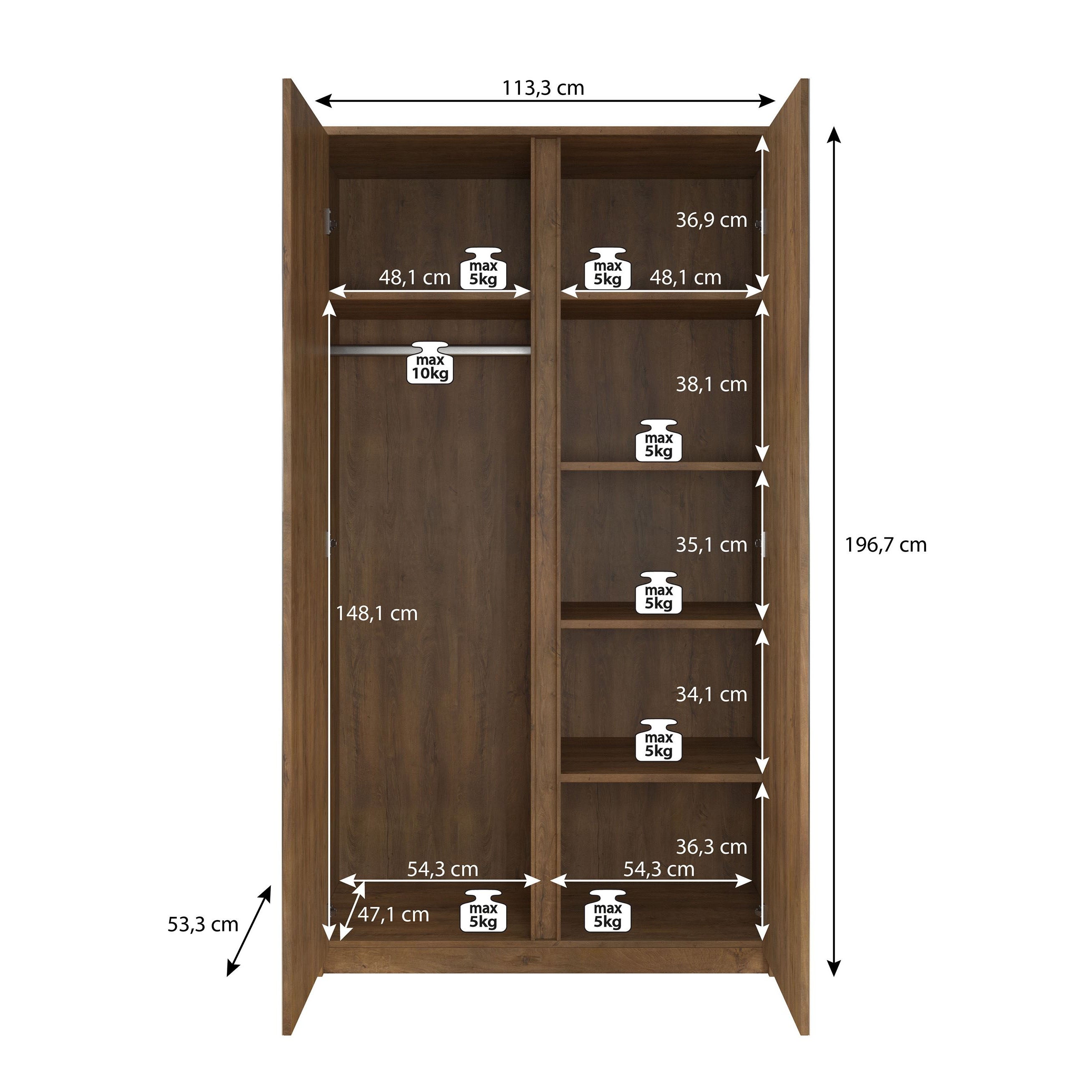 | Maat | H 197 x B 113 x D 53 cm |