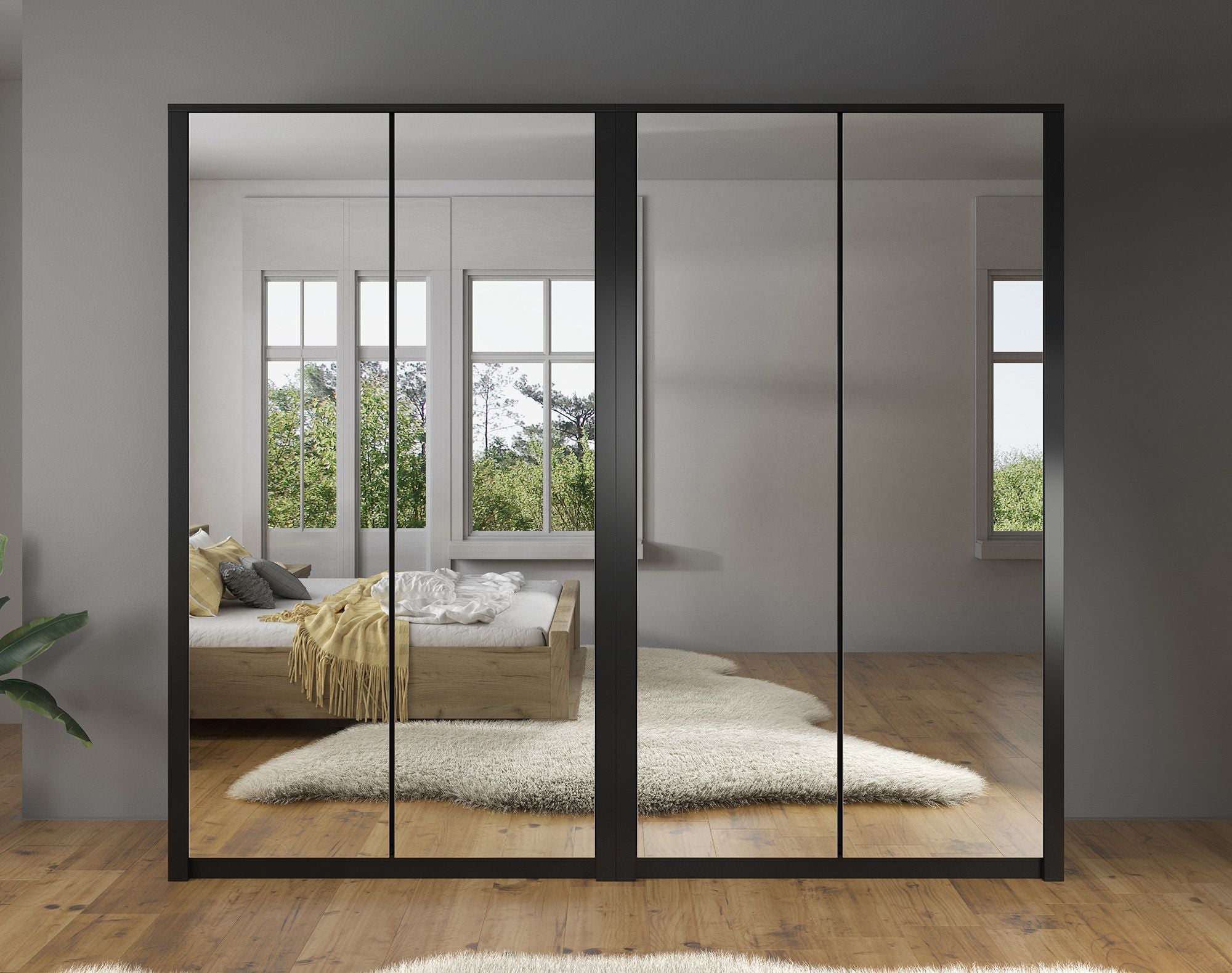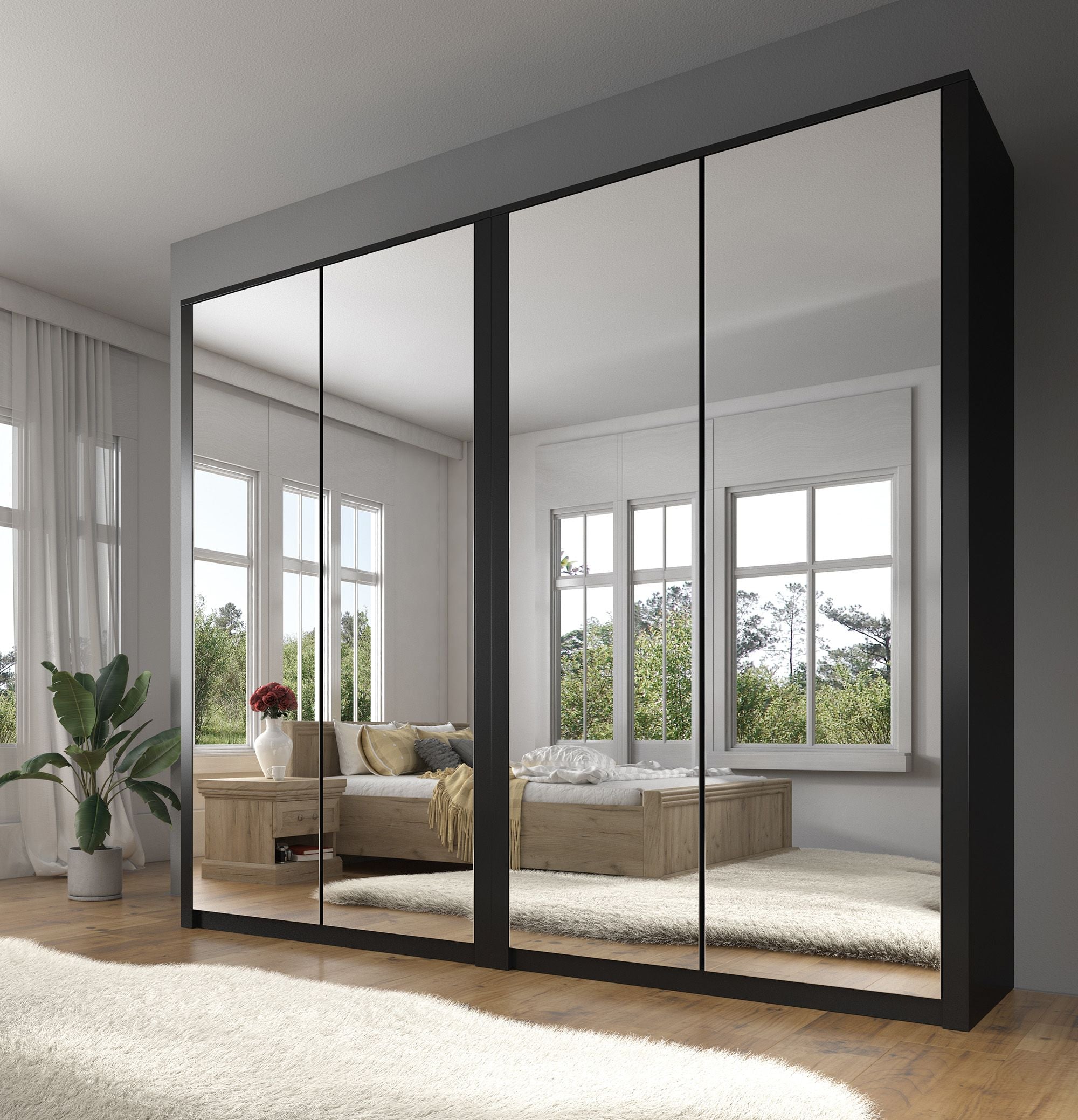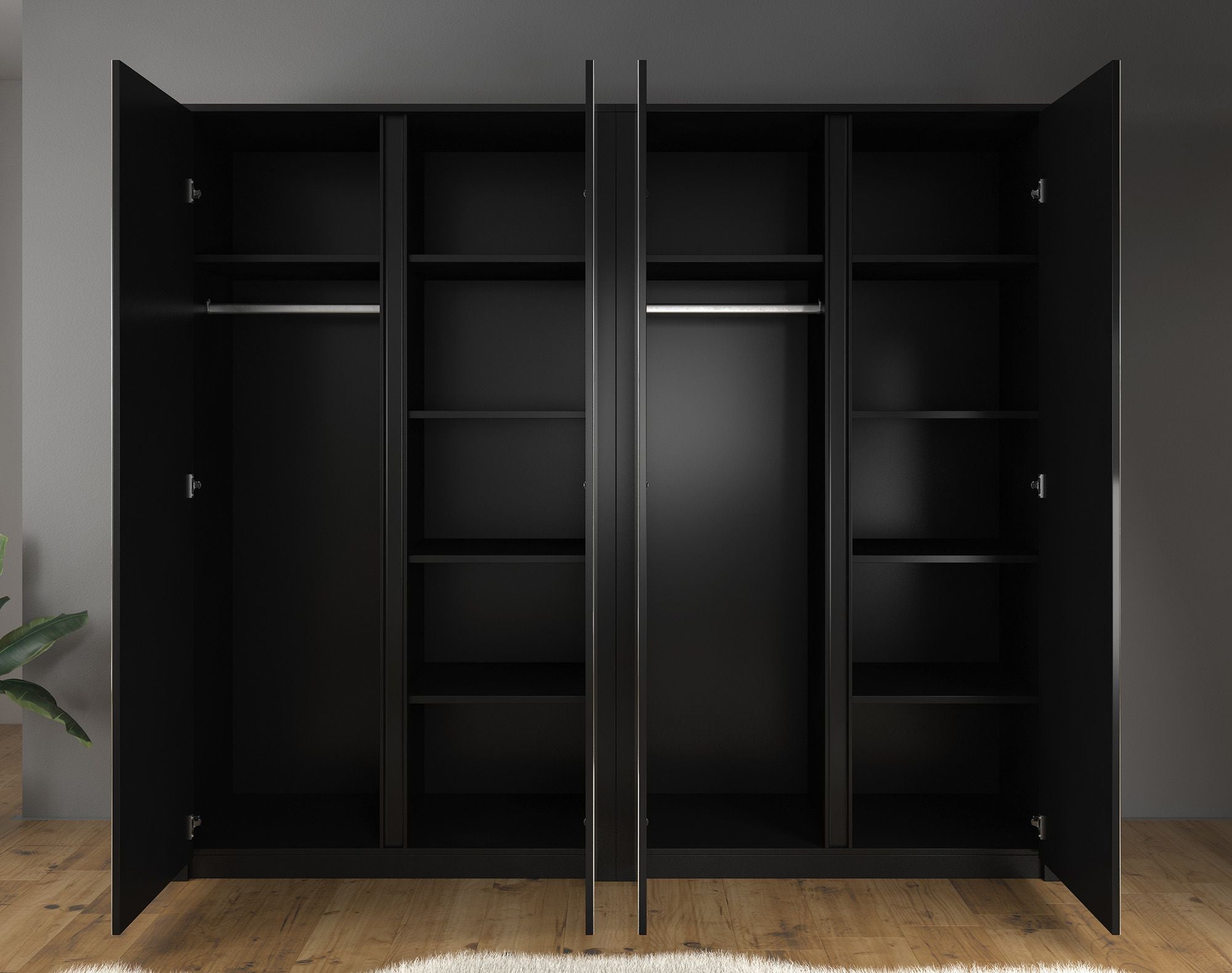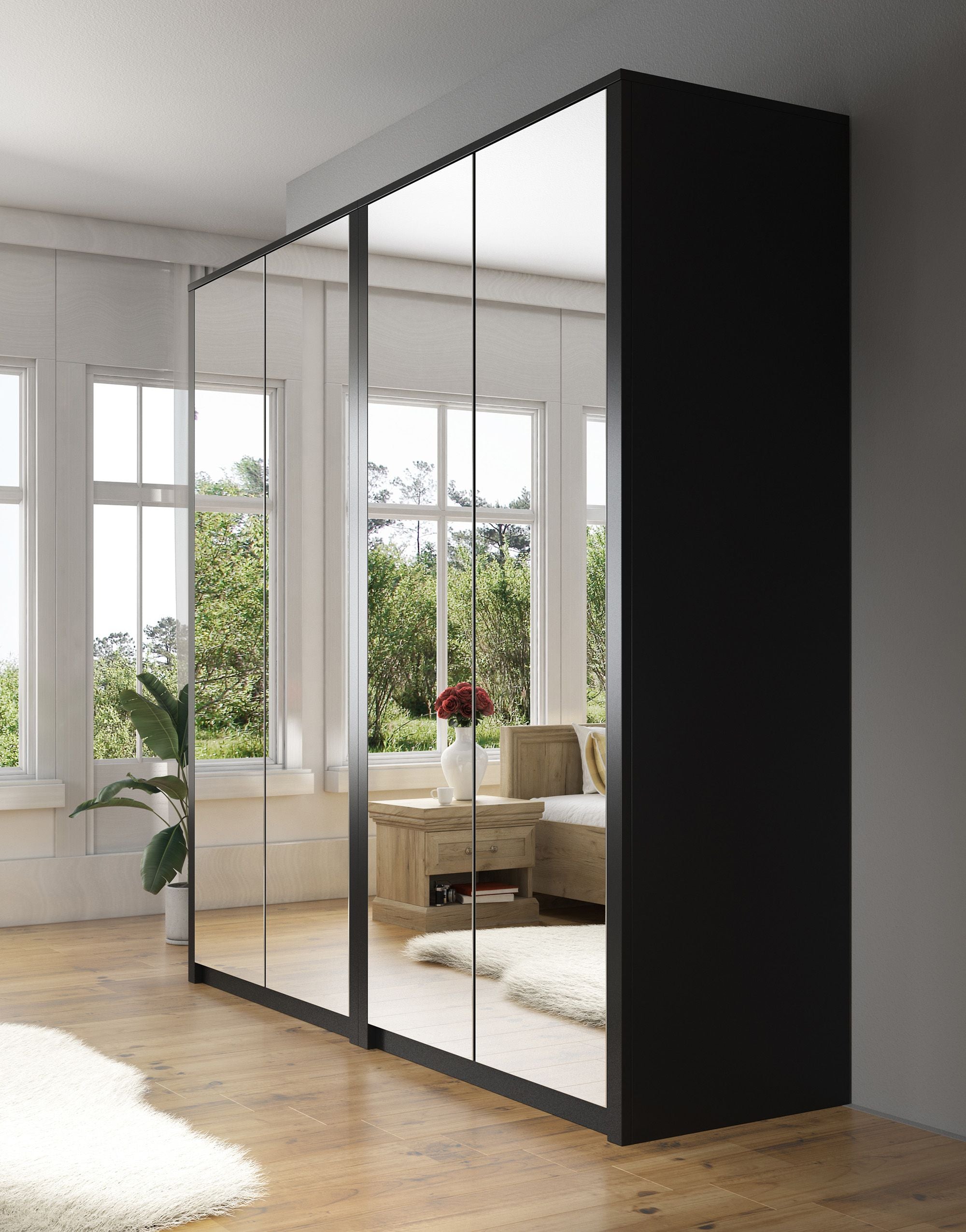 Meubella Kledingkast Malibu - Mat zwart - 226 cm - Met spiegel