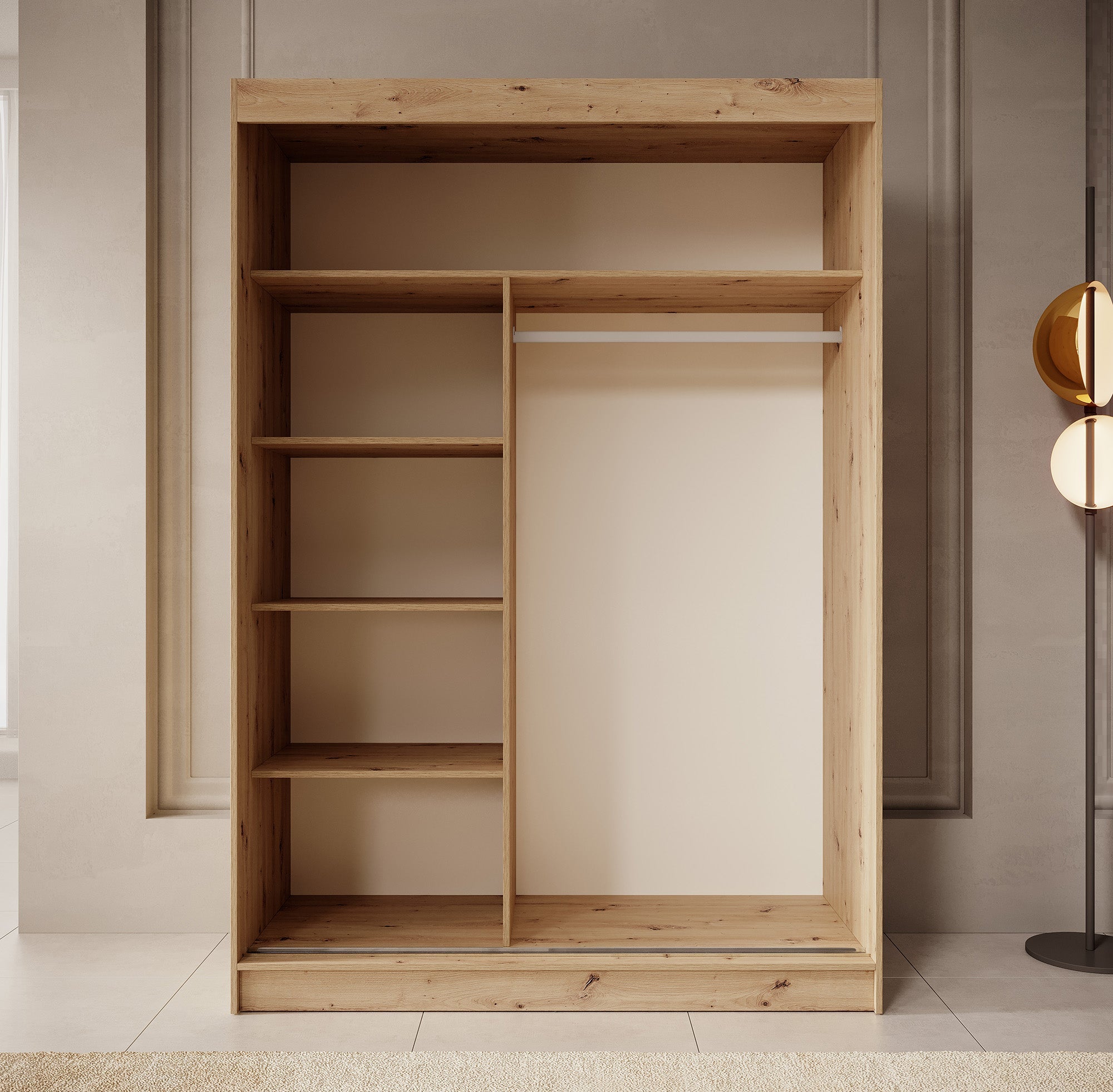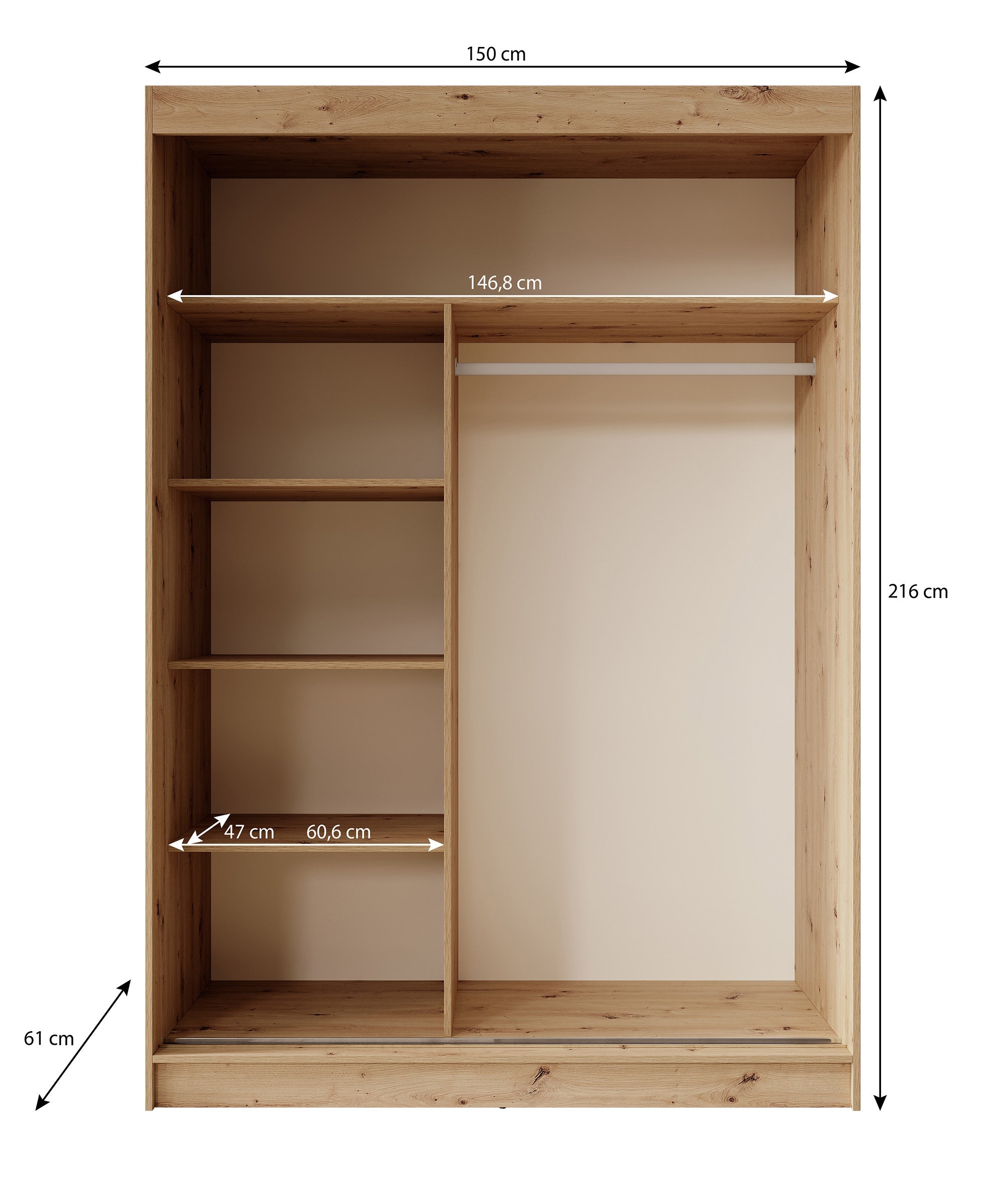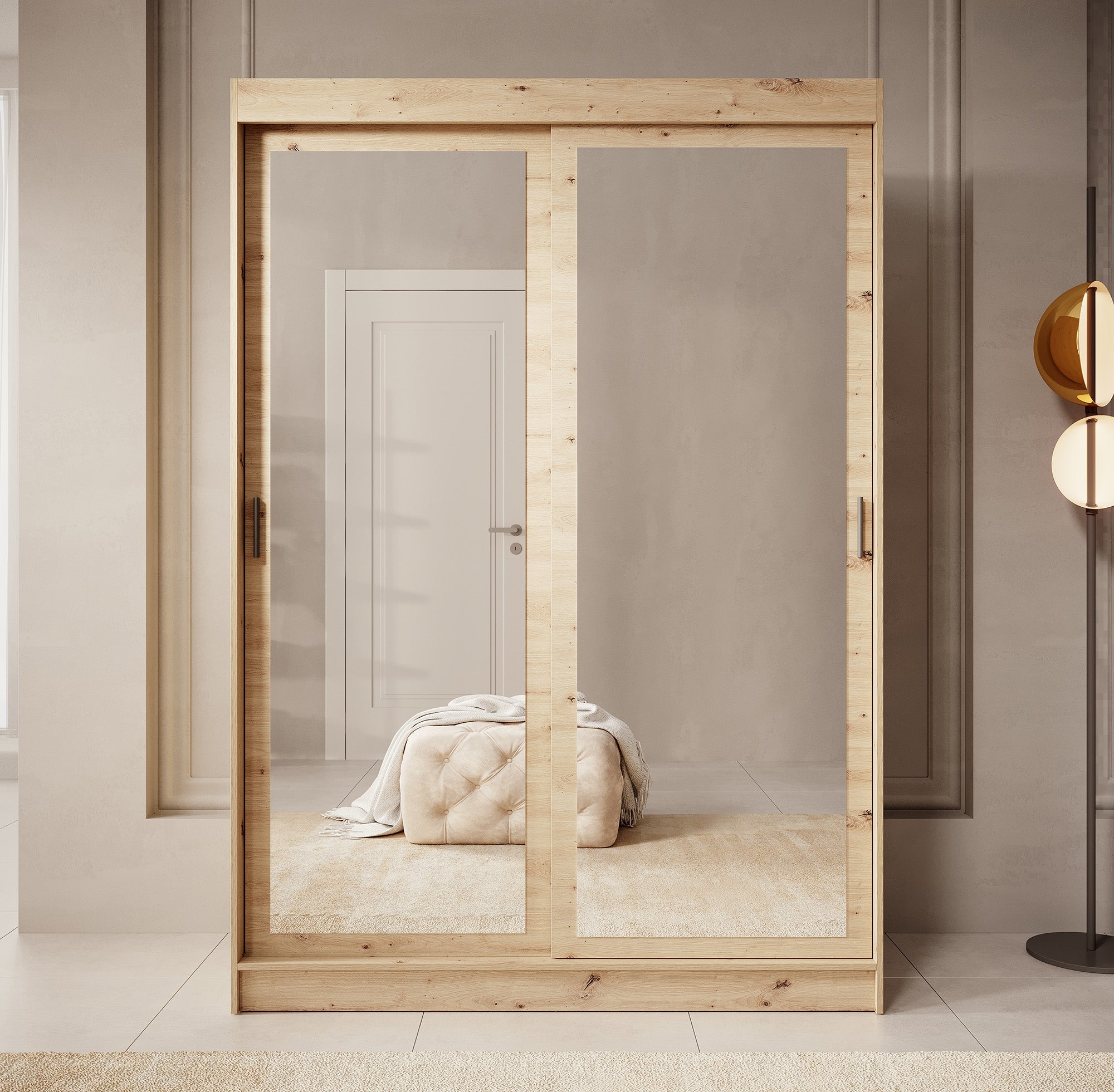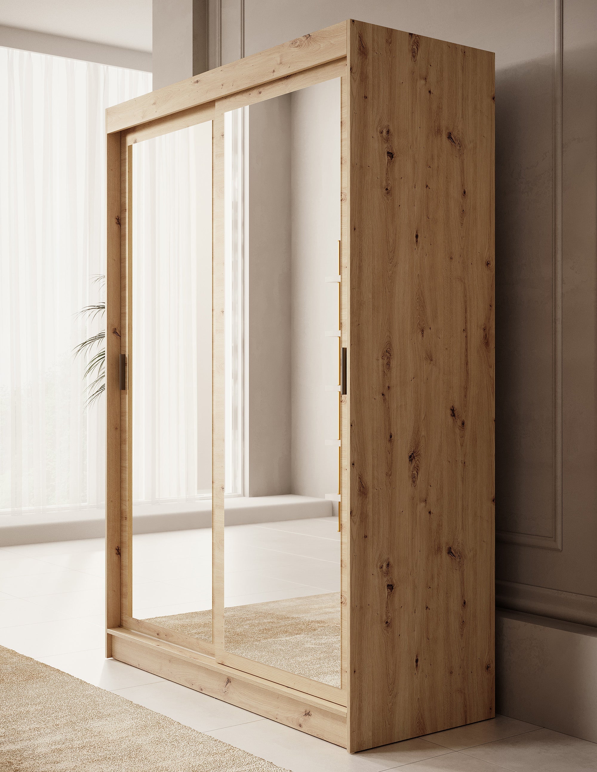 Meubella - Kledingkast Mammock 2 - Eiken - 150 cm - Met spiegel
