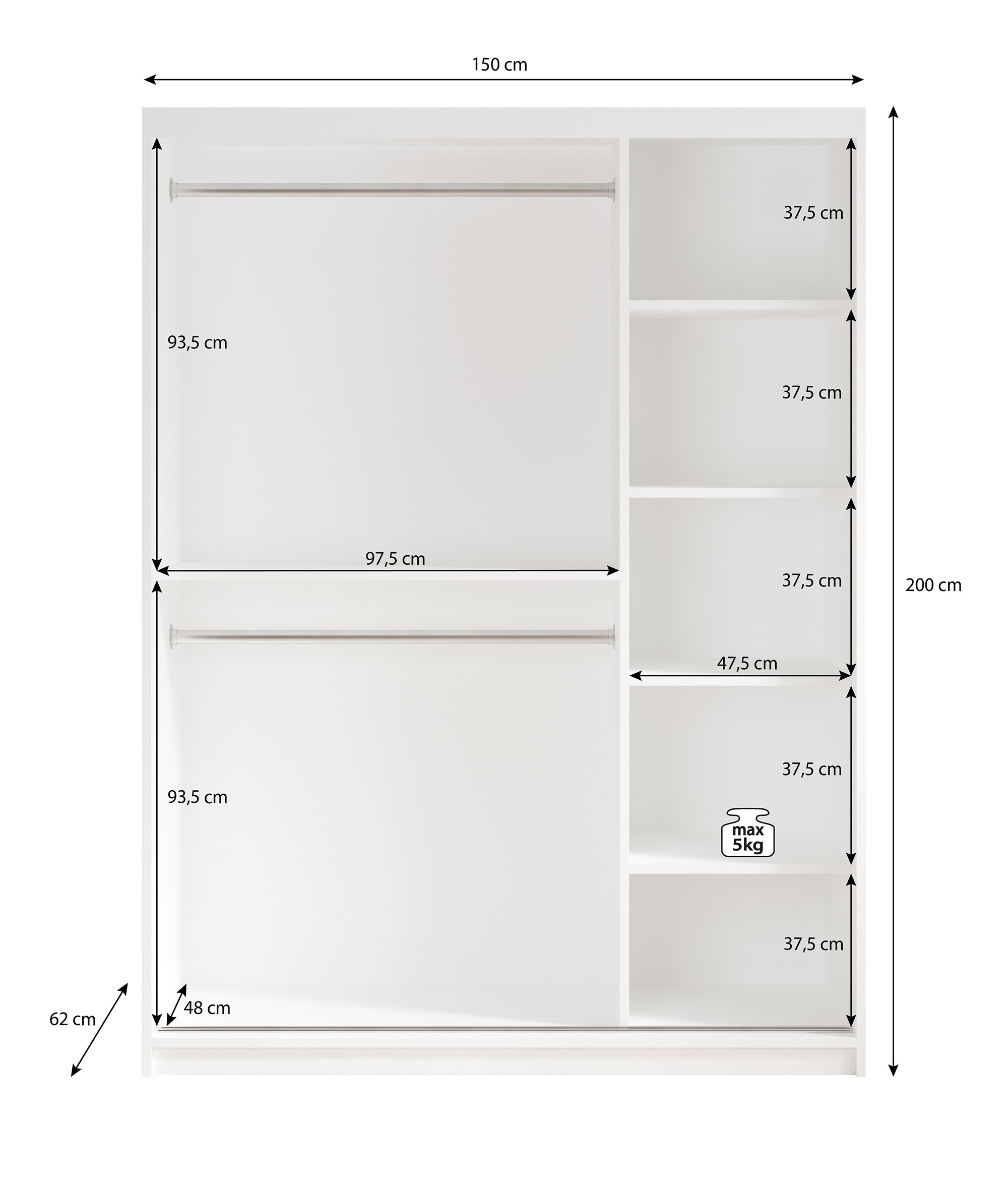 | Maat | H 200 x B 150 x D 62 cm |