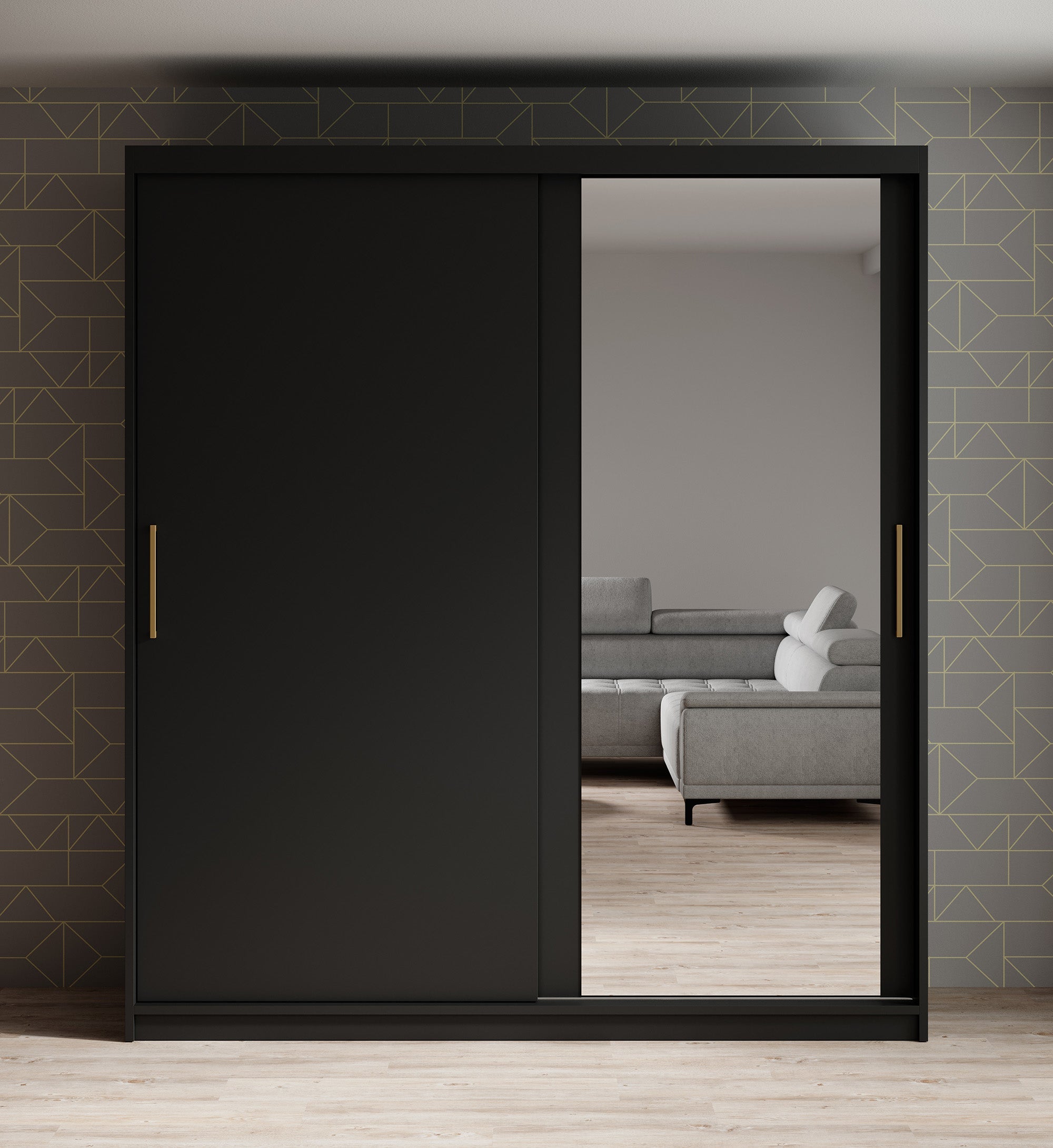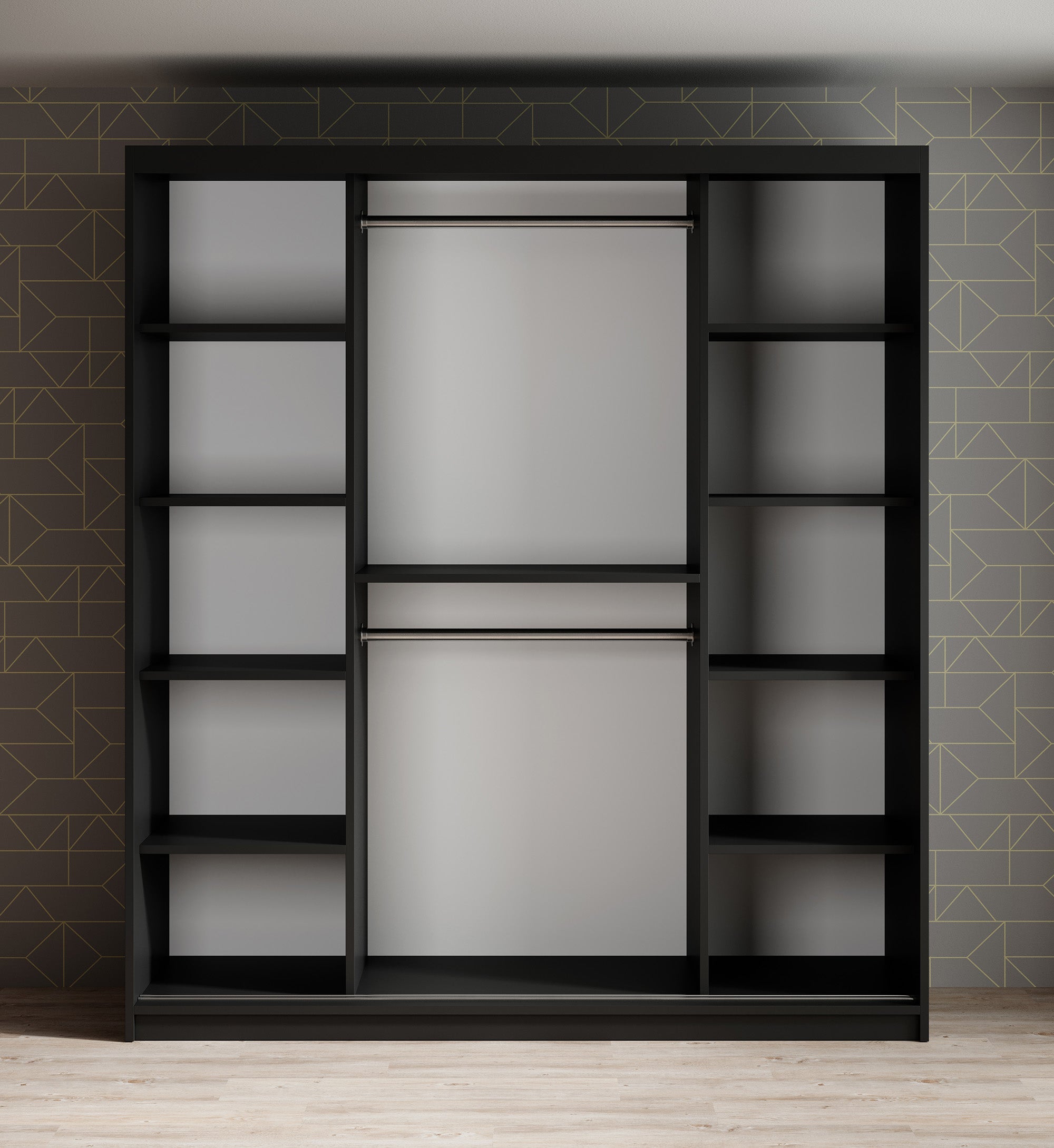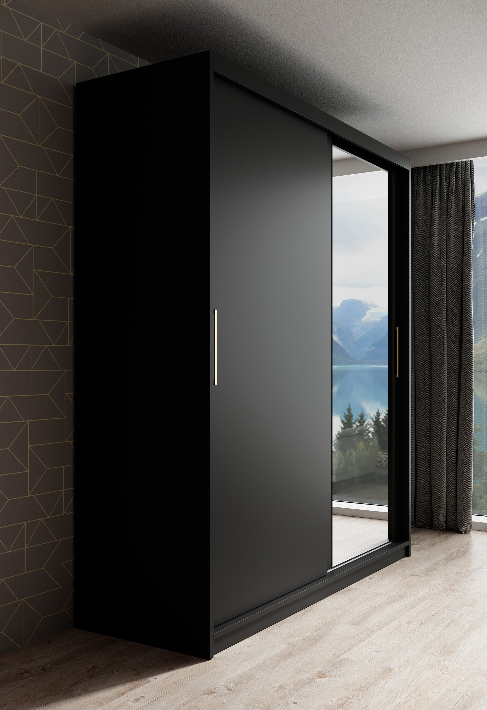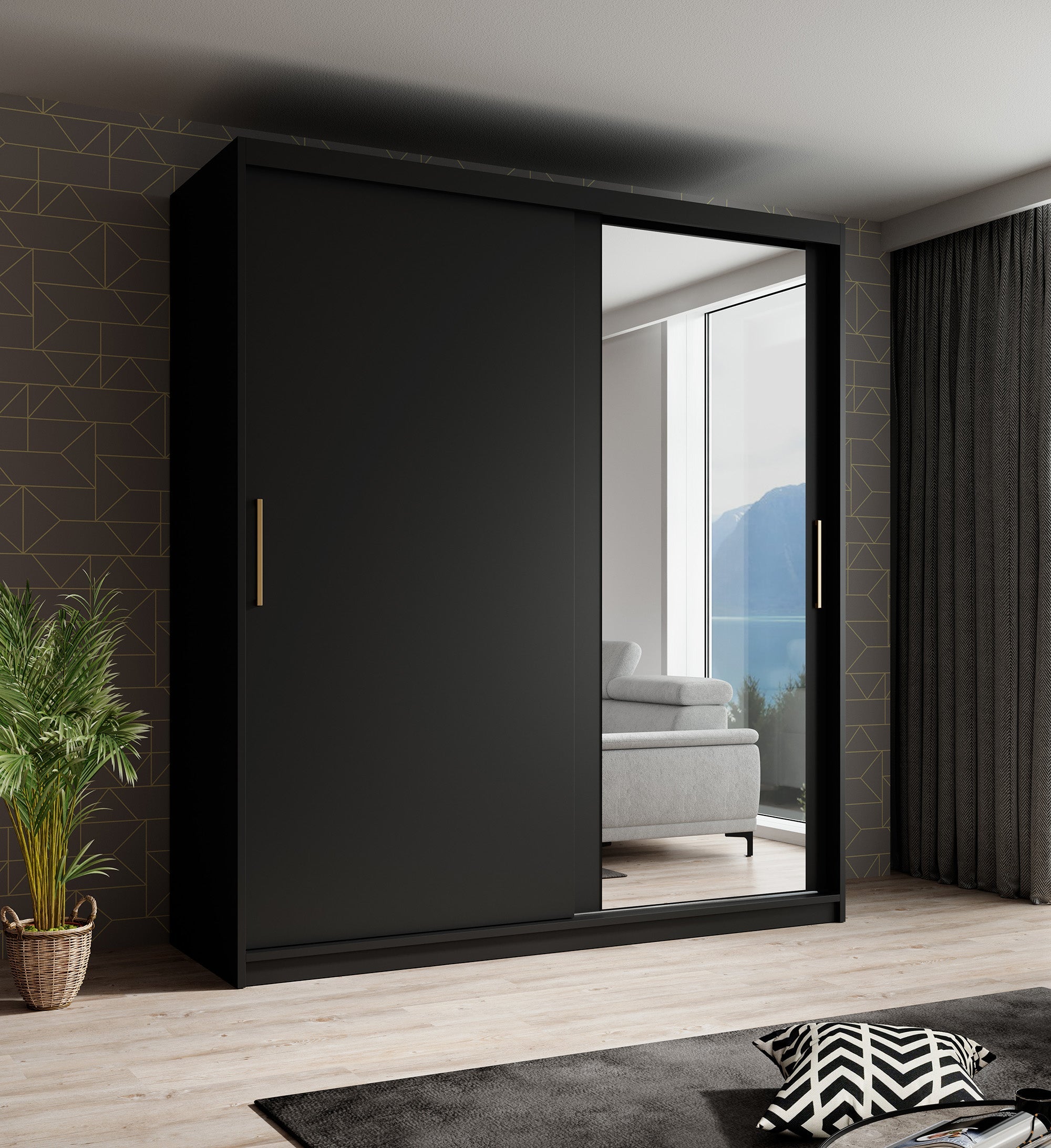 Meubella - Kledingkast Mandalin - Zwart - 180 cm - Met spiegel