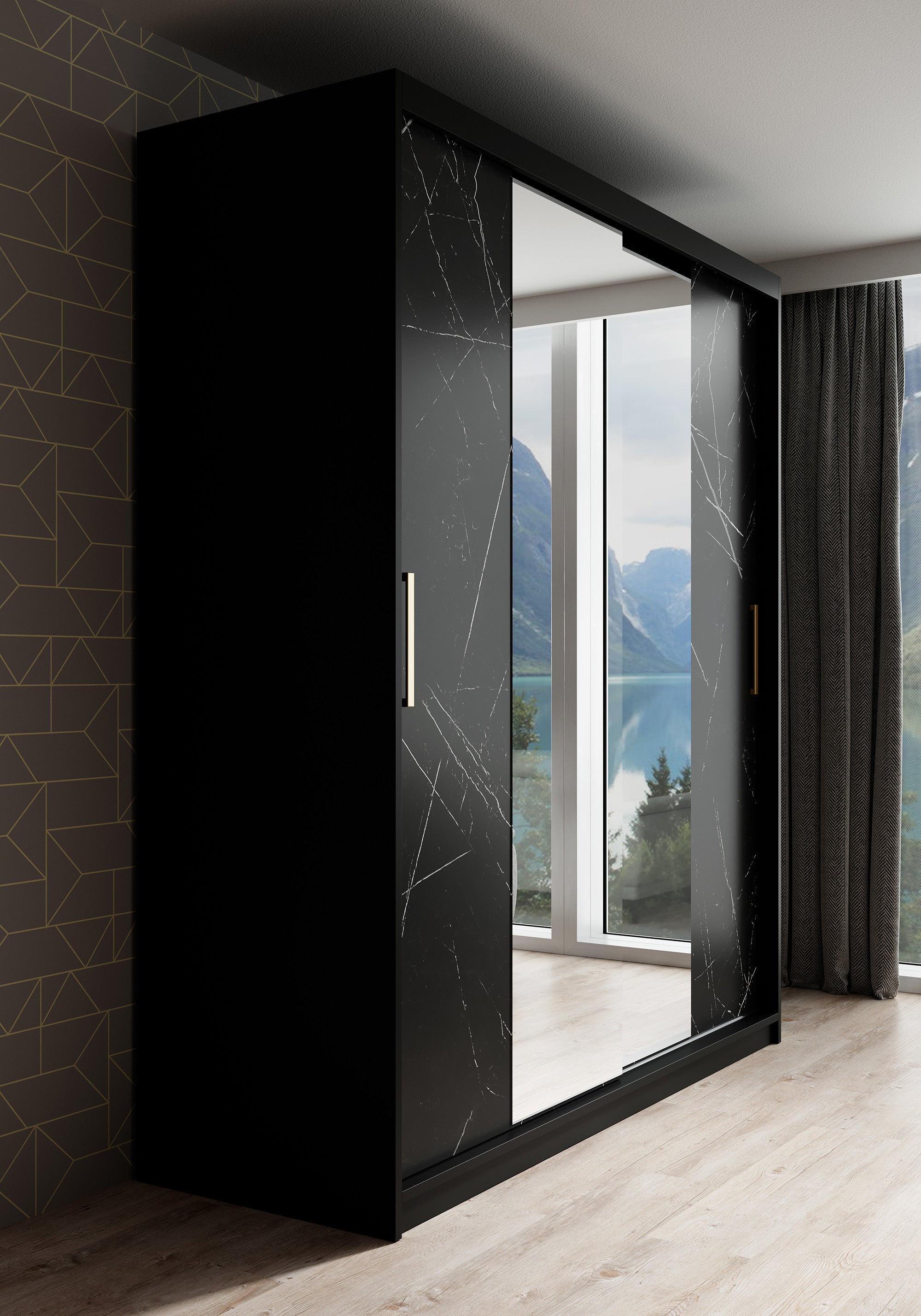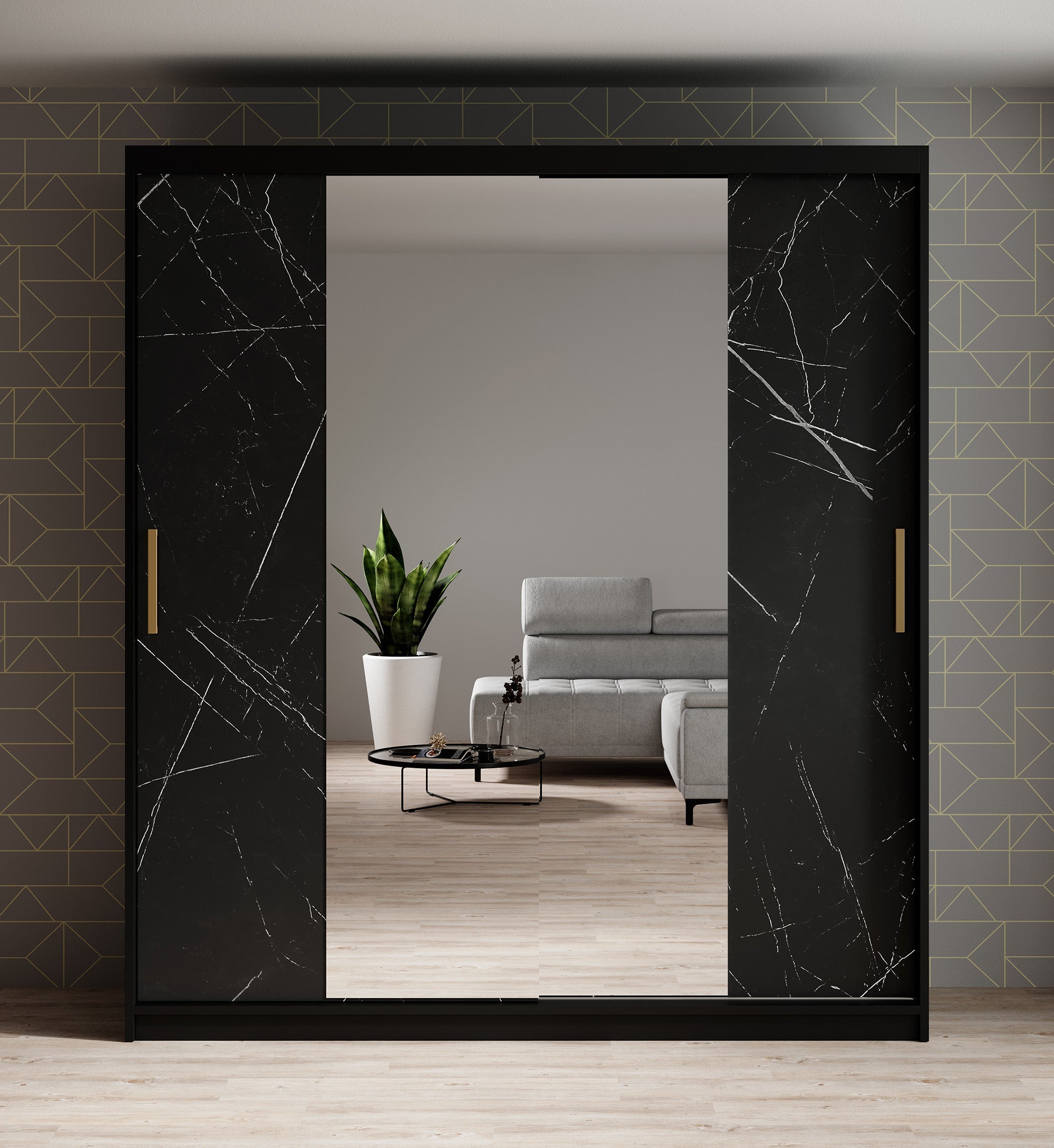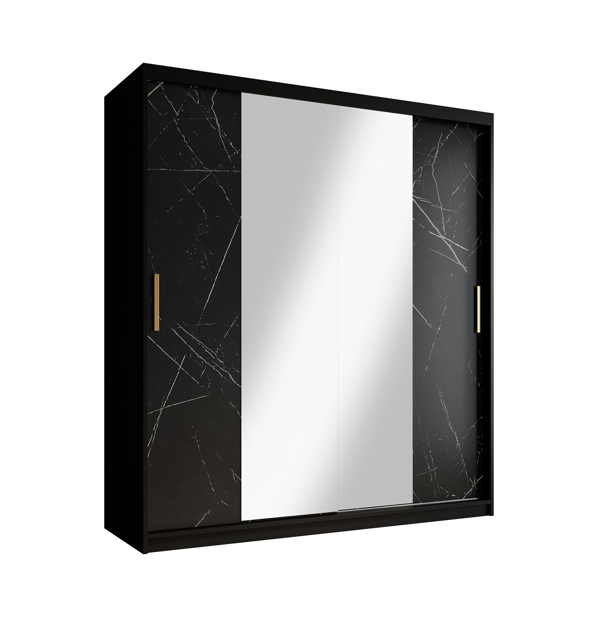 Meubella - Kledingkast Marmer 2 - Zwart - 180 cm - Met spiegel