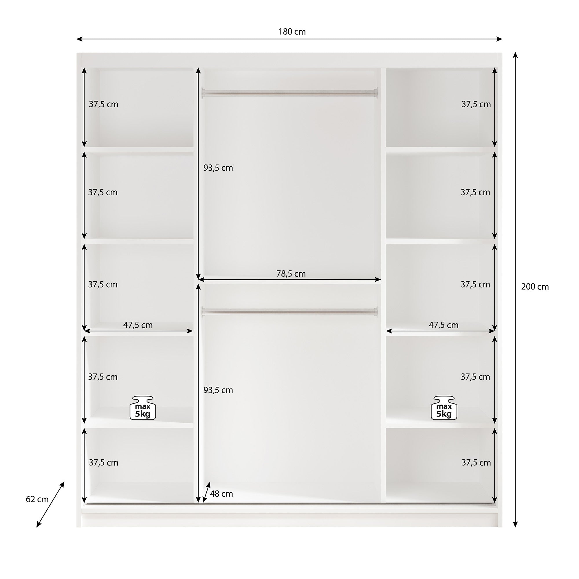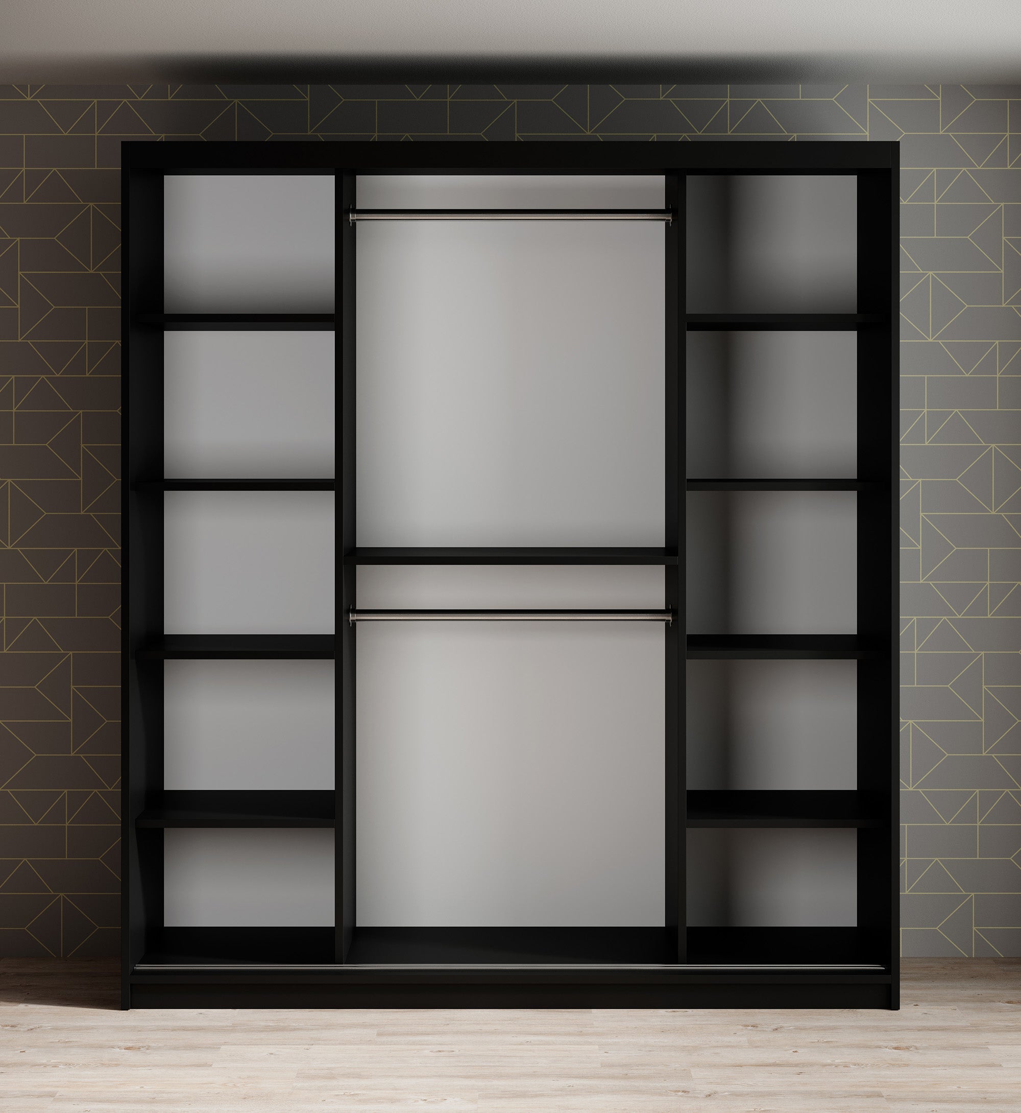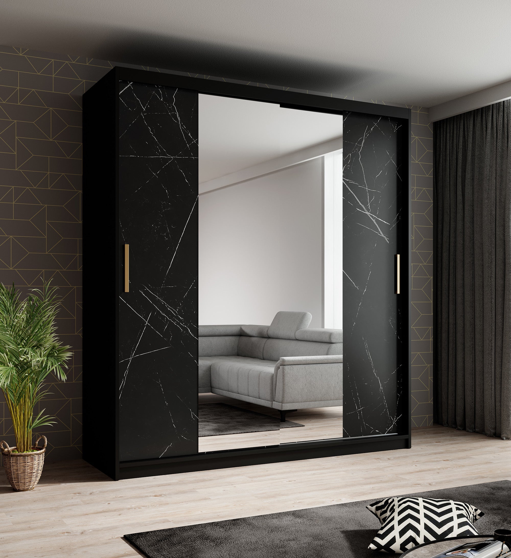 Meubella - Kledingkast Marmer 2 - Zwart - 180 cm - Met spiegel