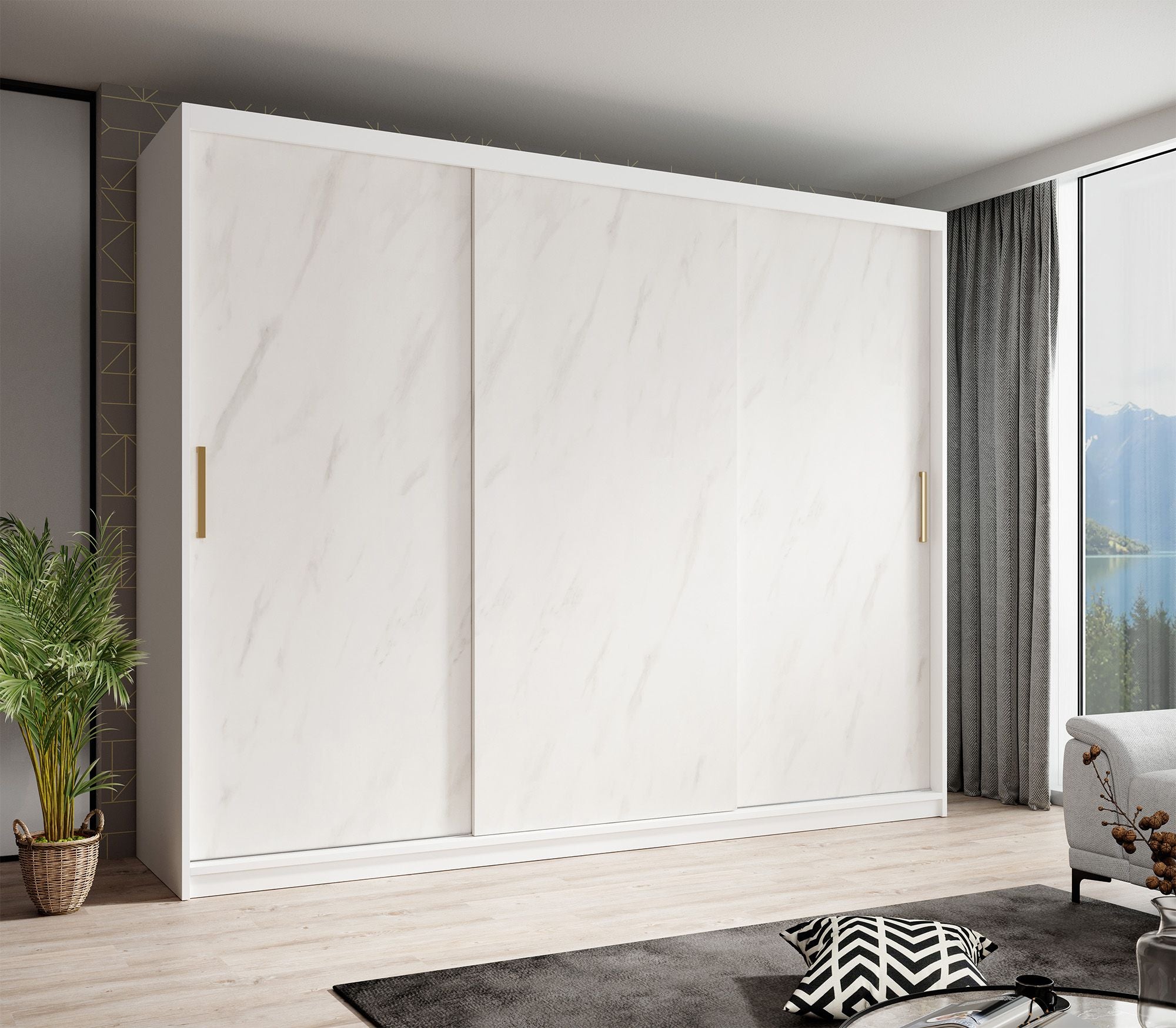 Meubella - Kledingkast Marmer - Wit - 250 cm