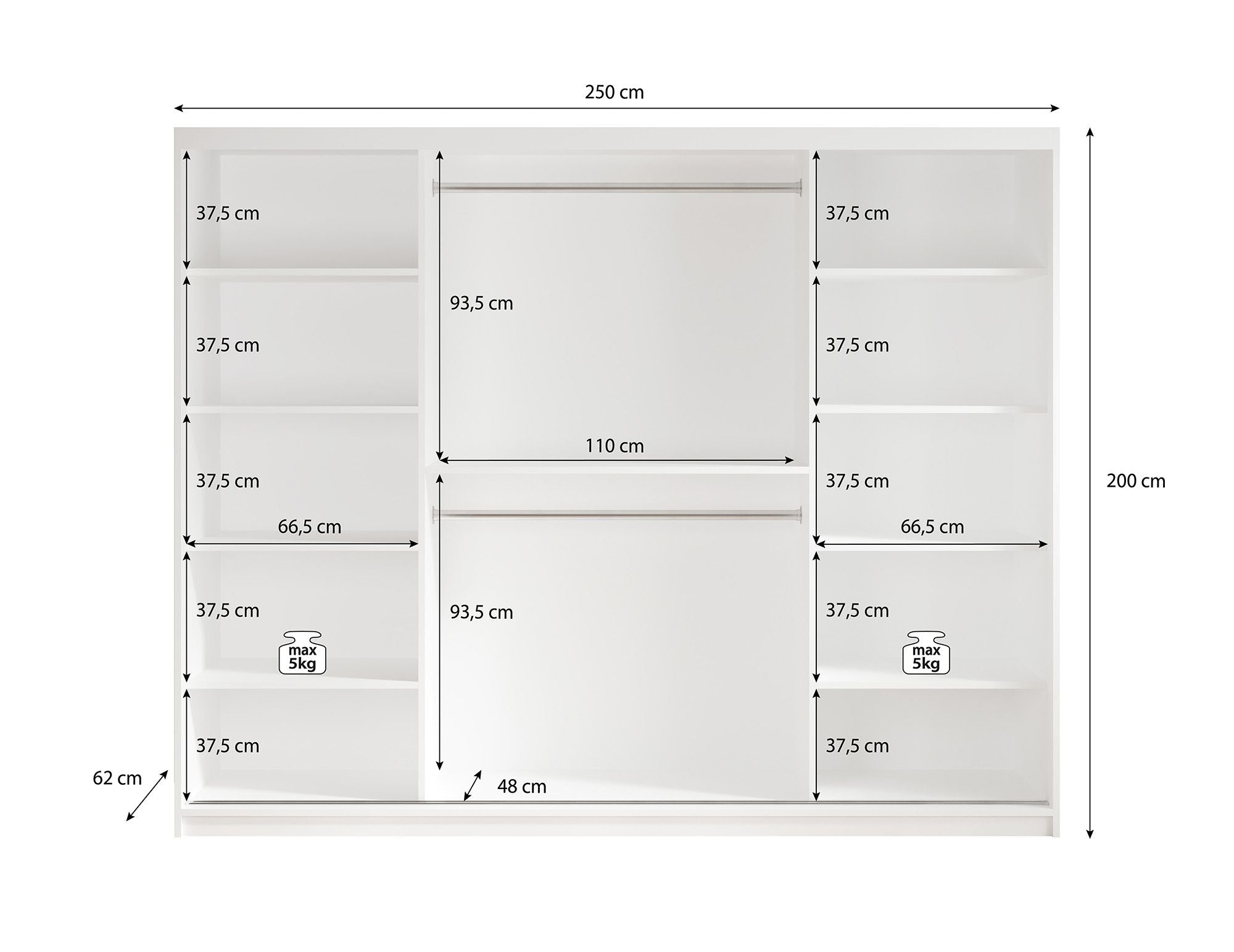 | Maat | H 200 x B 250 x D 62 cm |